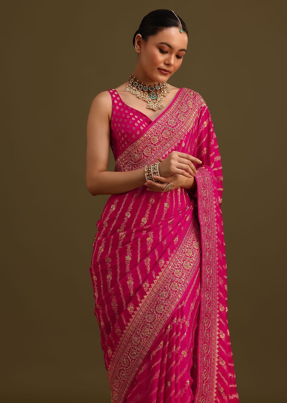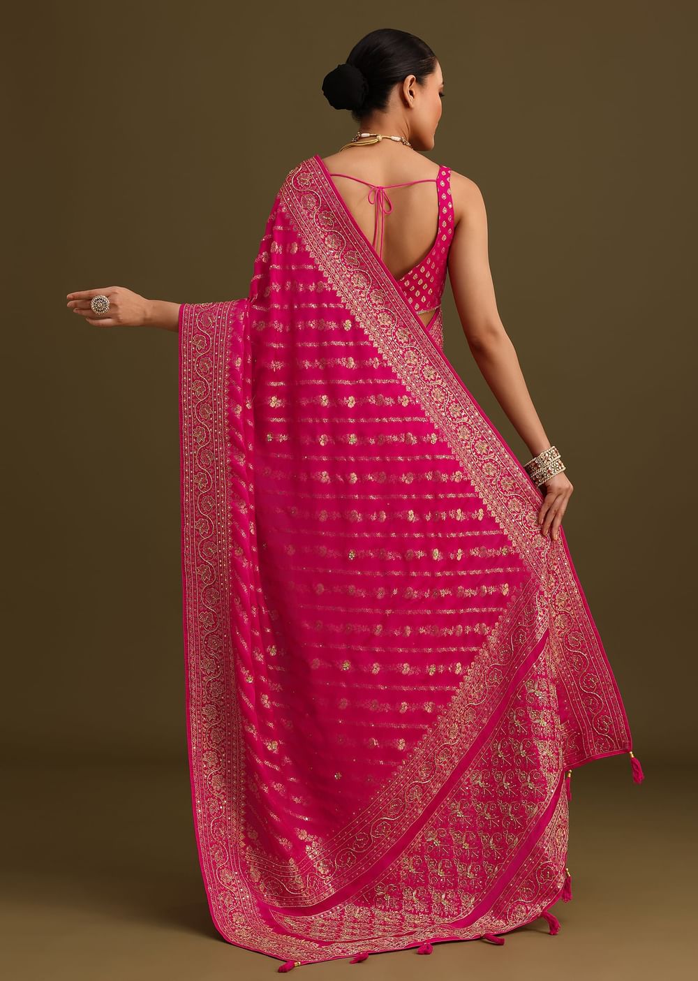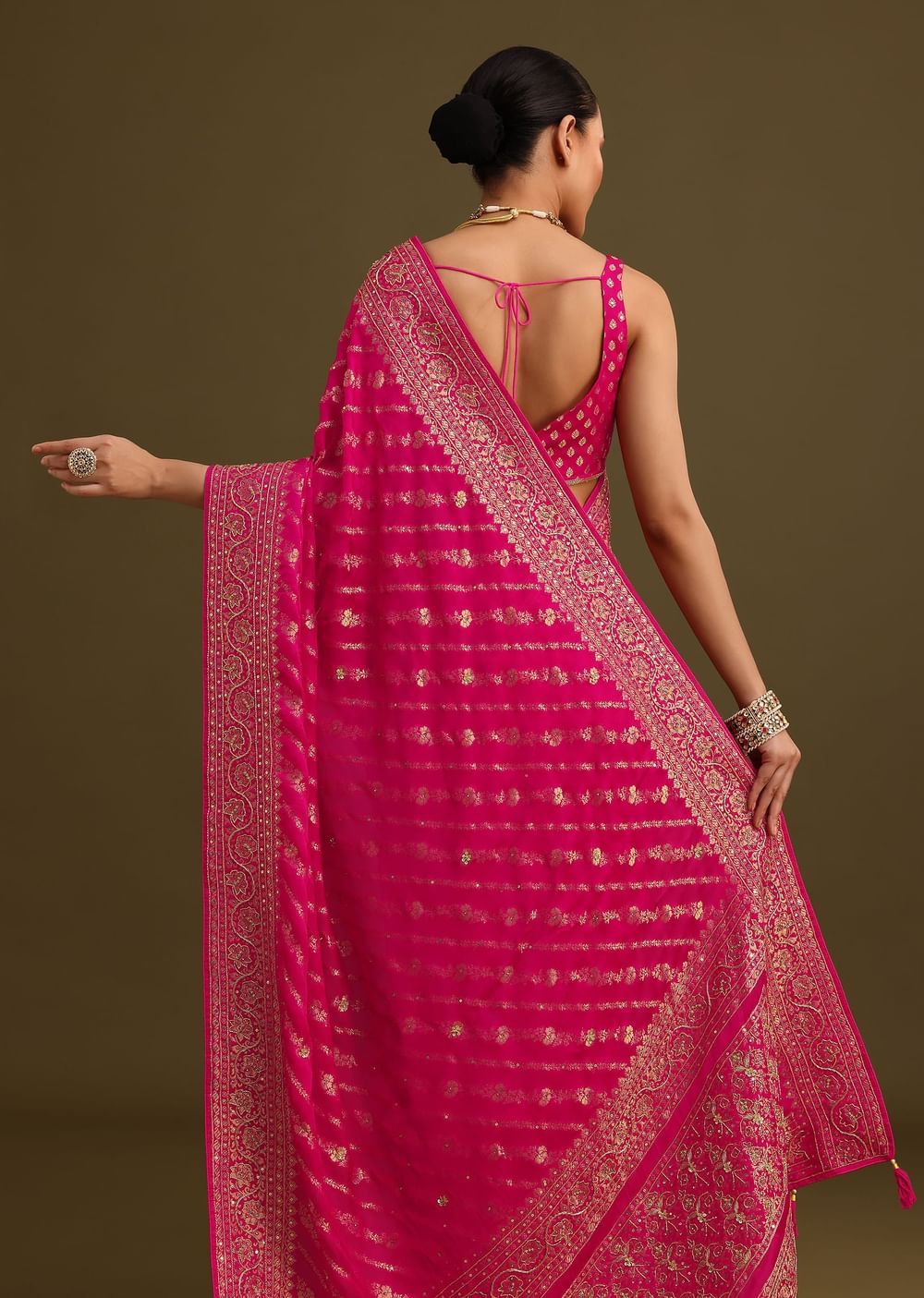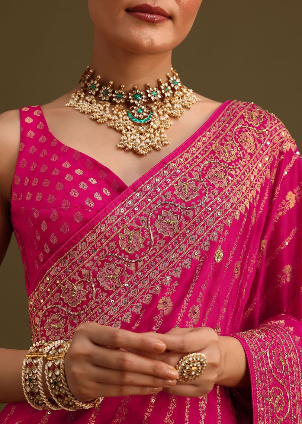 Pink Zardosi Embroidered Saree With Cutdana And Stone Work