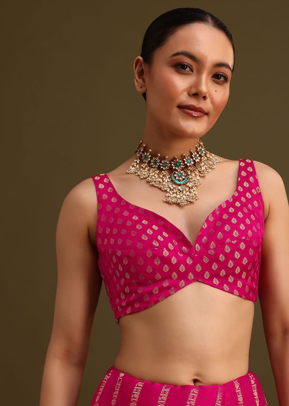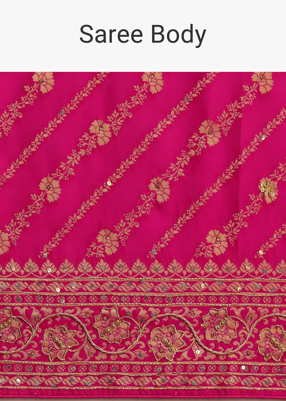 This pink zardosi work saree is your ticket to the fancy world. The heavy zardosi, cutdana, and stone embroidery create a dazzling display of intricate artistry. The unstitched blouse gives... More Product Details