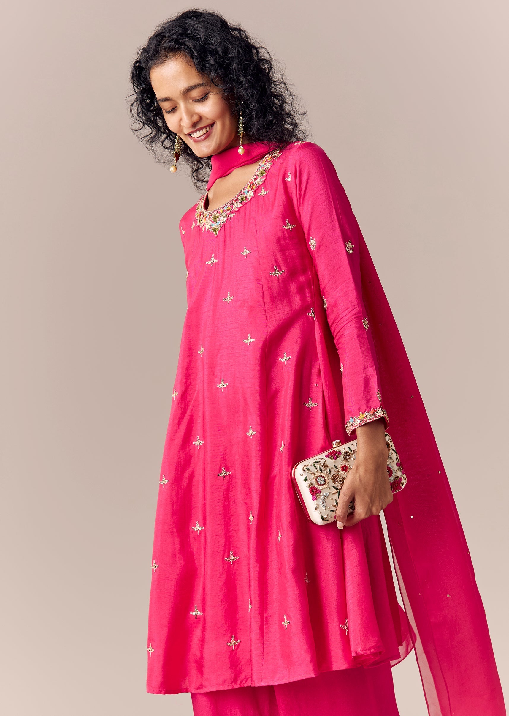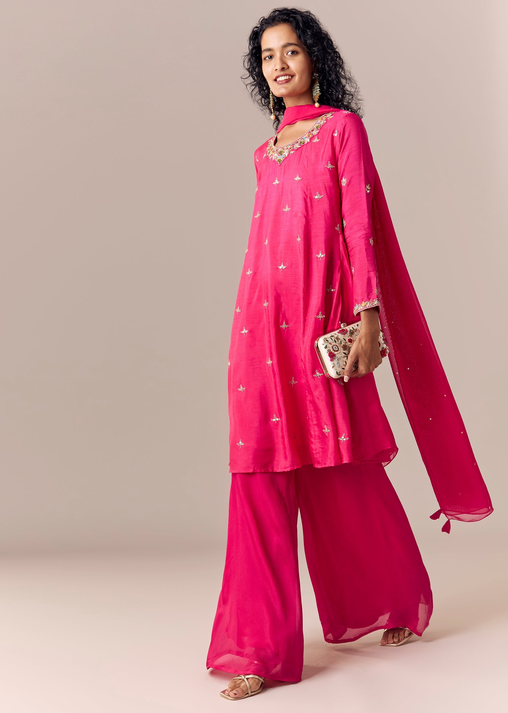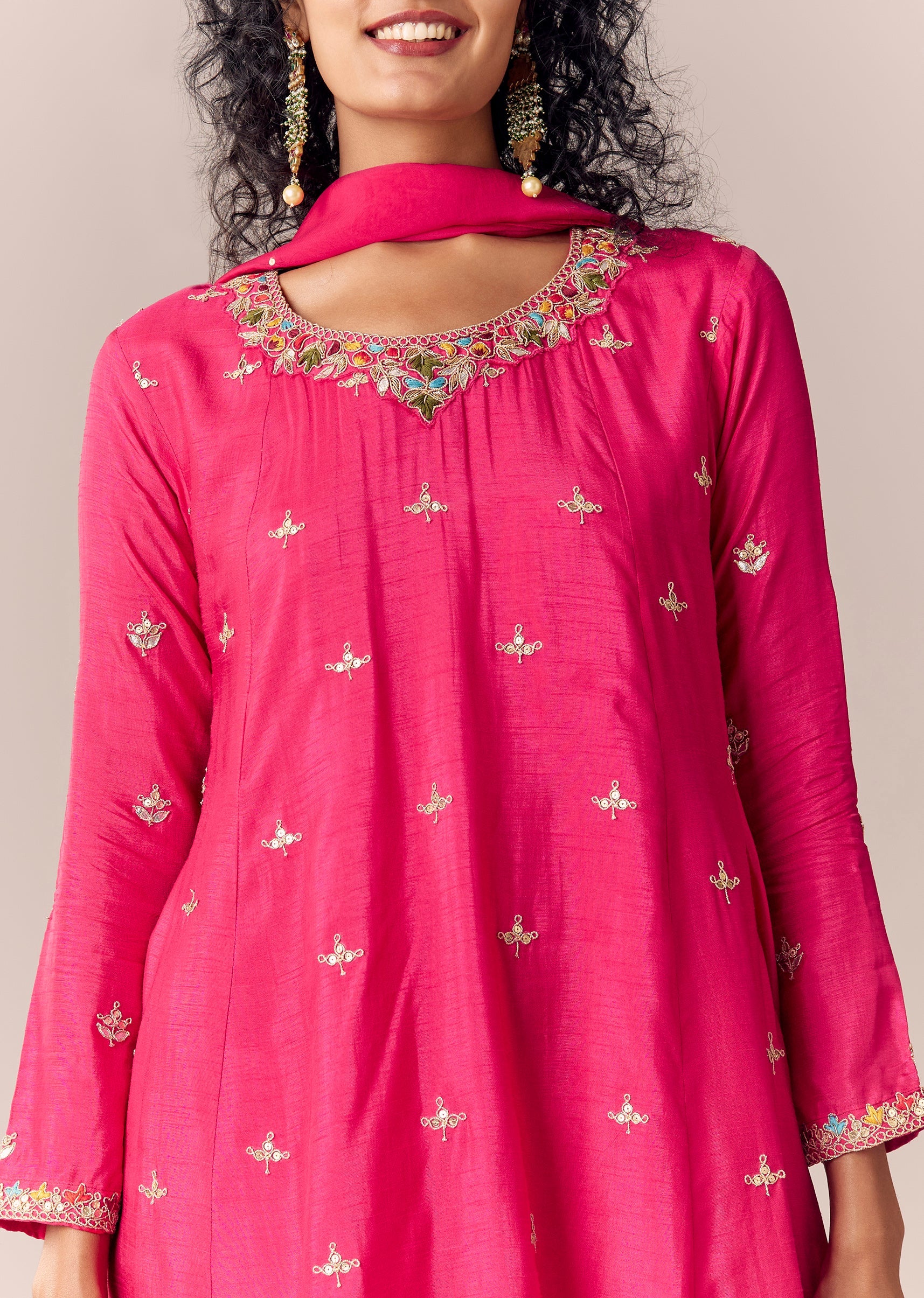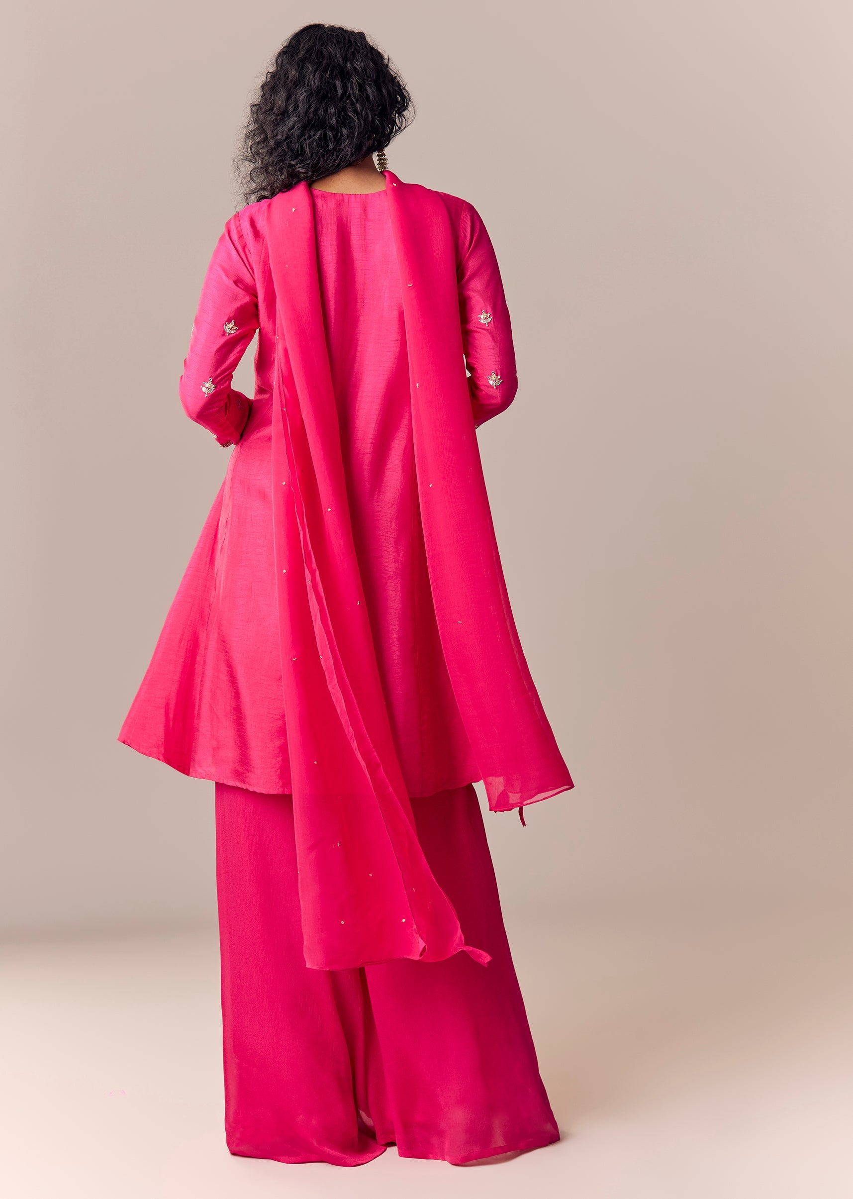 Pink Zari Work Anarkali Palazzo Set With Dupatta