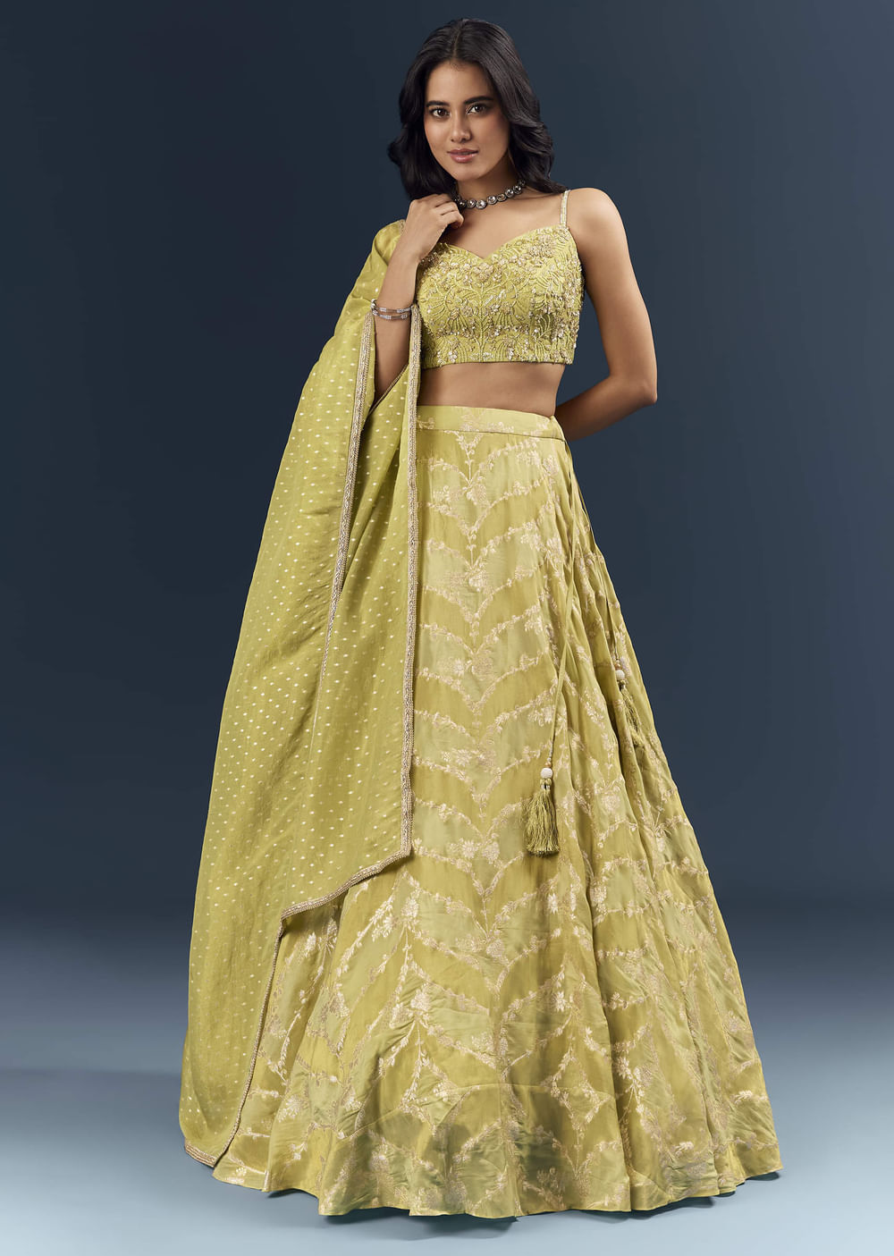 Pista Green Banarasi Silk Bridesmaid Lehenga With Heavy Hand Embroidery
