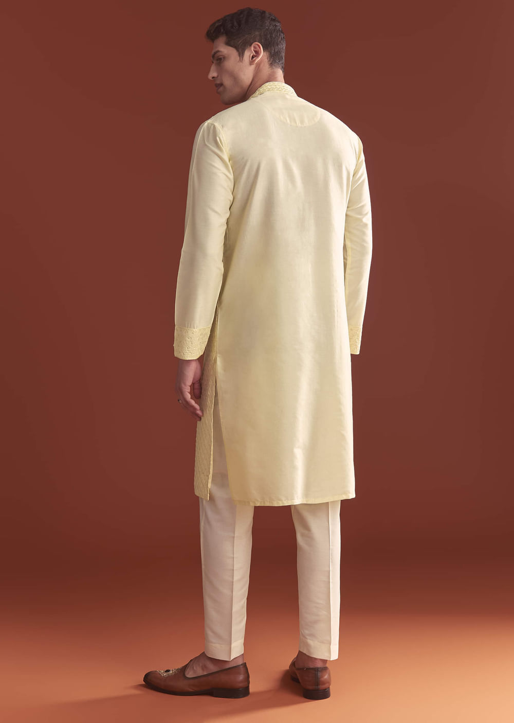Pista Green Banarasi Silk Kurta Set For Men With Intricate Embroidery