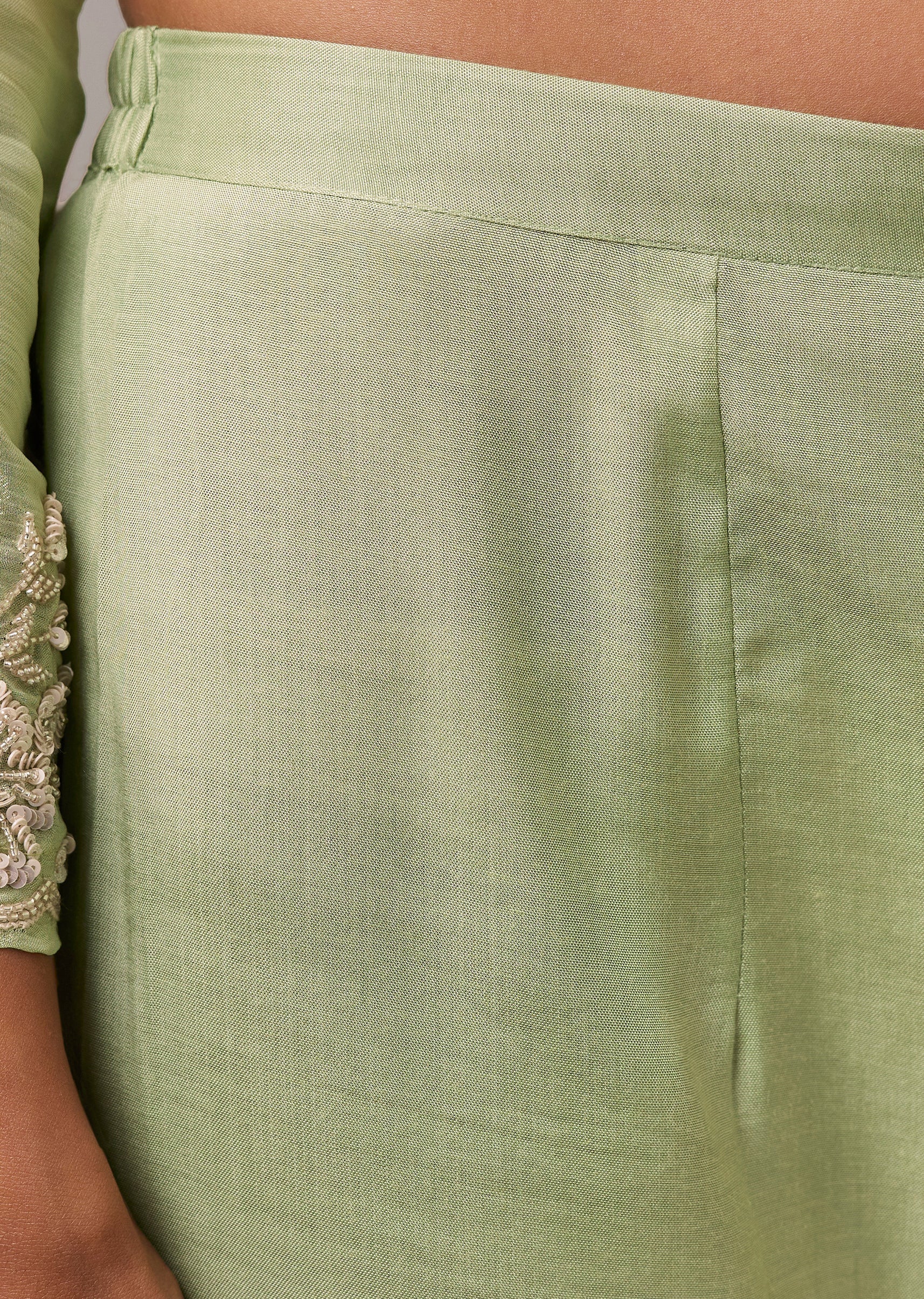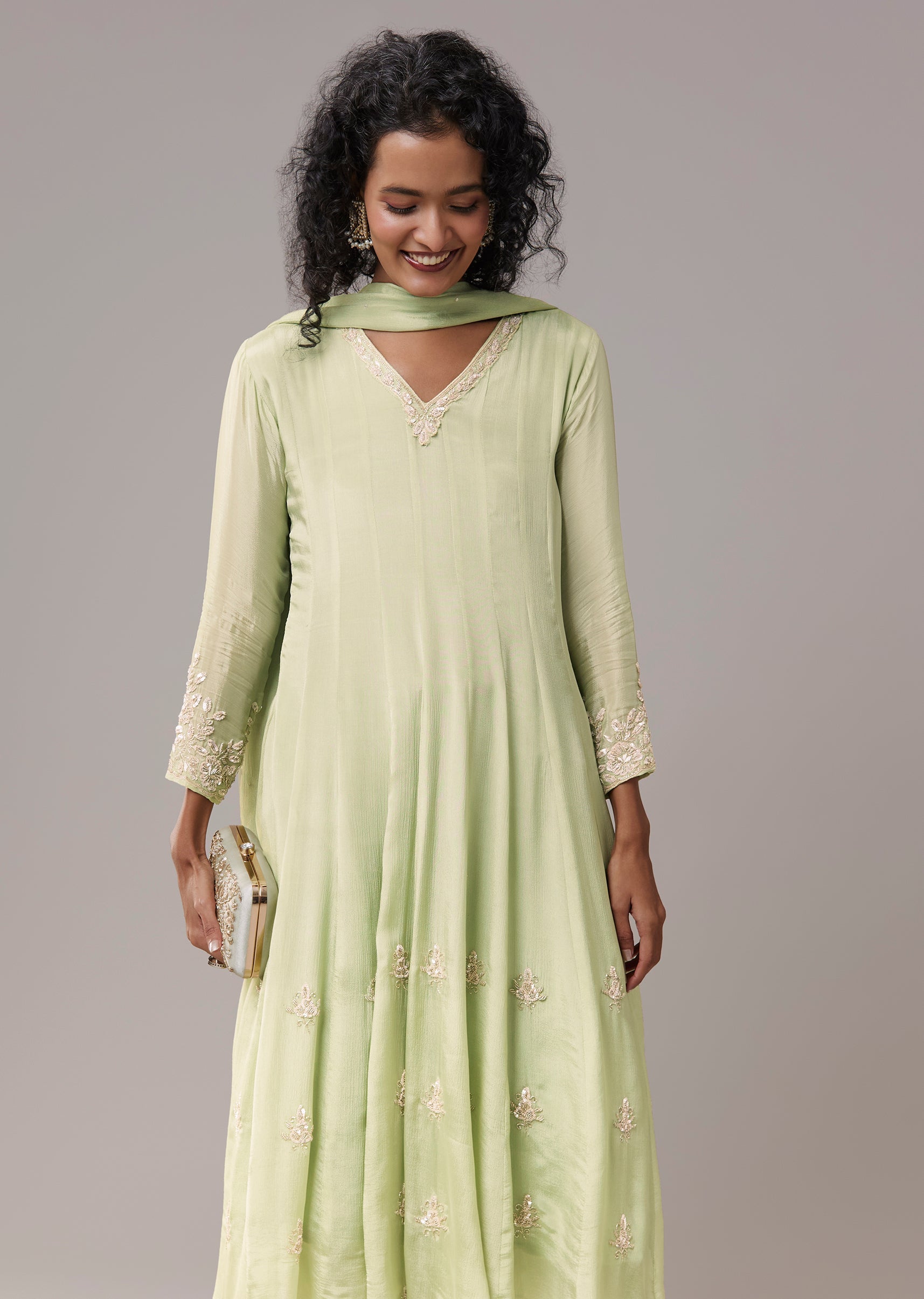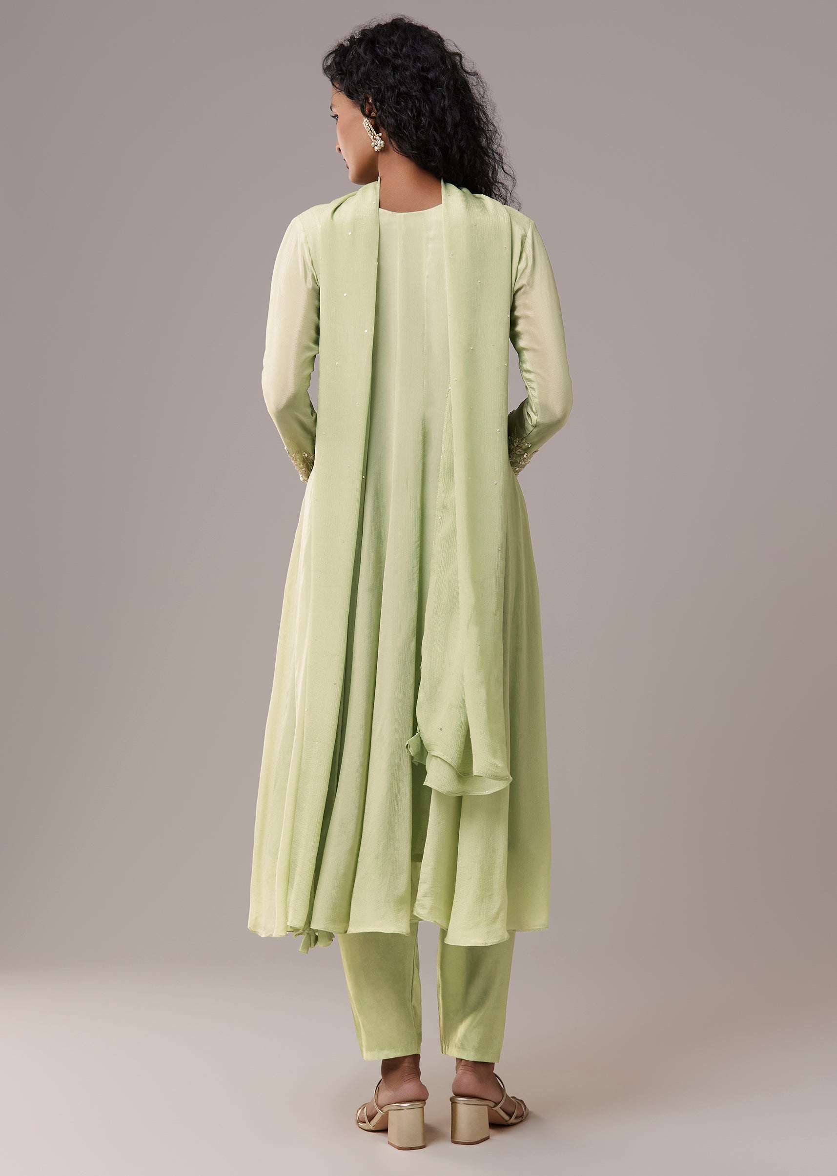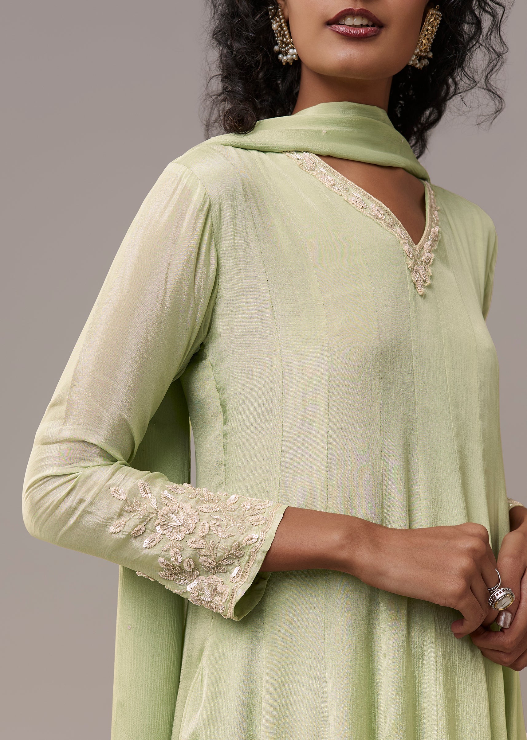 Pista Green Chinon Cutdana Embroidered Anarkali Set