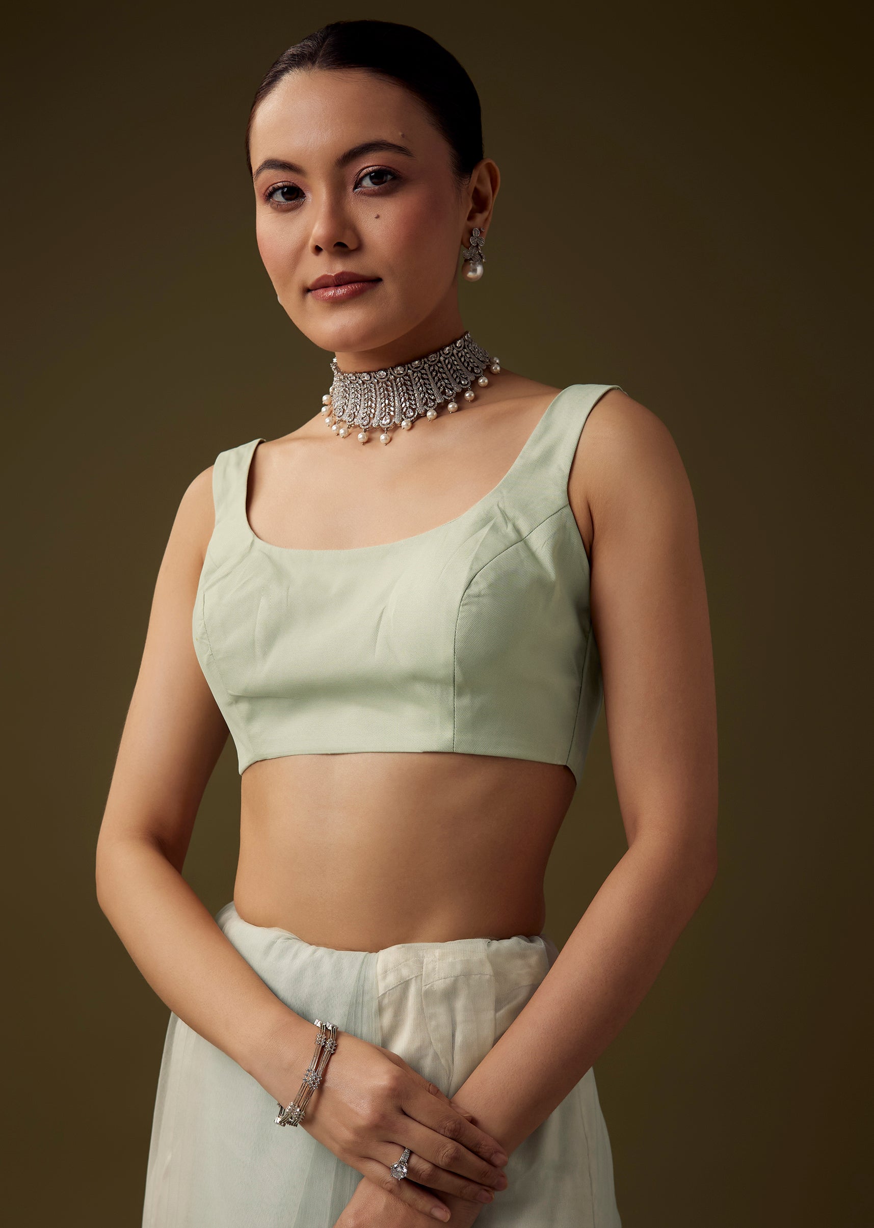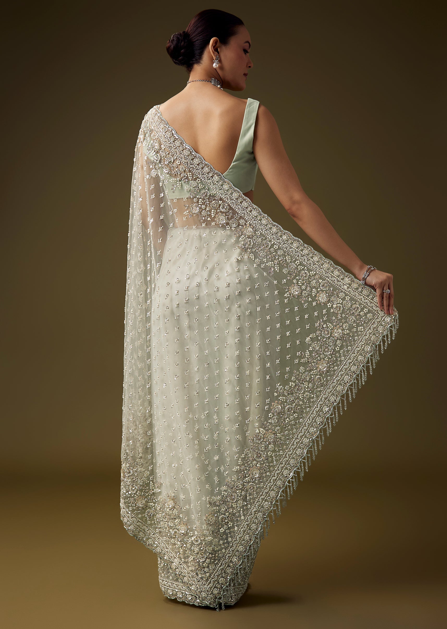 Pista Green Cutdana Work Saree with Unstitched Blouse