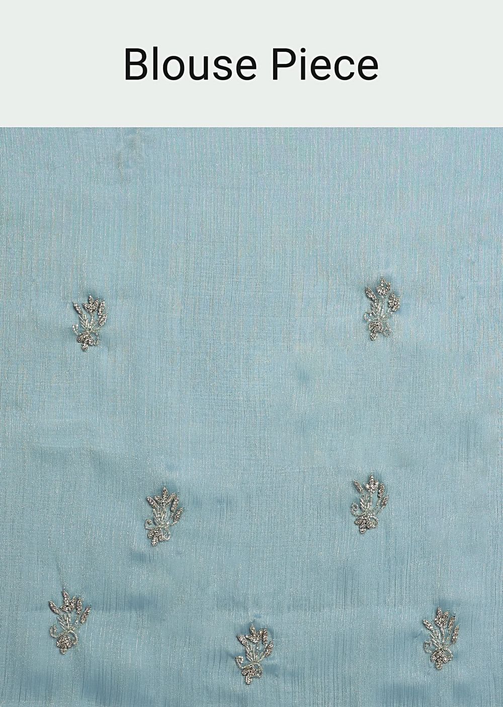Powder Blue Embroidered Chinnon Saree With Unstitched Blouse