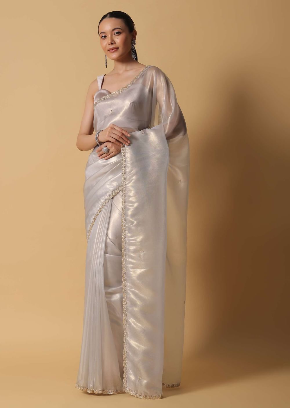 Powder Green Foil Saree In Tissue With Cut Dana Embroidered Borders