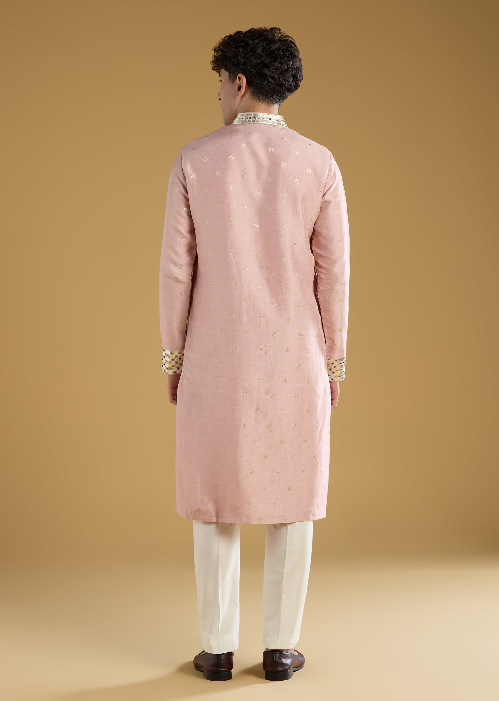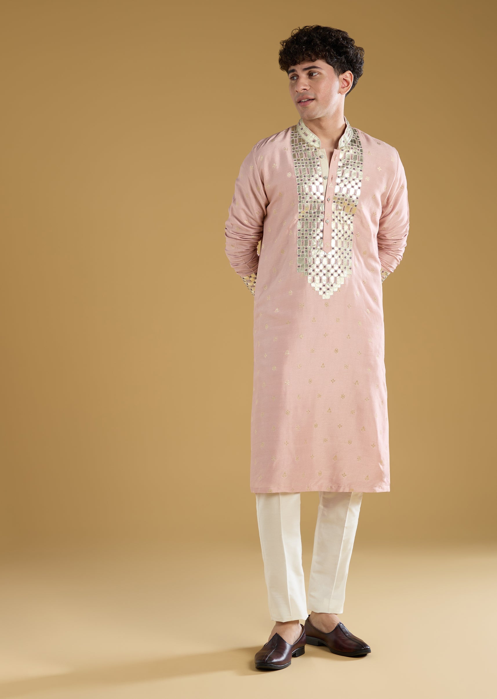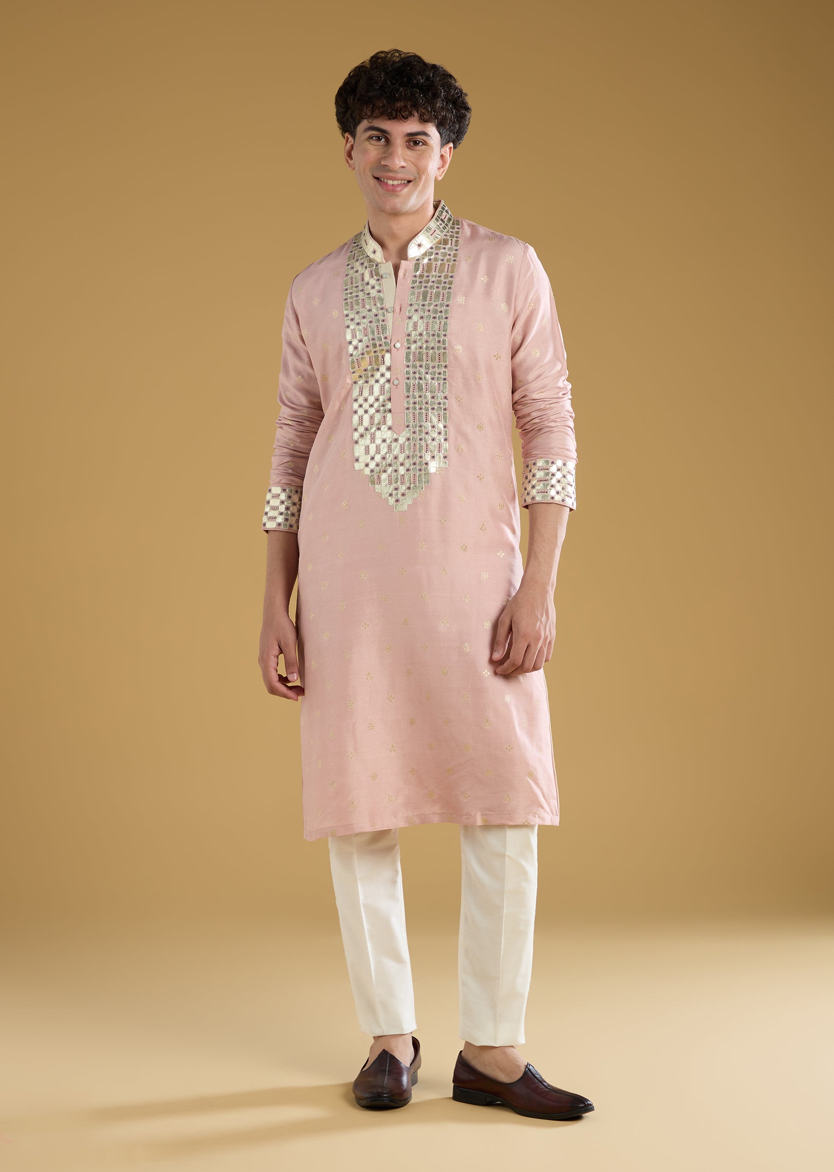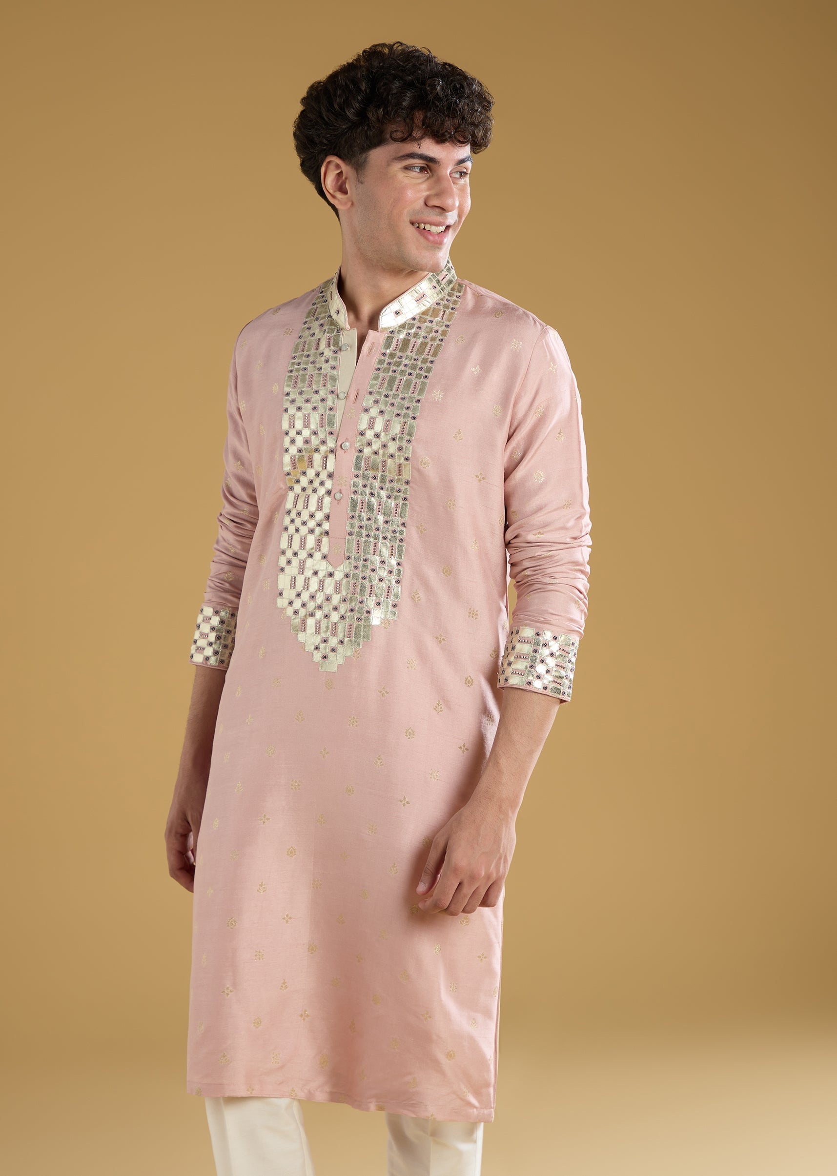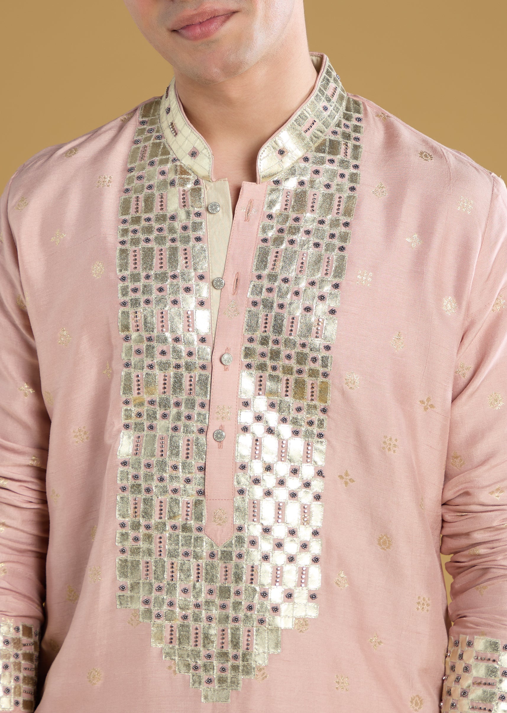 Powder Pink Mens Kurta Set With Beads Metal Leather And Zari Work