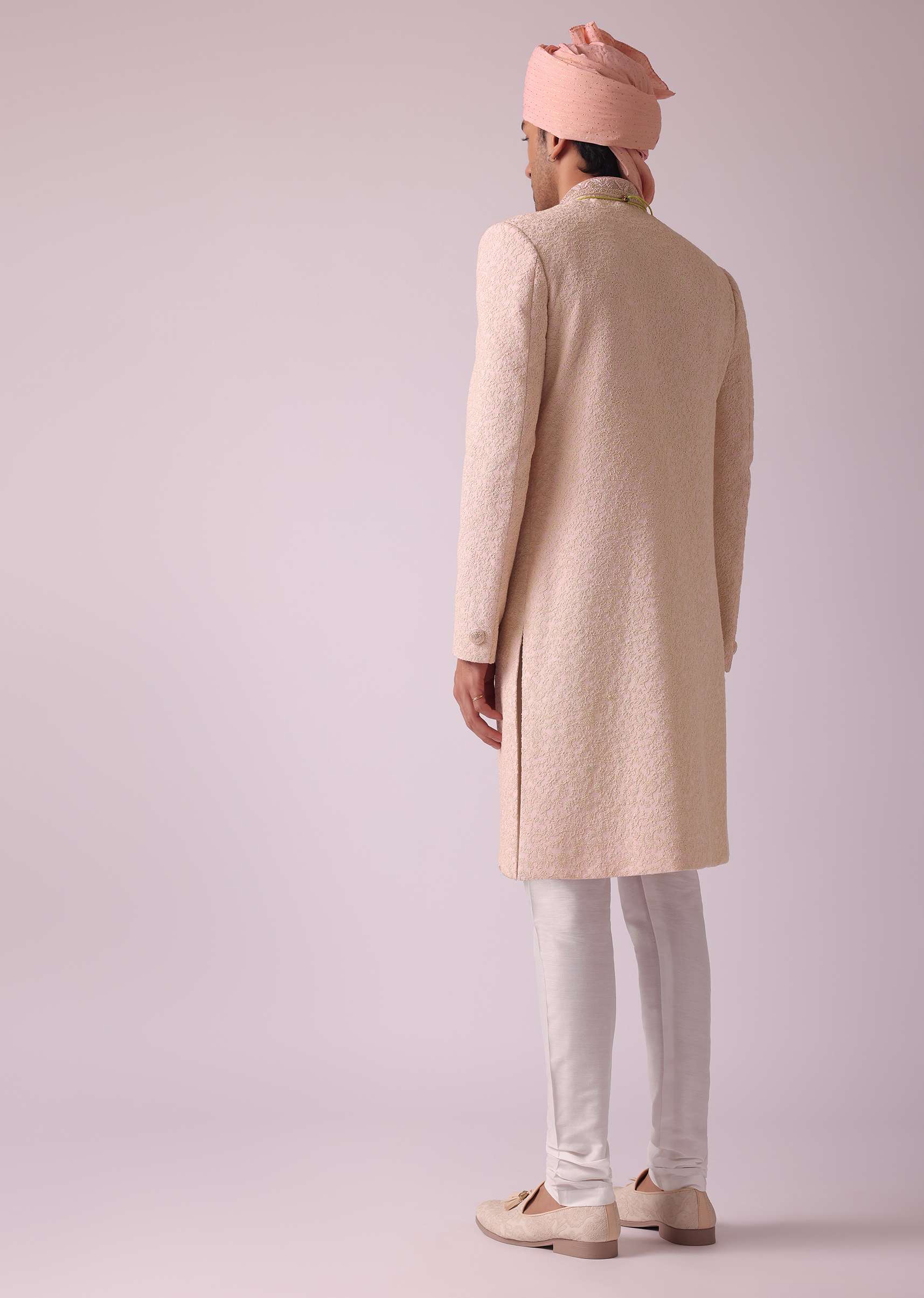 Elevate your style with our powder pink georgette sherwani a symbol of timeless elegance. This exquisite piece boasts heavy embroidery on the collar and throughout the sherwani. Complete with a cotton churidar and matching layered mala it's a luxurious ensemble that radiates opulence and sophistication.EVENT - Perfect for weddings and receptions.Change folds regularly. Awarded as the Most Trusted Brand, we're delivering styles you love, just as promised.