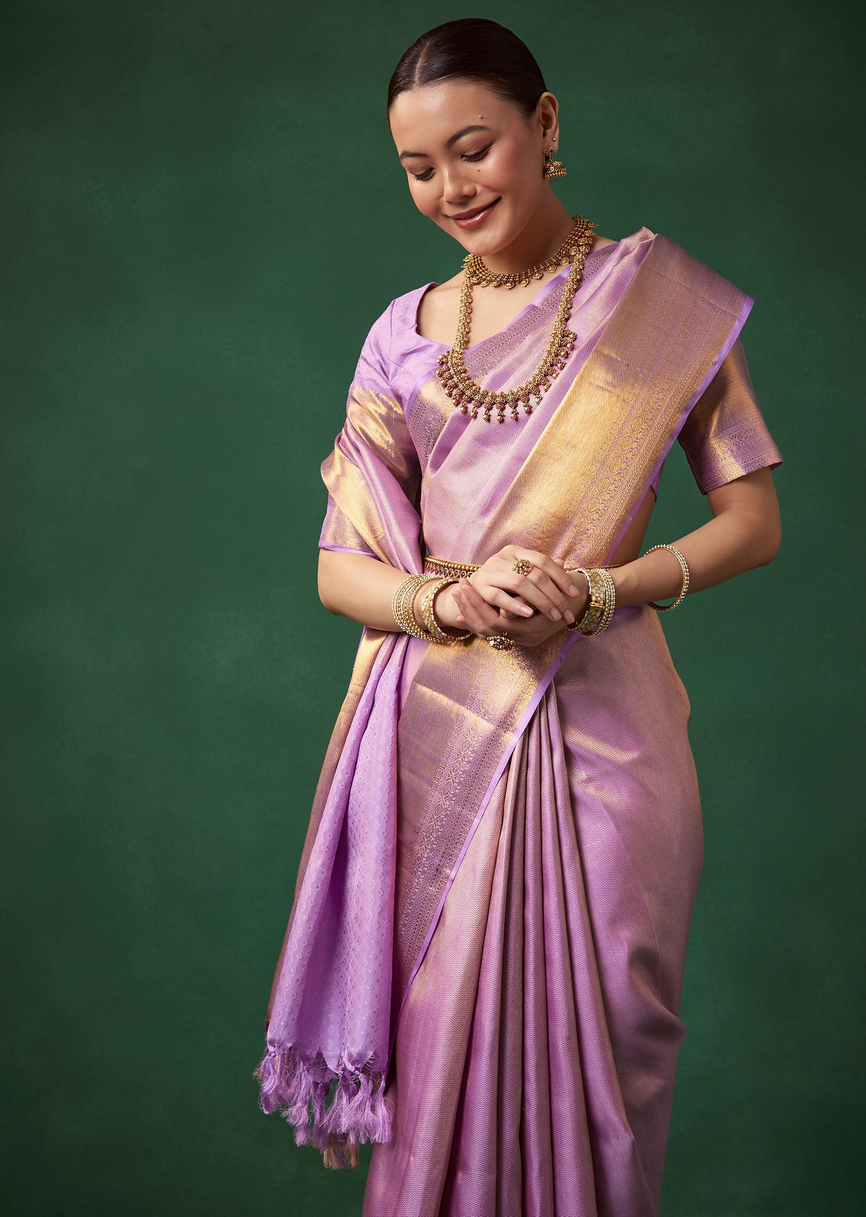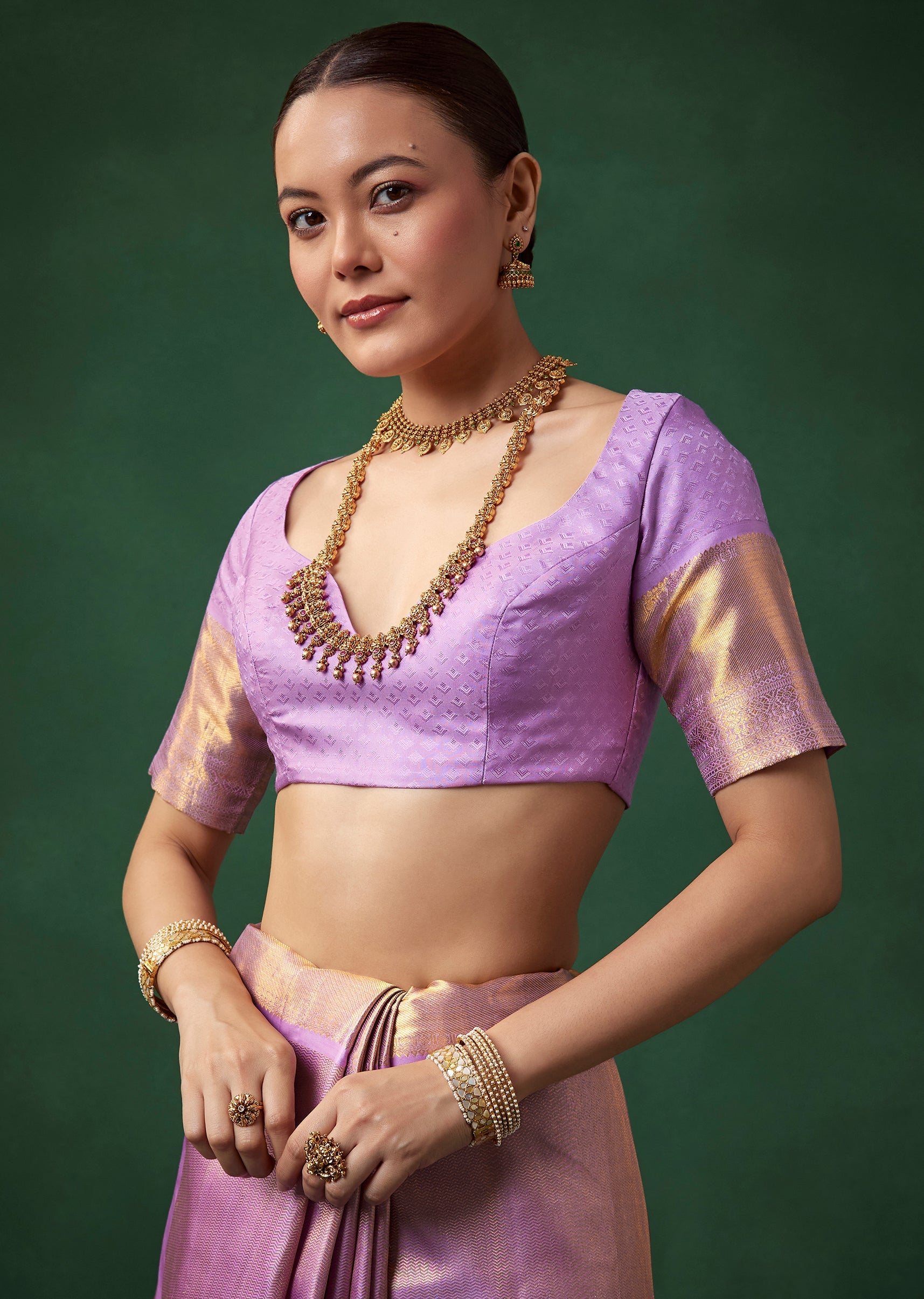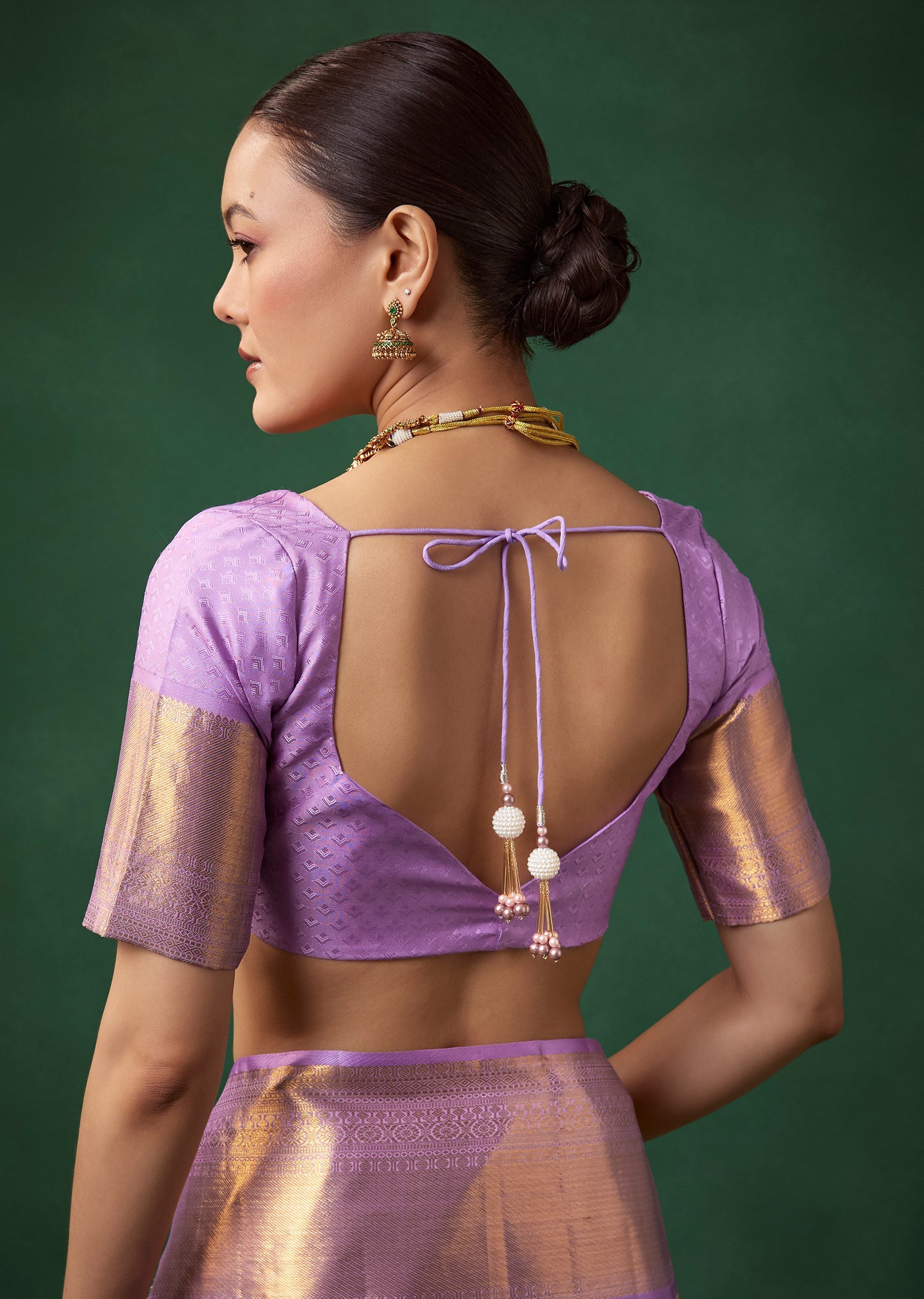 Purple Bridal Kanjivaram Zari Weave Saree with Unstitched Blouse