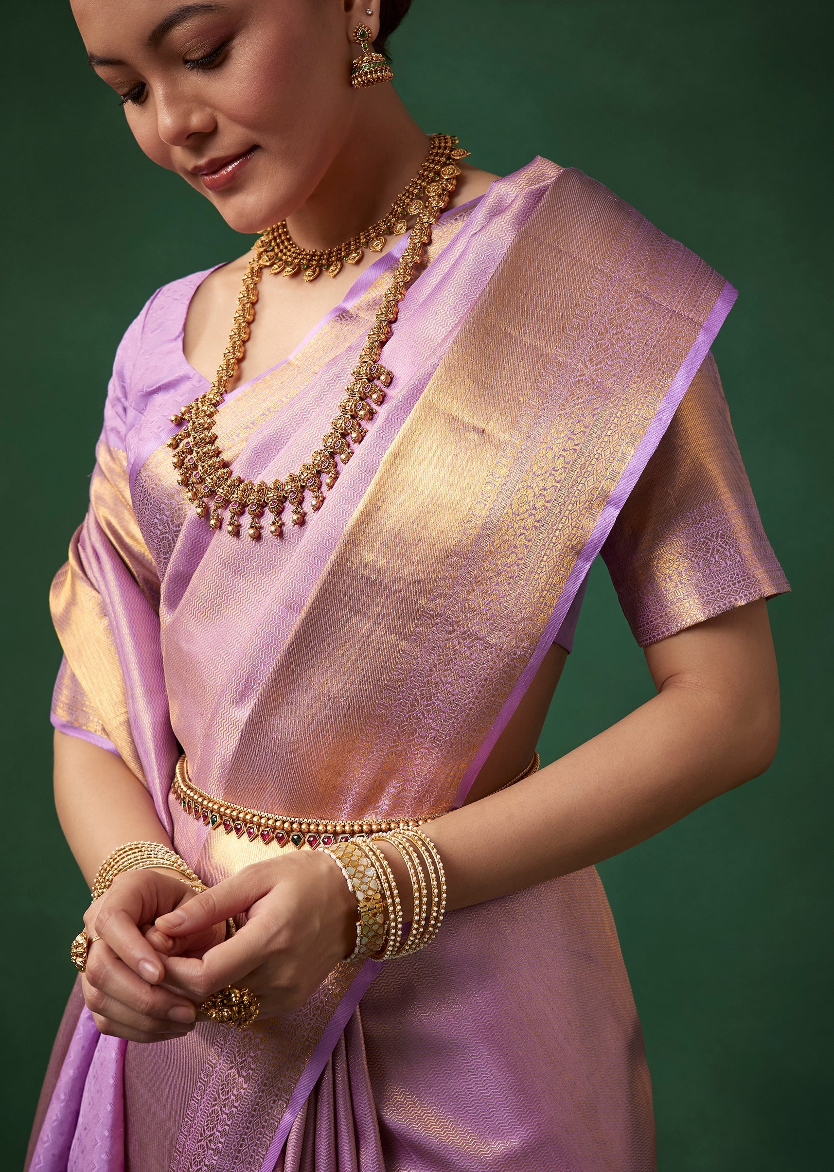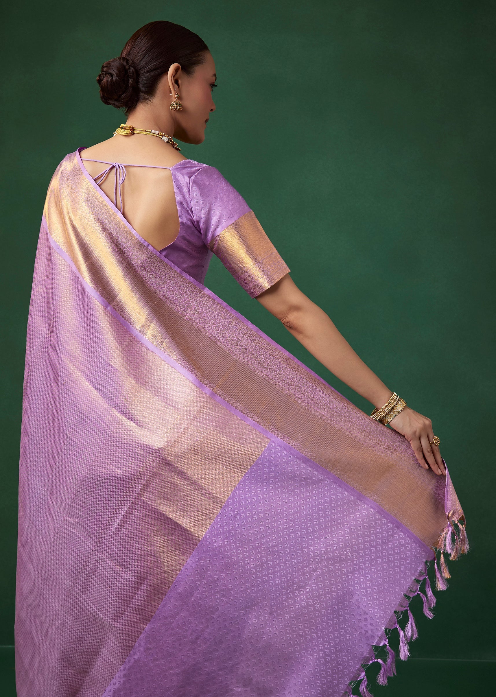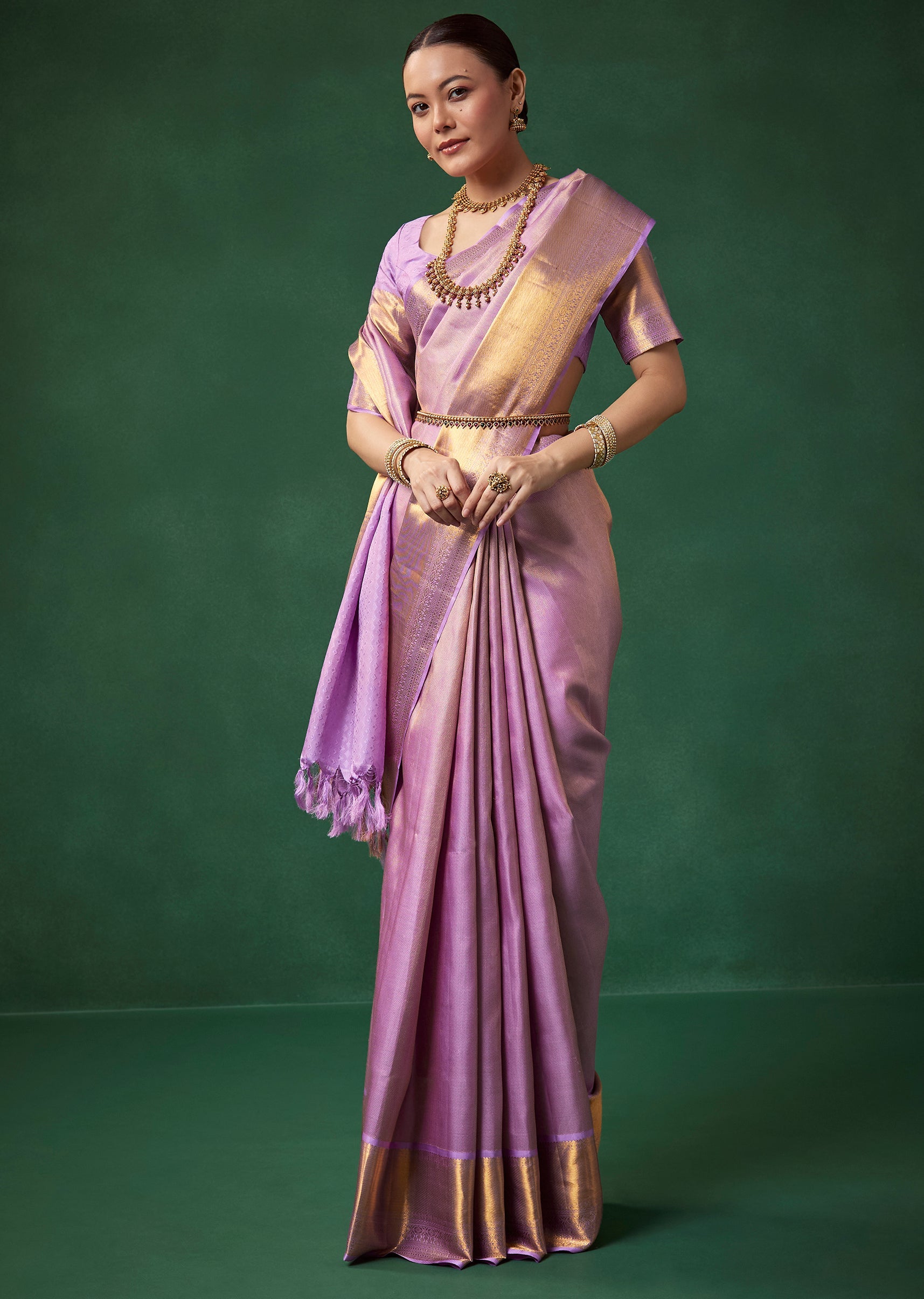 Purple Bridal Kanjivaram Zari Weave Saree with Unstitched Blouse