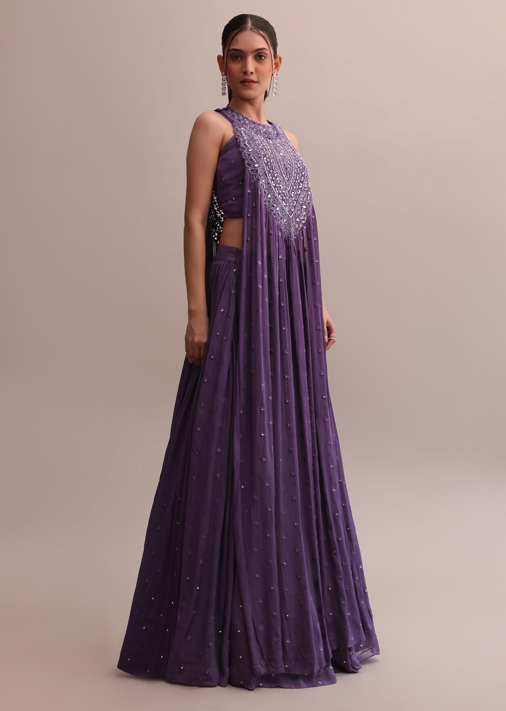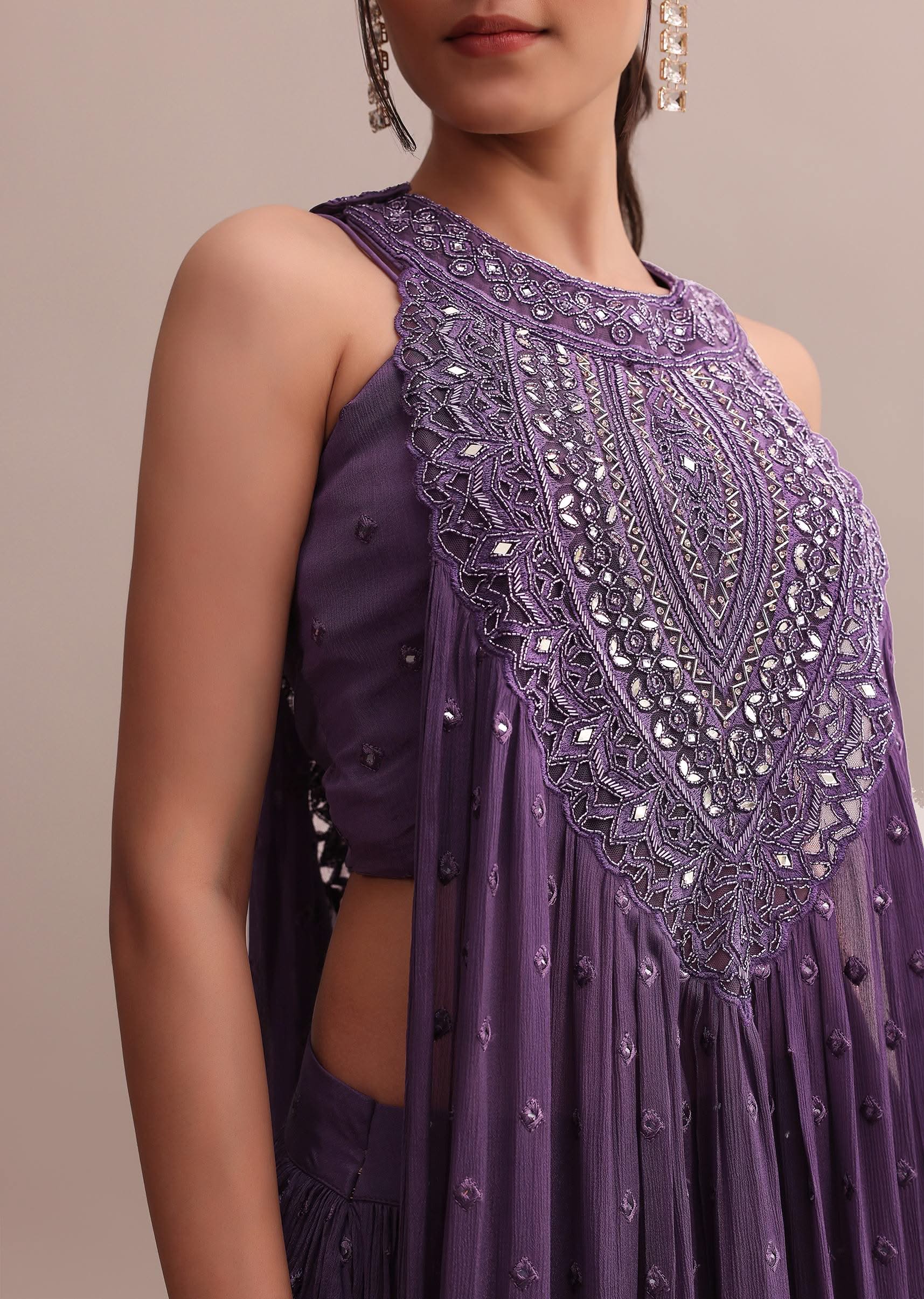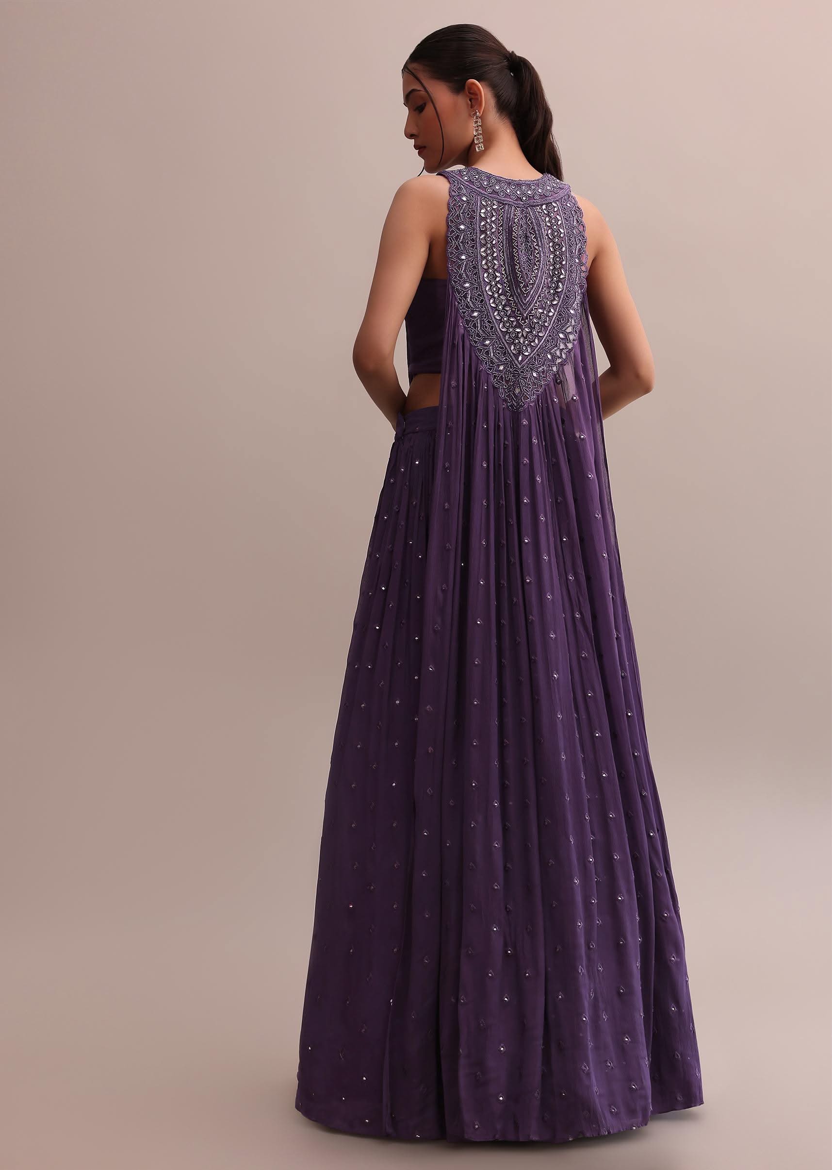Purple Chiffon Boutique Choli And Lehenga With Foil Mirror Work Cape Set