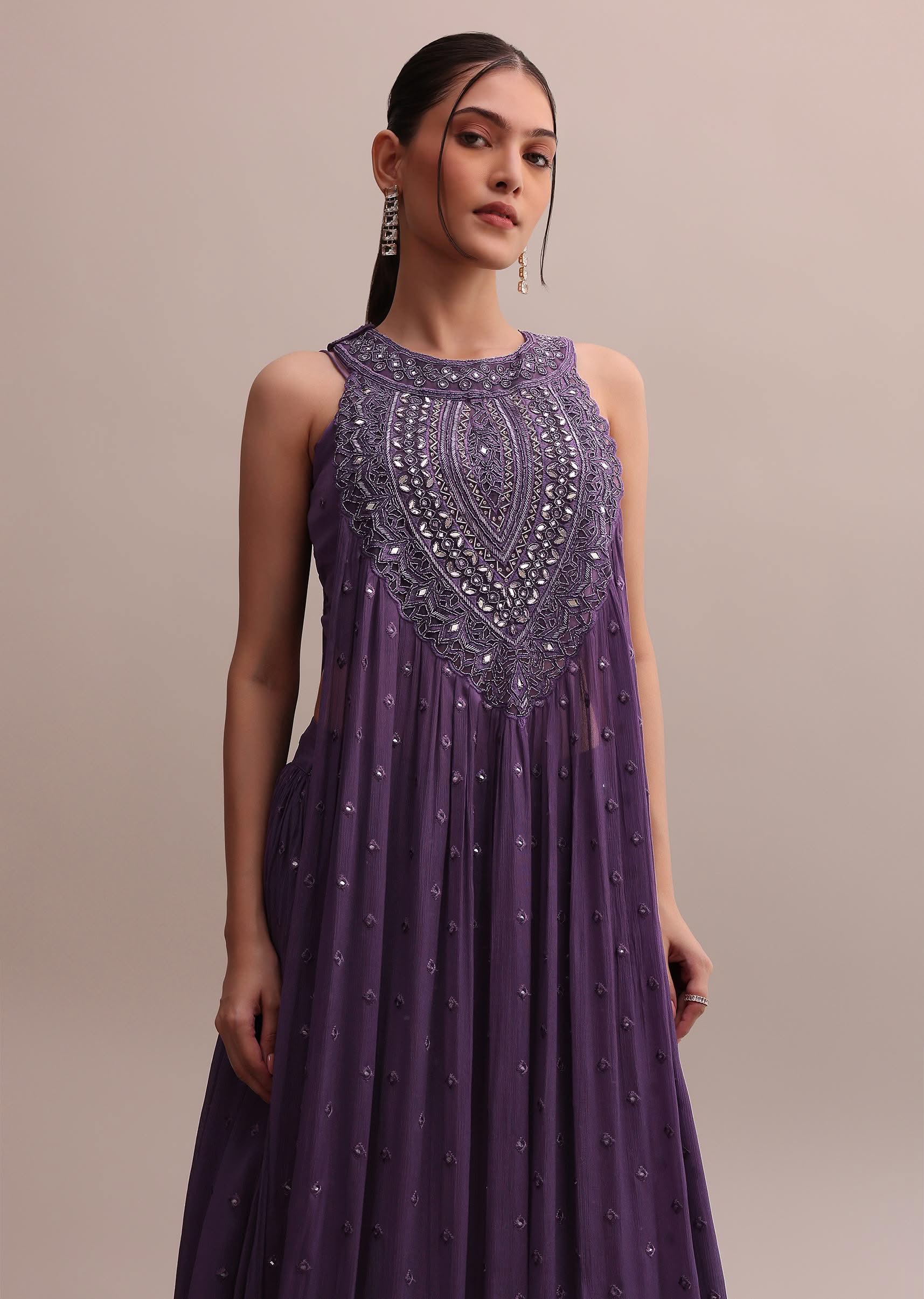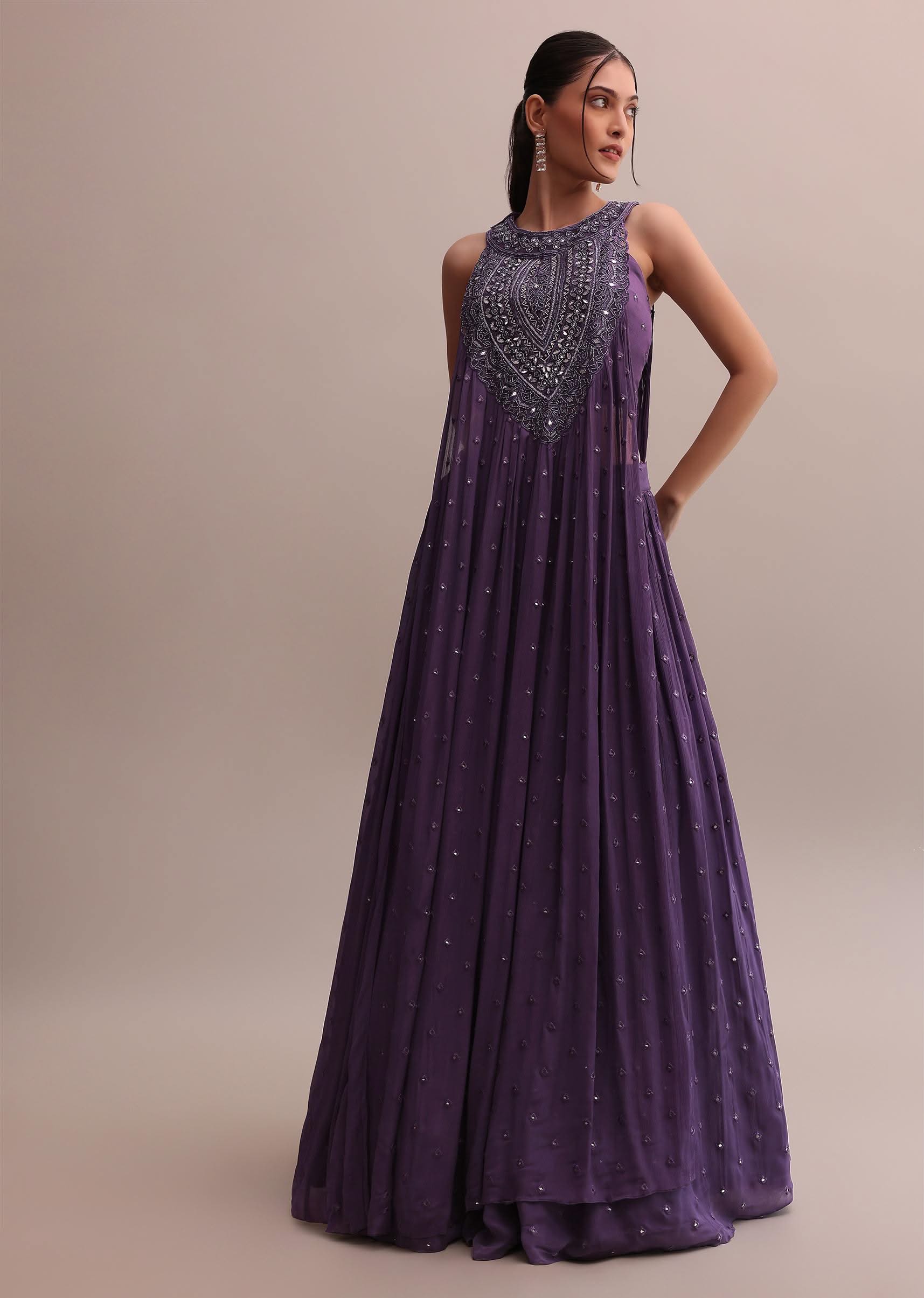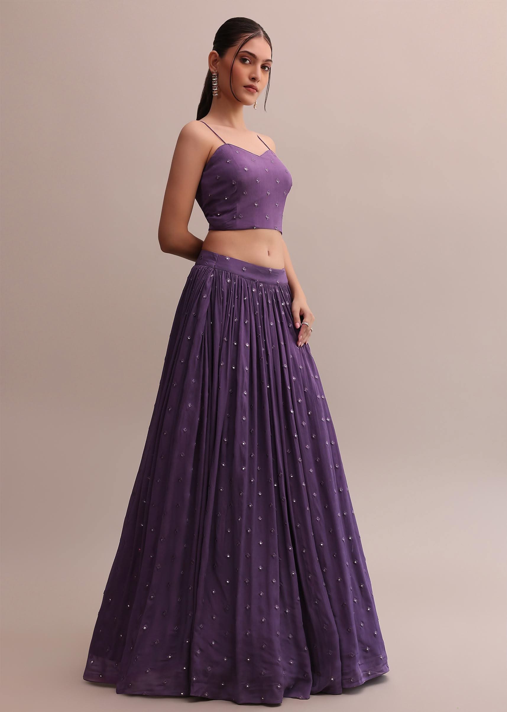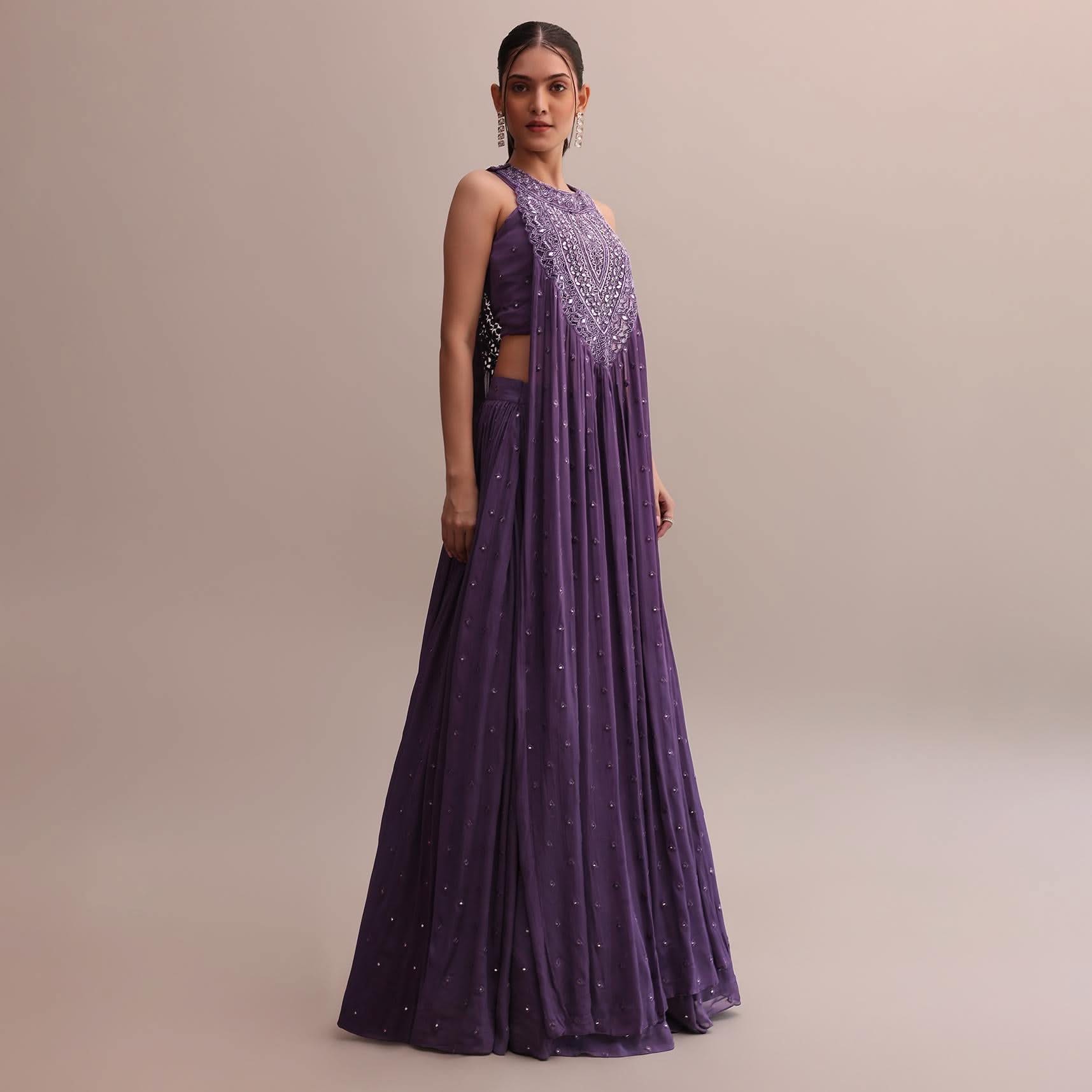 Purple Chiffon Boutique Choli And Lehenga With Foil Mirror Work Cape Set