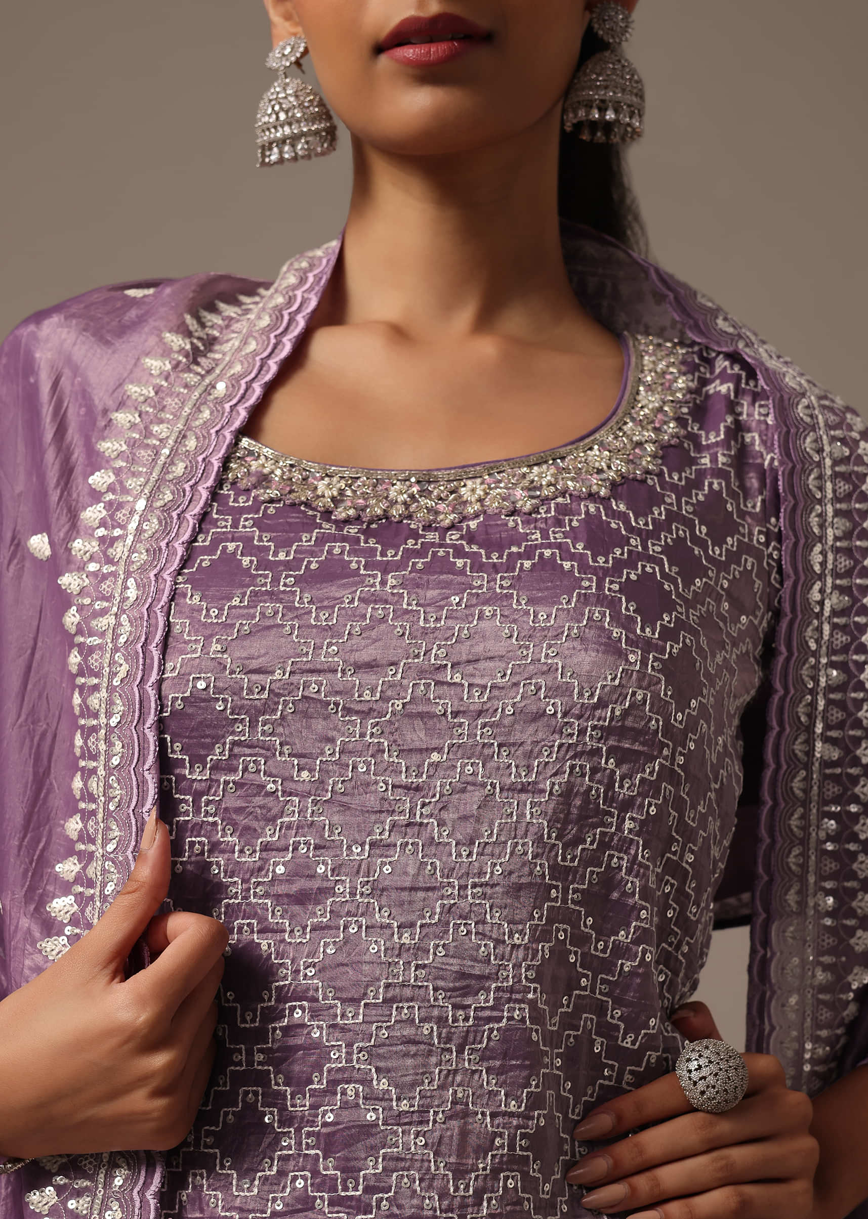 Purple Embroidered Kurta Palazzo Set With Dupatta