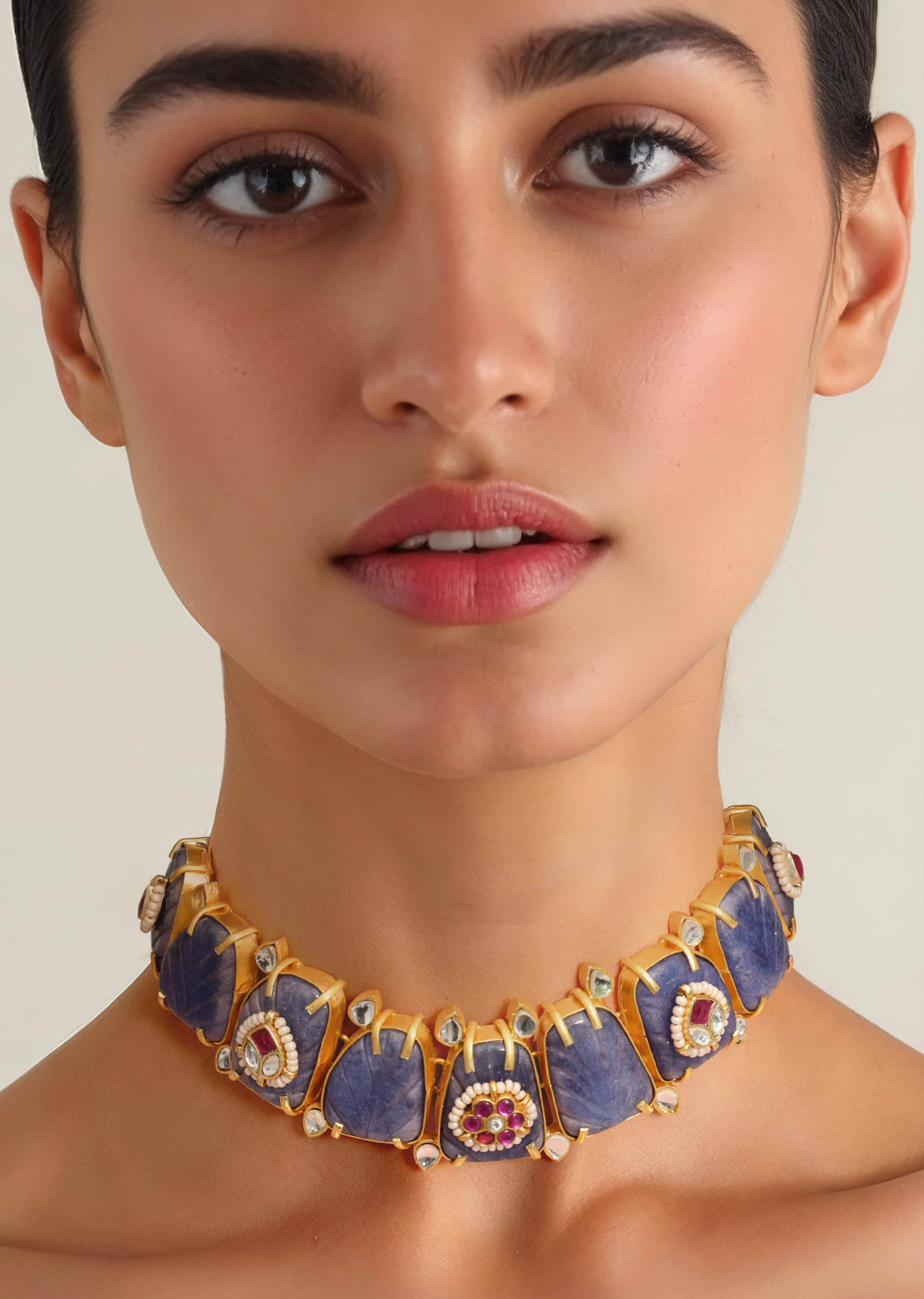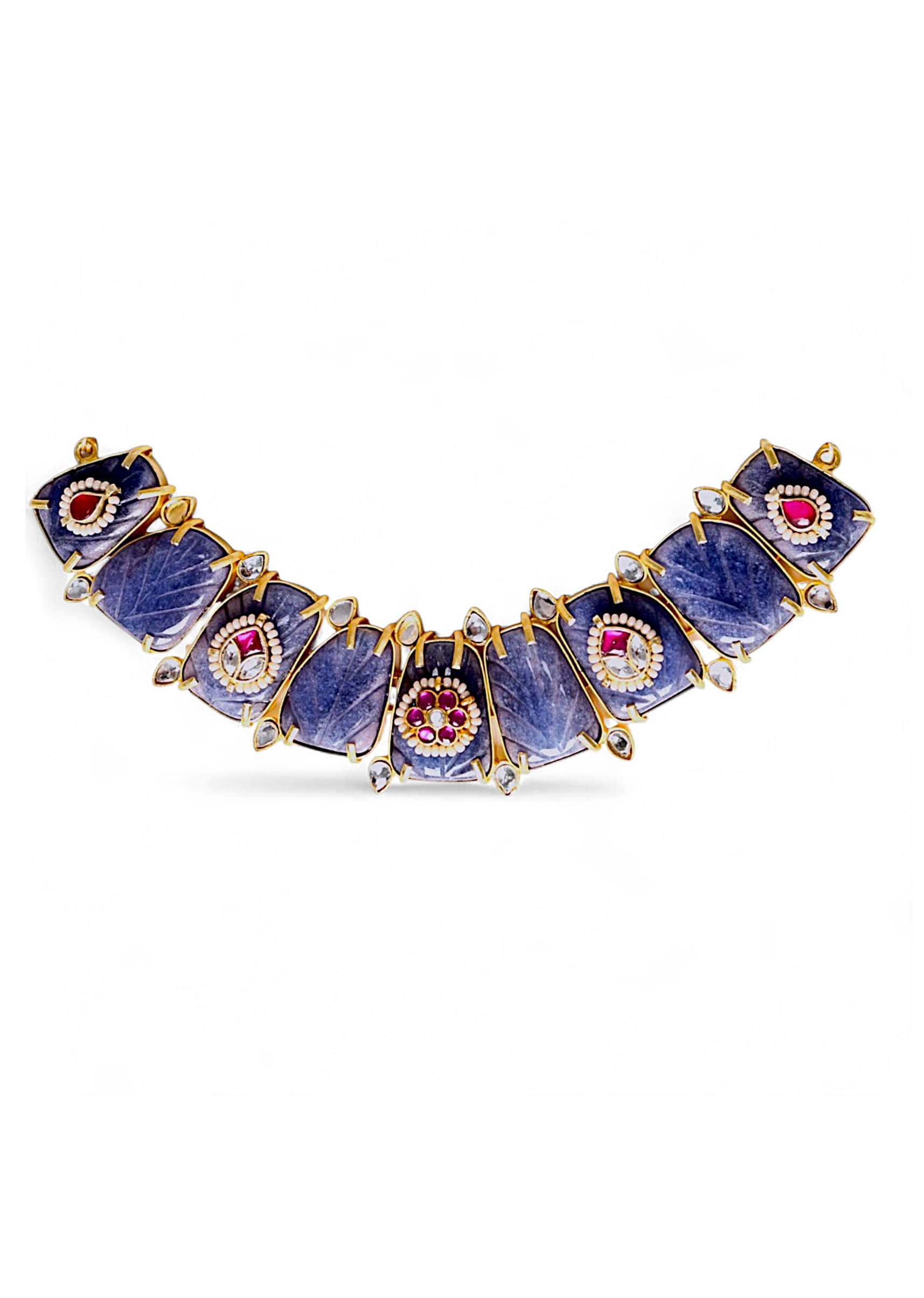 Complements neutral or gold-toned outfits, allowing the rich purple stones to stand out beautifully.Fit Tips: Balanced structure ensures comfortable wear, keeping the necklace securely in place throughout the event.