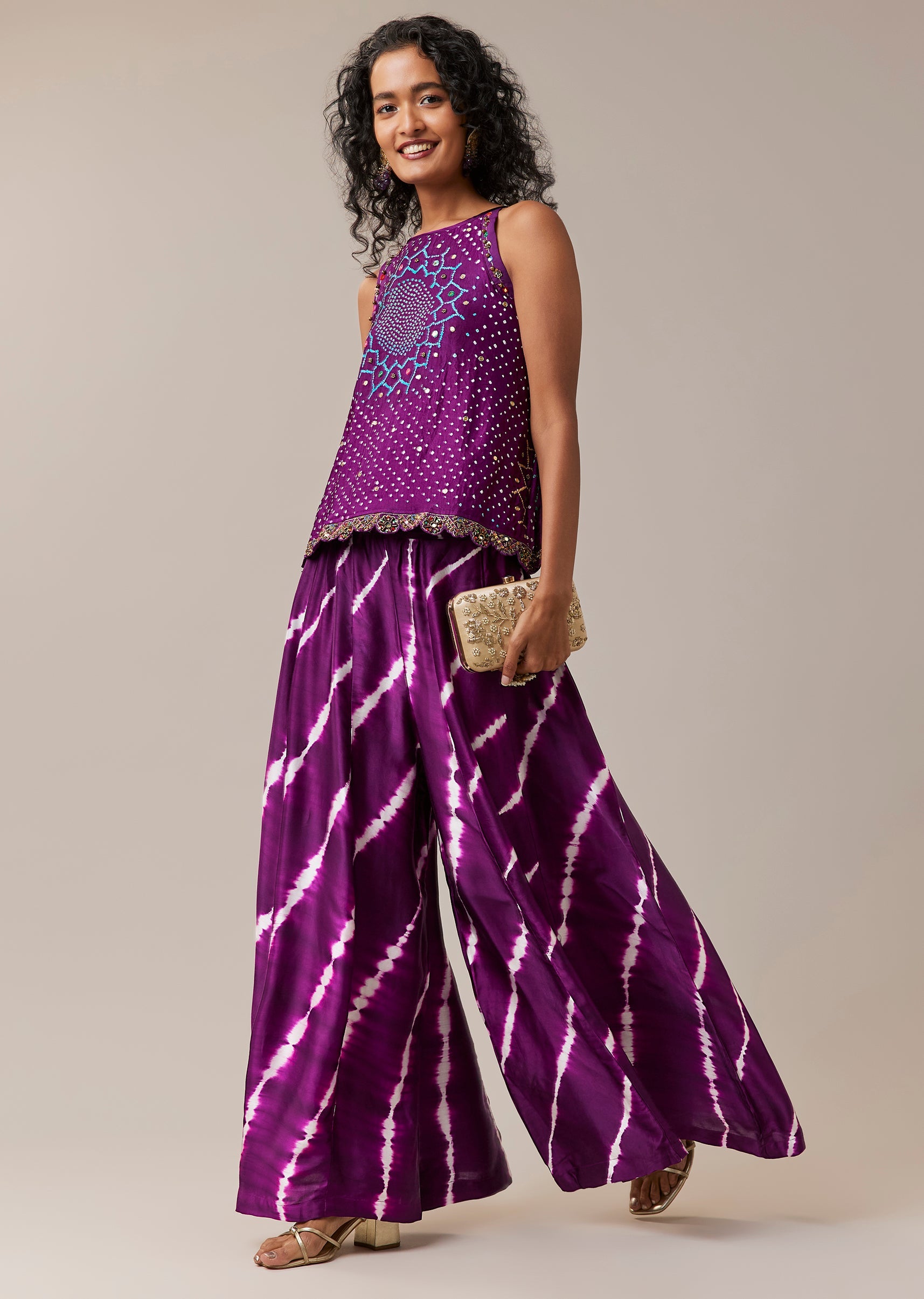 Purple Hand Dyed Bandhani Top and Pant Set with Sequins