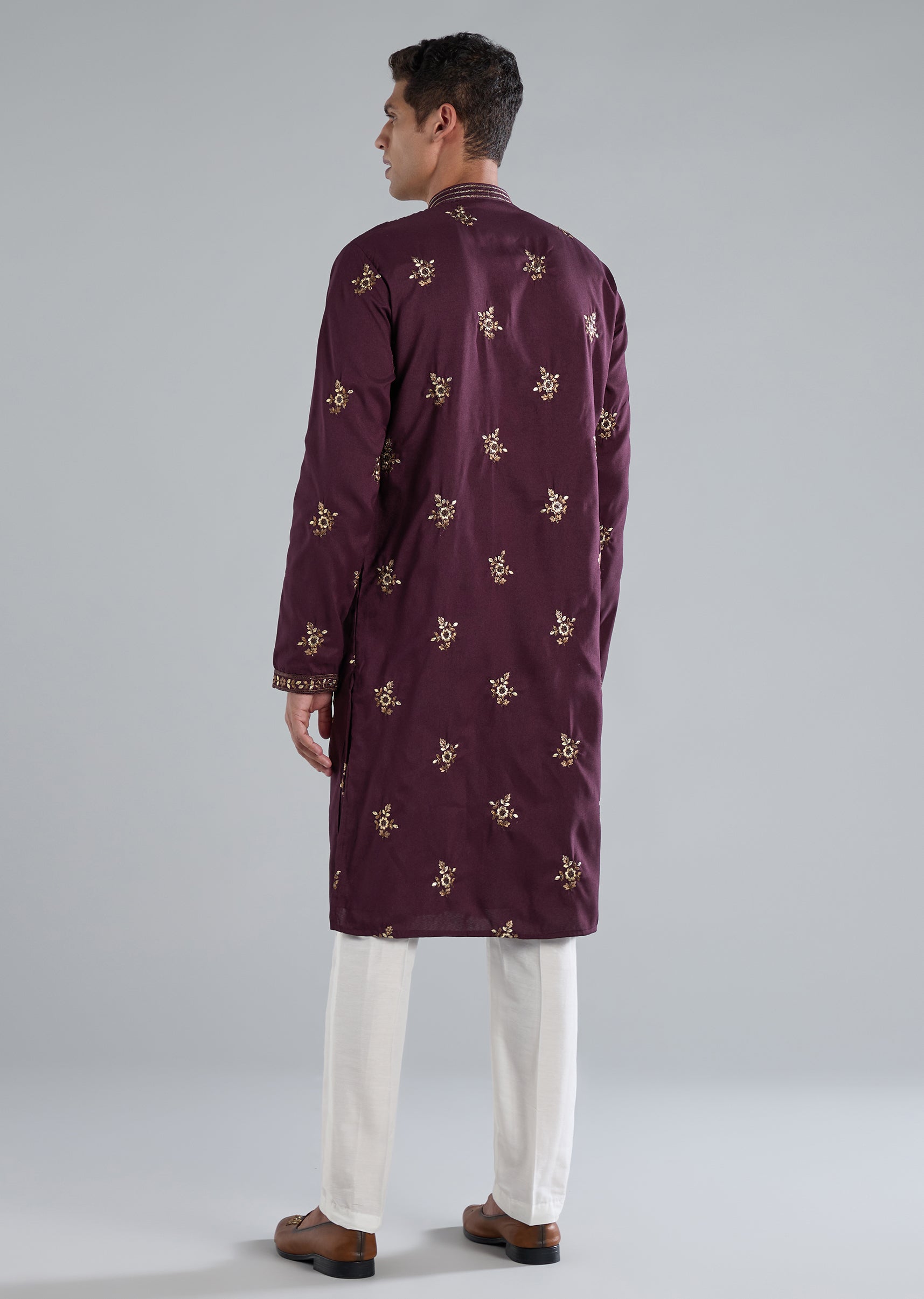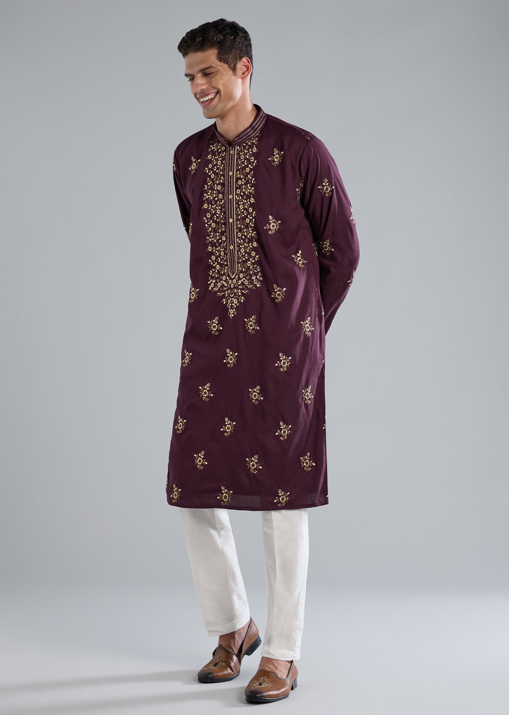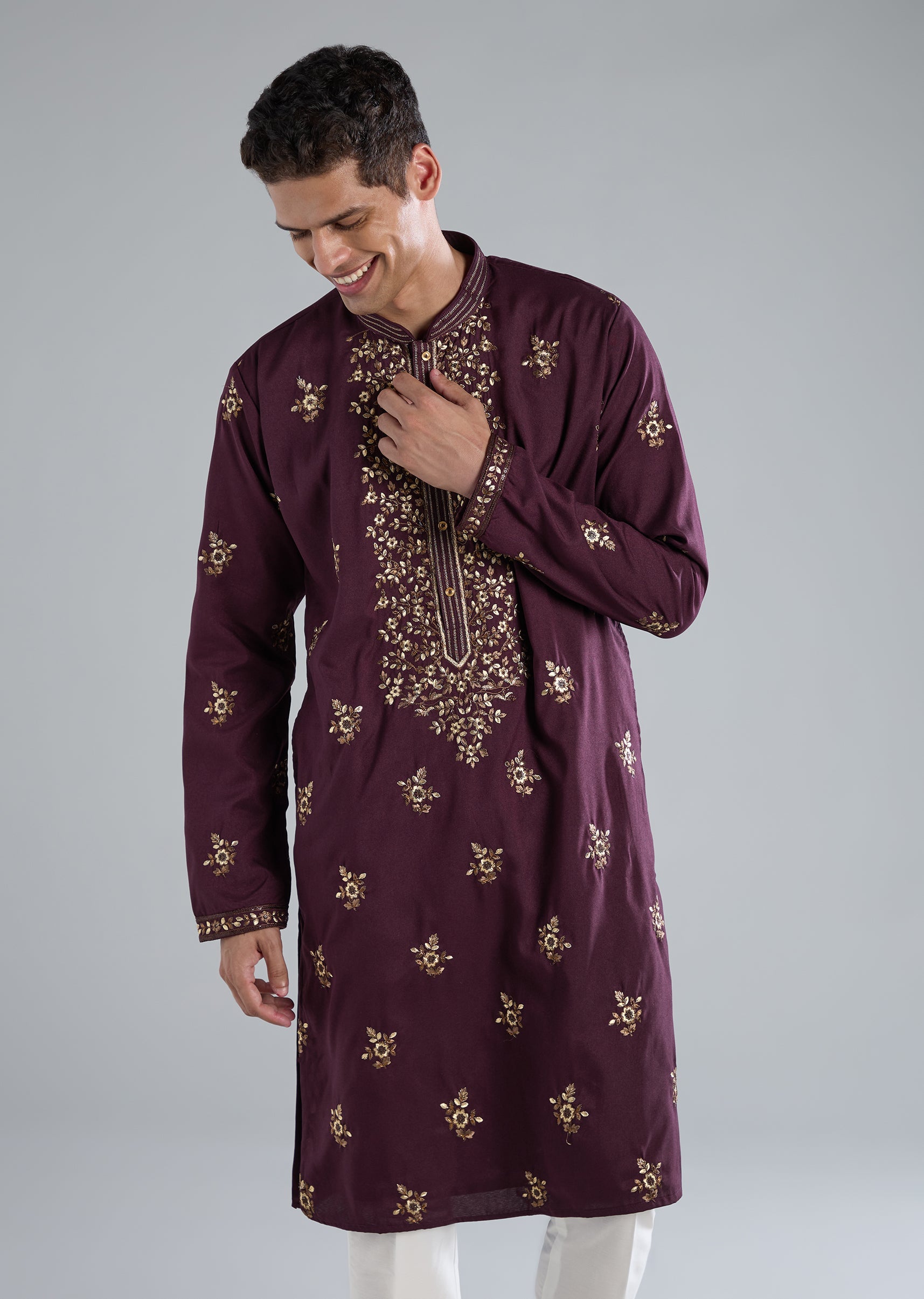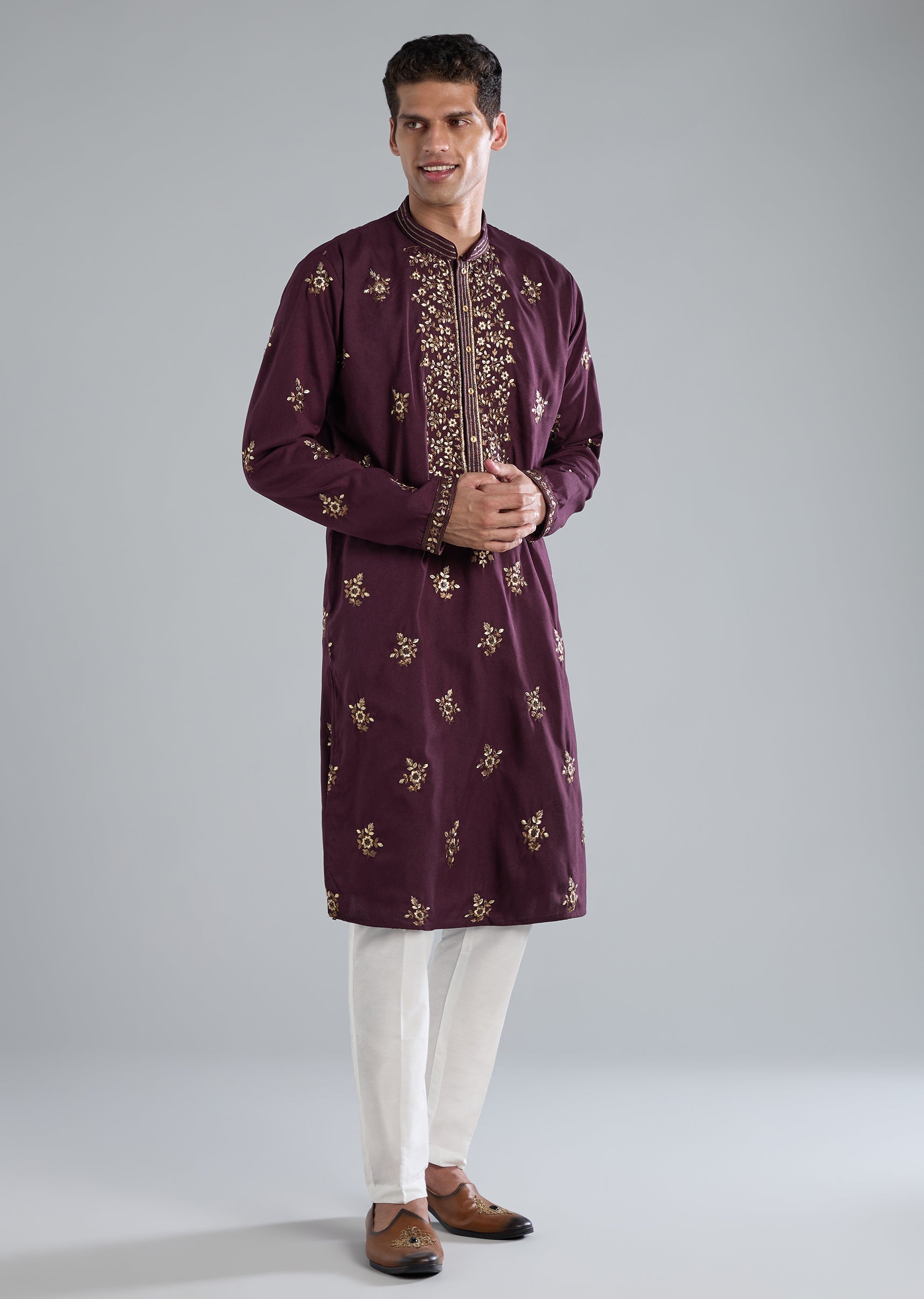 Elegant and rich in tone, this purple kurta set is crafted using silk as the primary fabric with art silk as the secondary base for a smooth and refined finish.... More Product Details