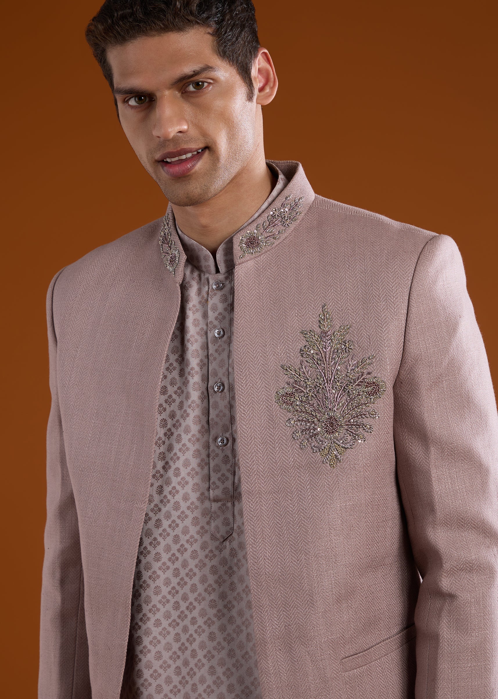 Rooted in heritage with a festive flourish, this matka silk jodhpuri kurta set is crafted for elevated traditional dressing. The textured matka silk base is richly adorned with thread and... More Product Details