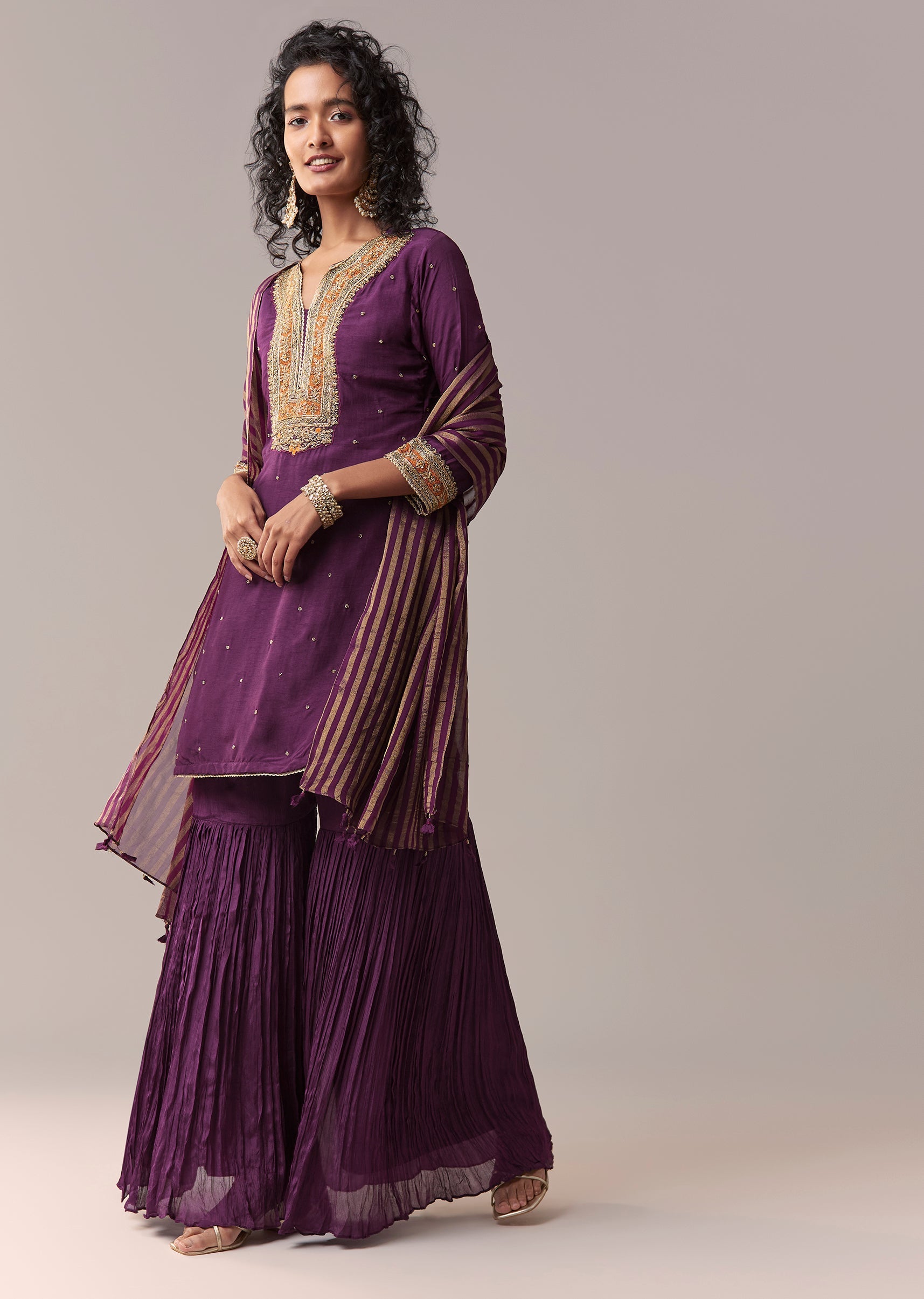 Purple Pakistani-Style Zardosi Sharara Set With Dupatta