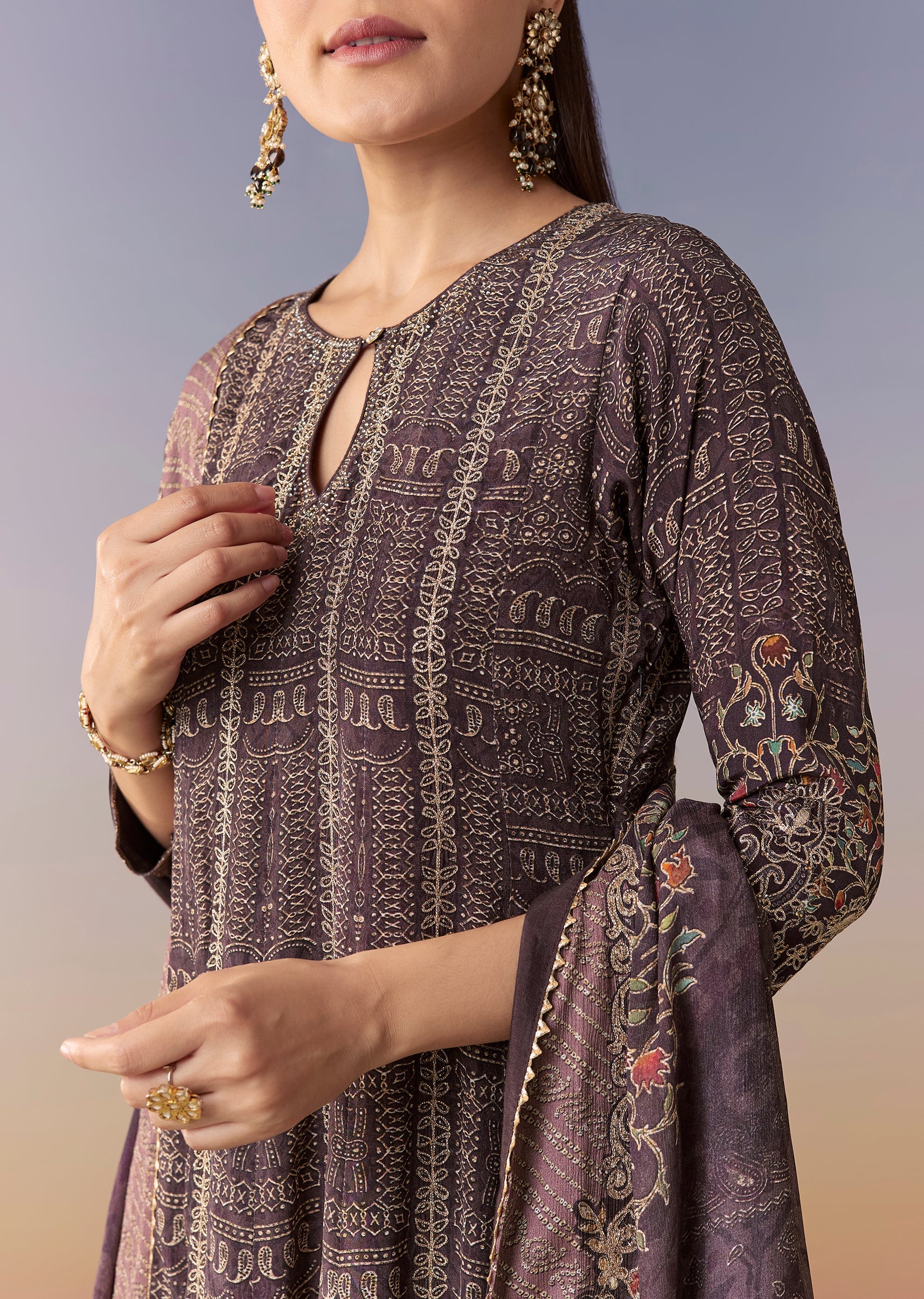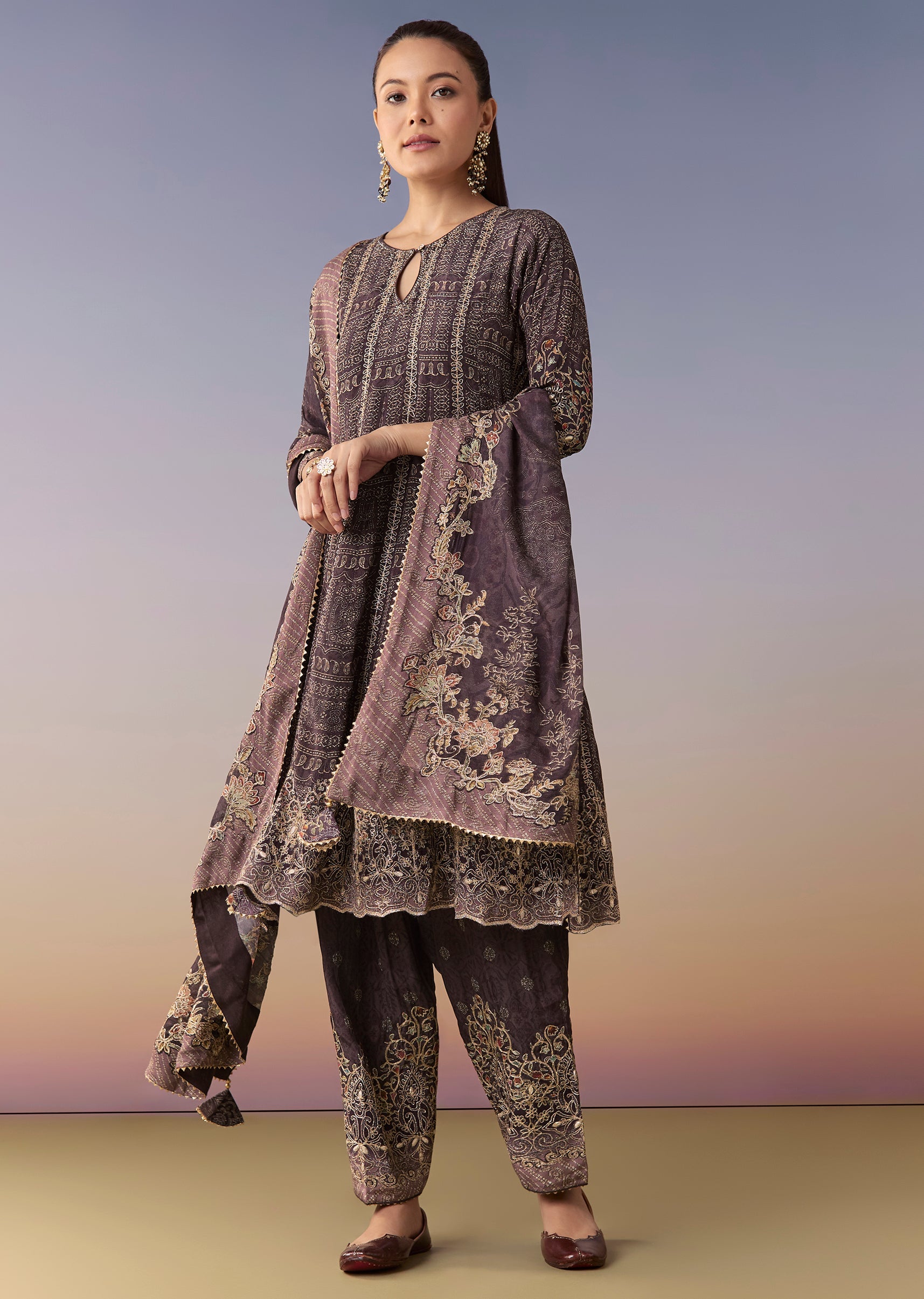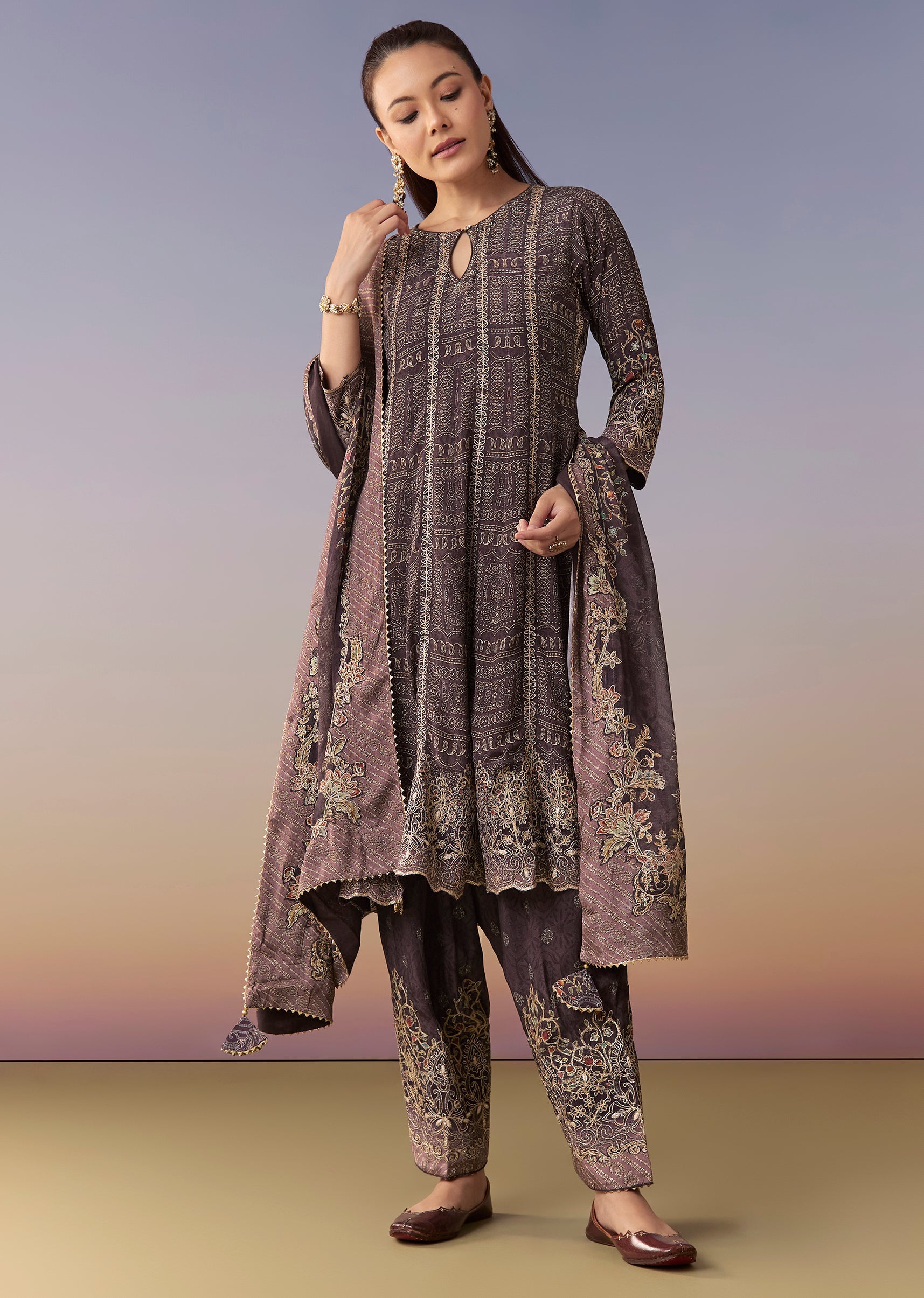 Crafted in crepe, this A-line printed kurta features a keyhole neckline, 3/4th sleeves and side zip closure for a clean fit. Paired with a mid-waist patiala (elasticated) and matching dupatta,... More Product Details