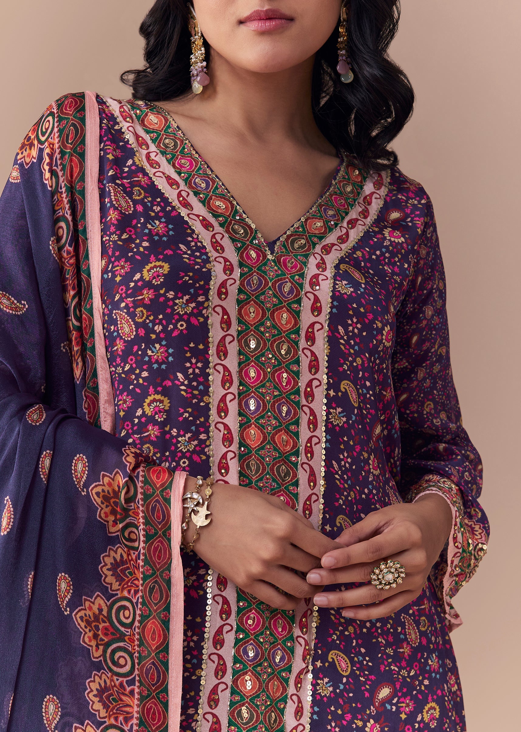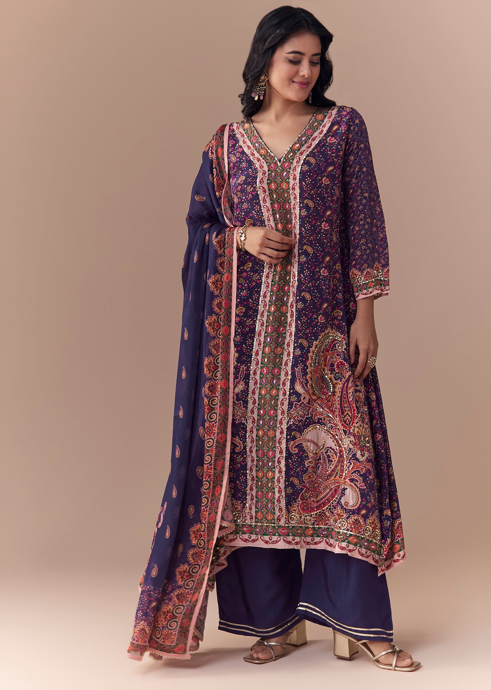 This elegant ensemble features a printed kurta adorned with delicate sequins work for a subtle festive shimmer. Crafted from soft crepe, the kurta offers a comfortable yet refined drape. The... More Product Details