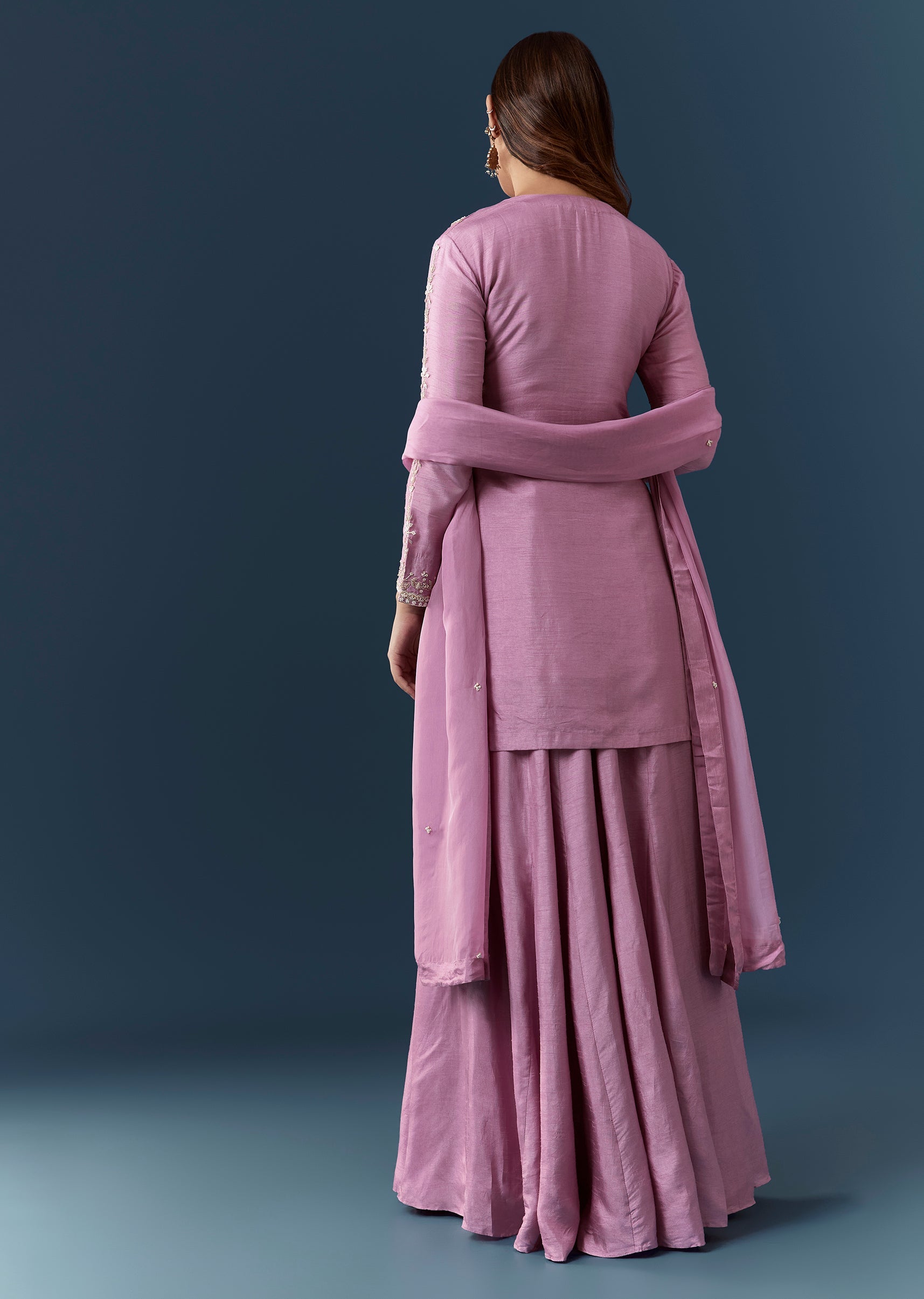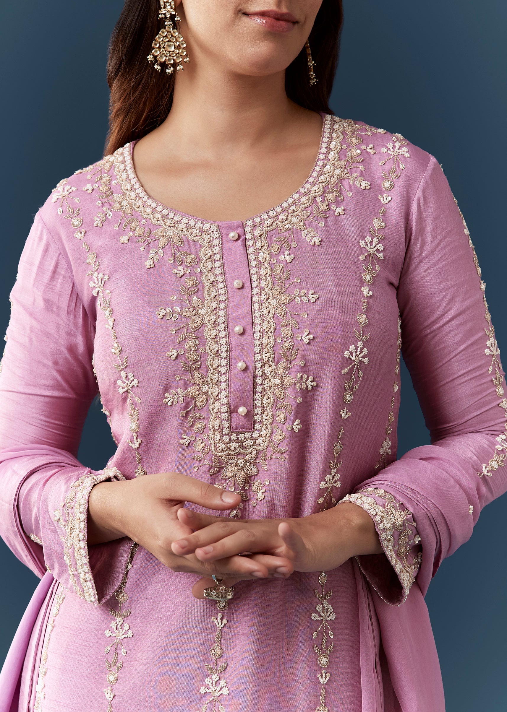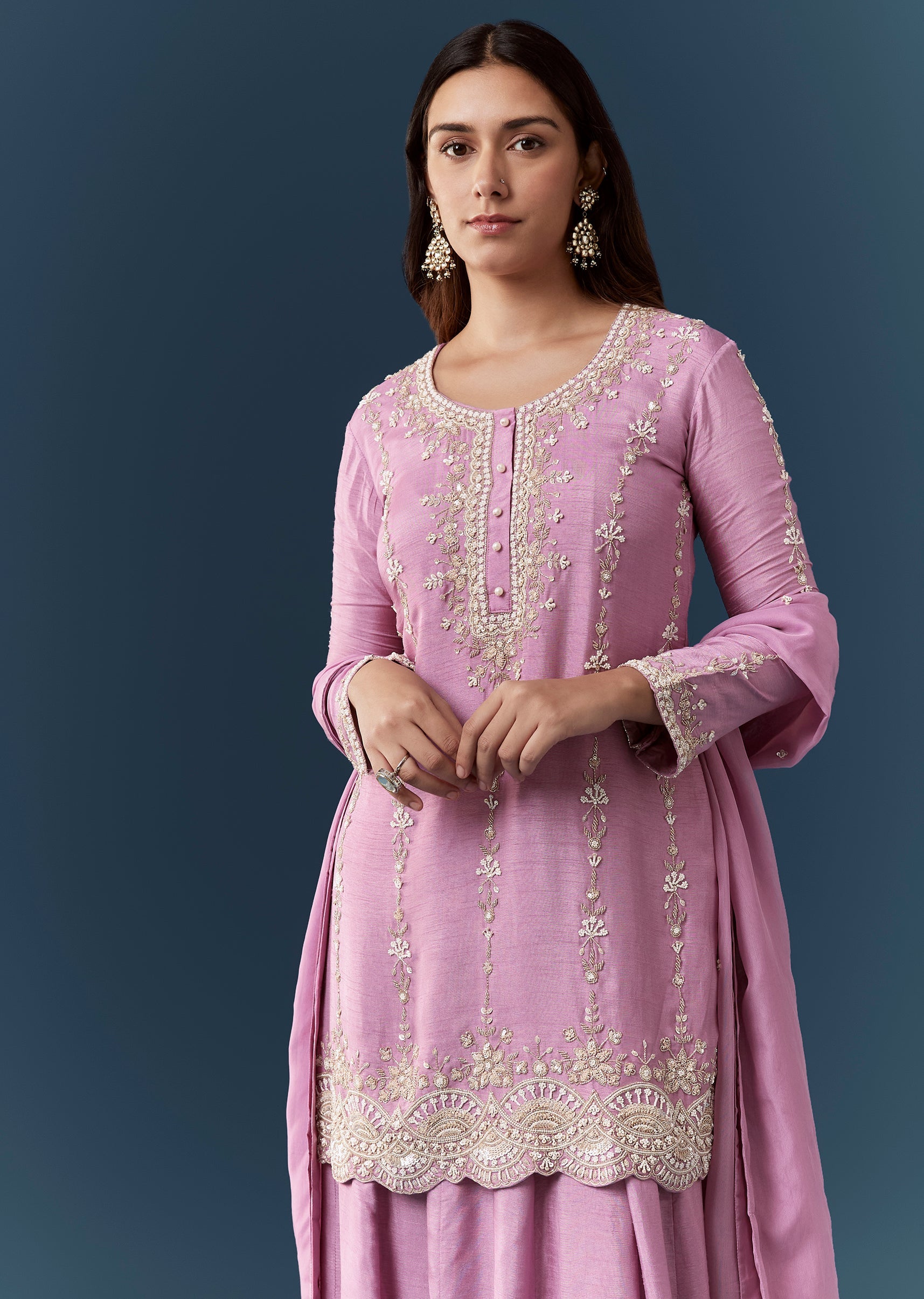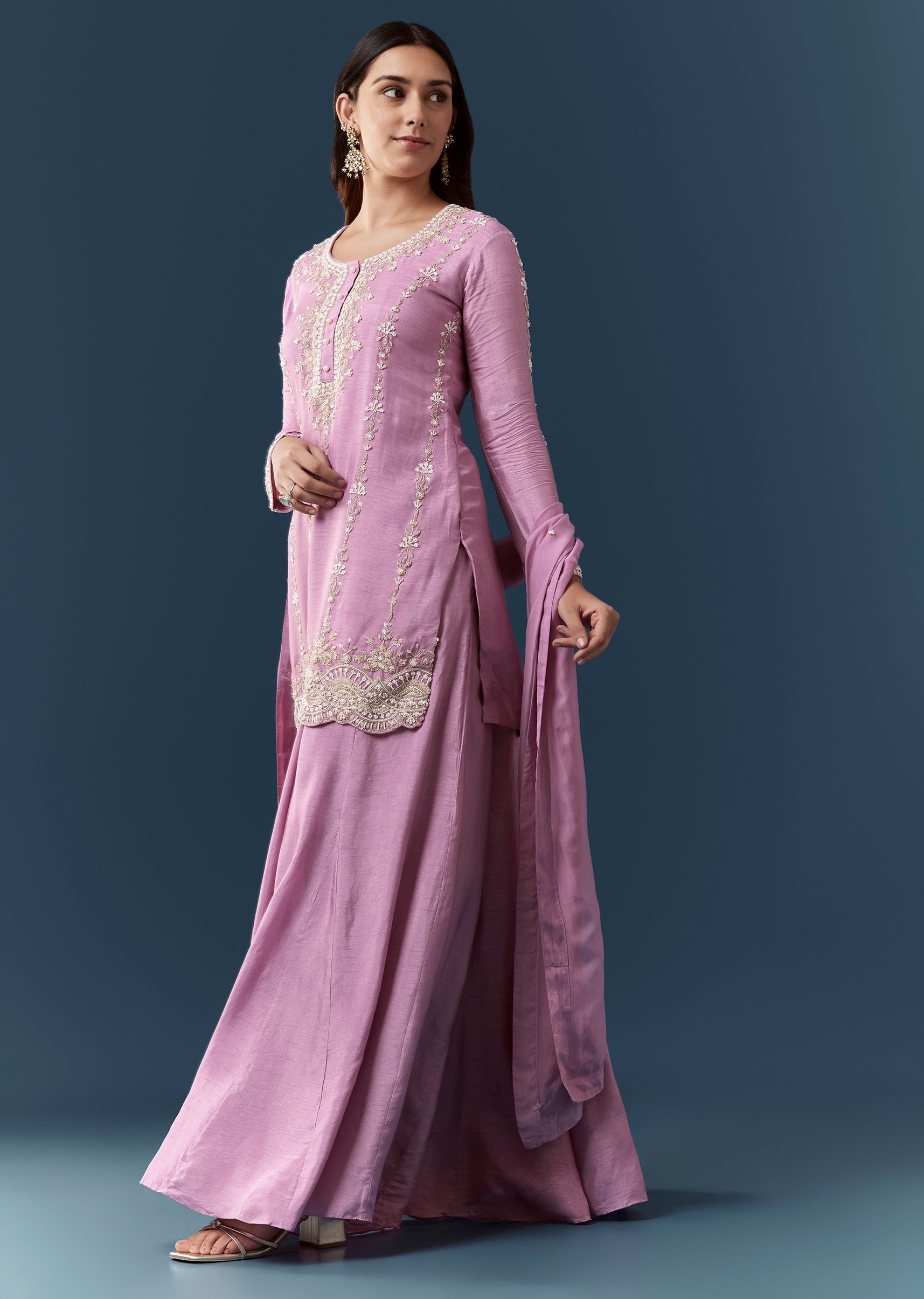 Soft lilac charm comes to life in this silk kurta set adorned with shimmering sequins, refined cut dana detailing, and delicate embroidery that add a luminous festive touch. The full... More Product Details