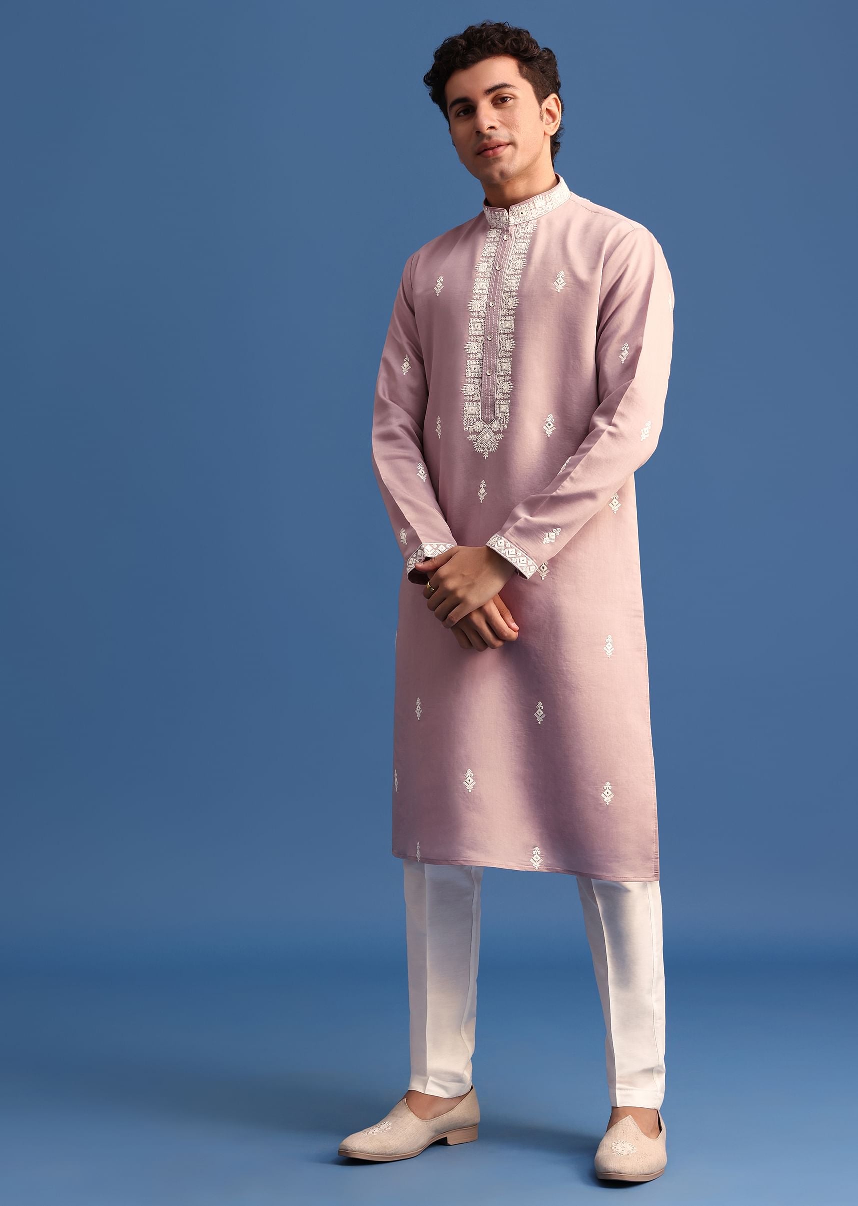 Elevate your ethnic style with this Purple Silk Fabricated Resham Embroidered Kurta Set. The luxurious silk fabric drapes elegantly, while intricate Resham embroidery adds a touch of regal charm. Perfect for festive occasions. This kurta is paired with pants. Awarded as the Most Trusted Brand, we're delivering styles you love, just as promised.