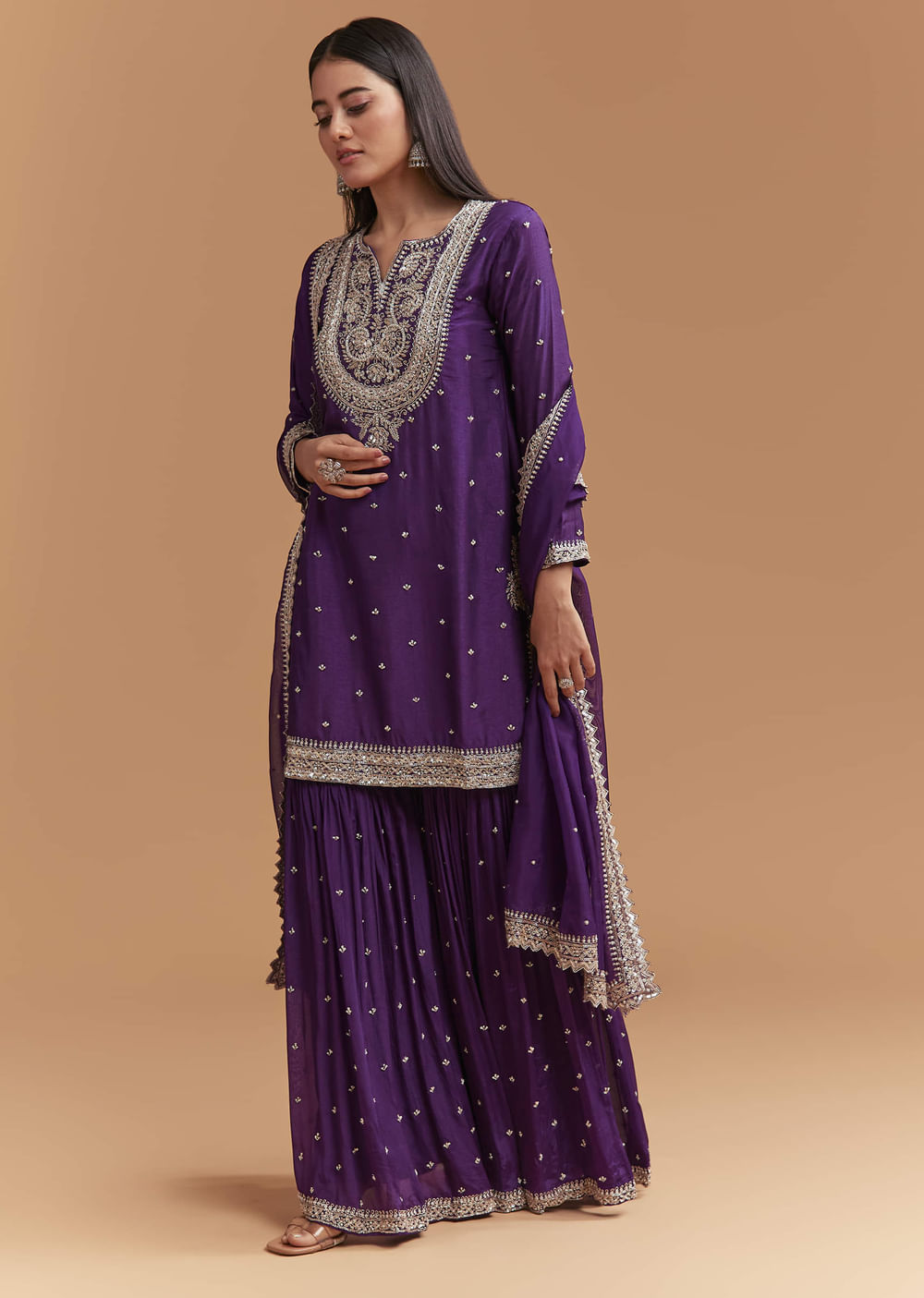 Purple Silk Sharara Suit With Heavy Hand Embroidery