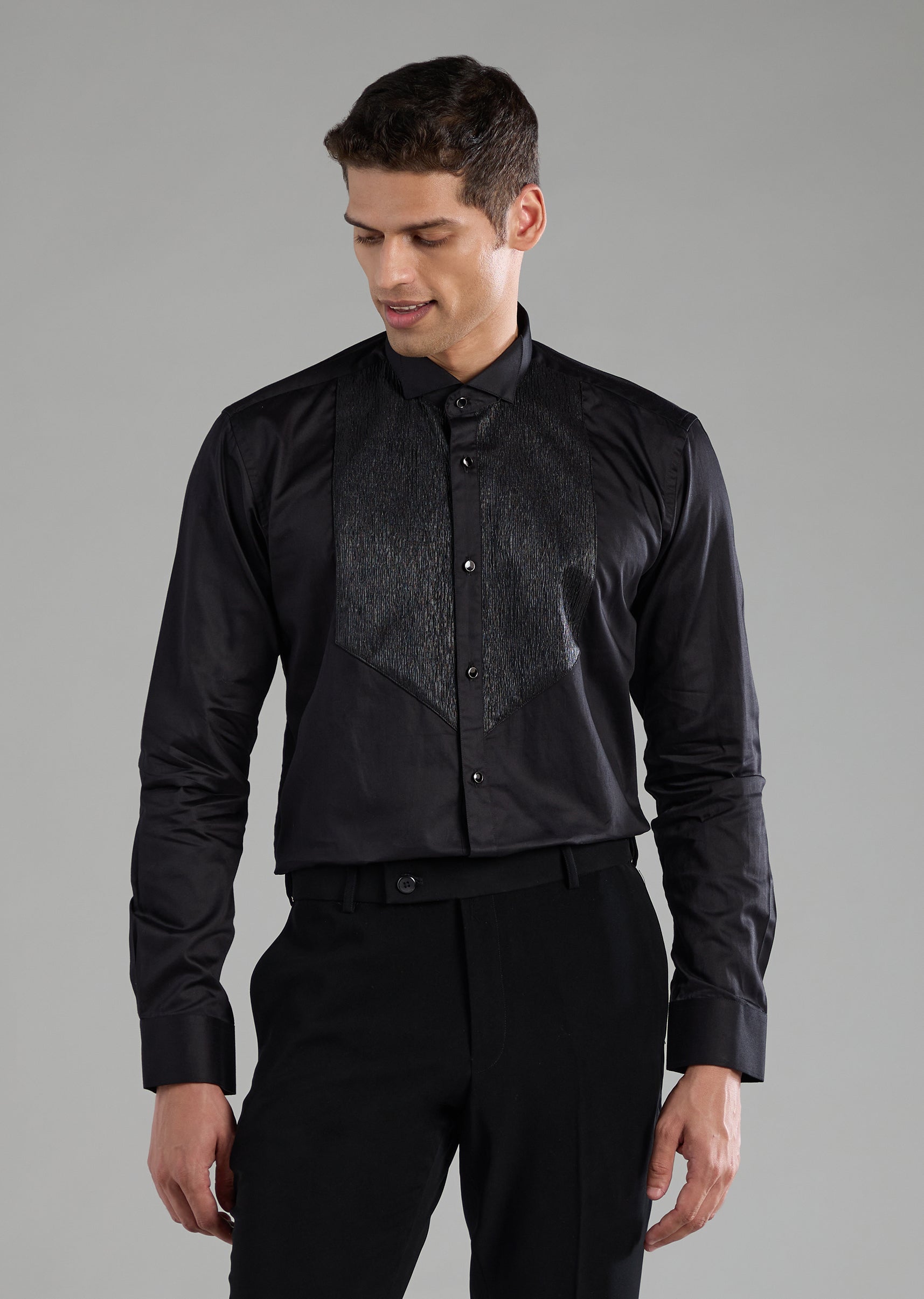 Pair with glossy black formal shoes and a sleek bow for a sharp, evening ready finish.