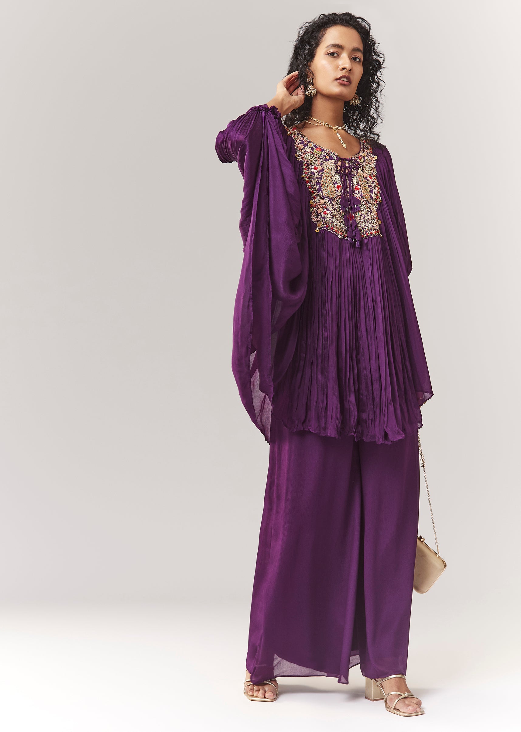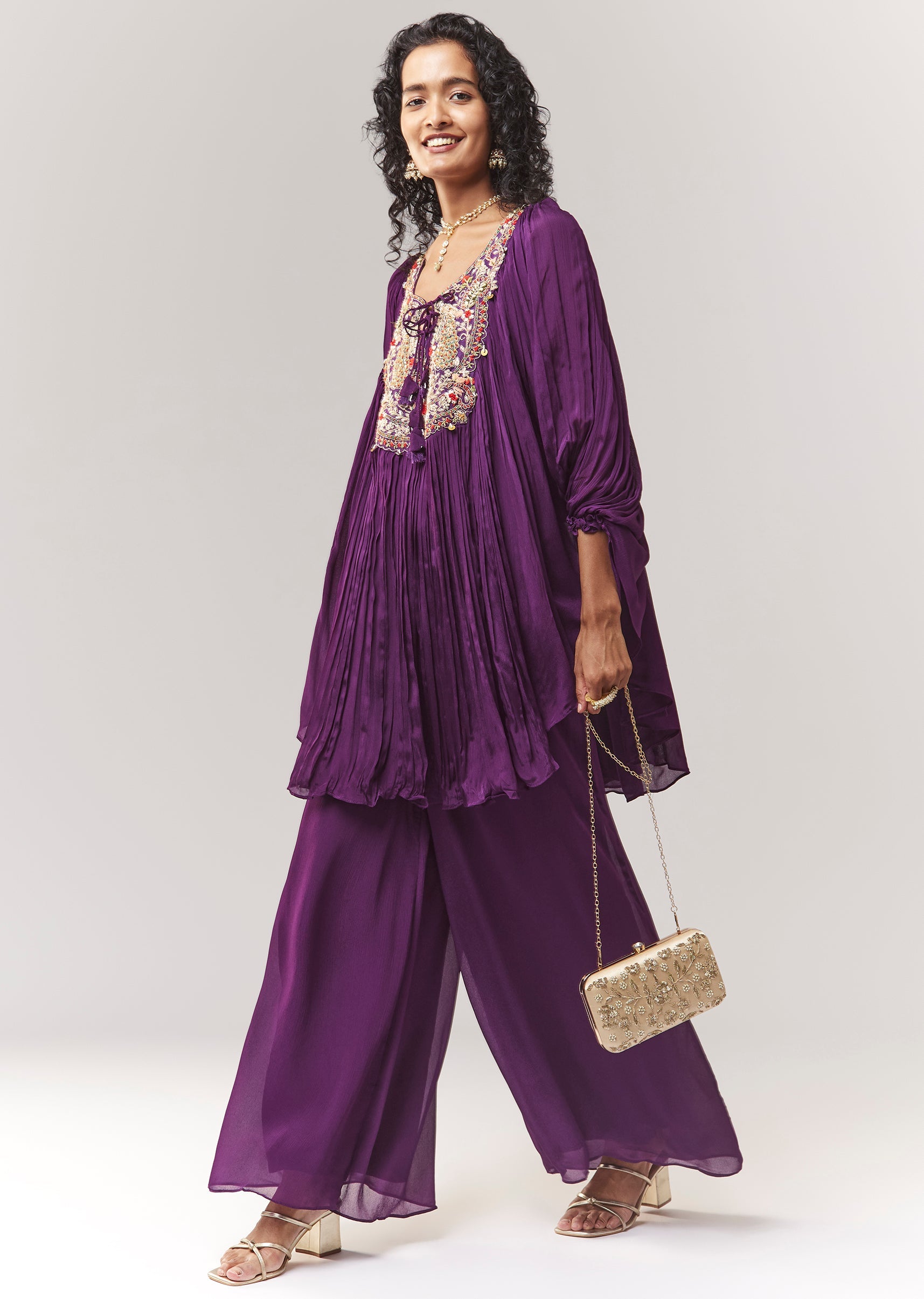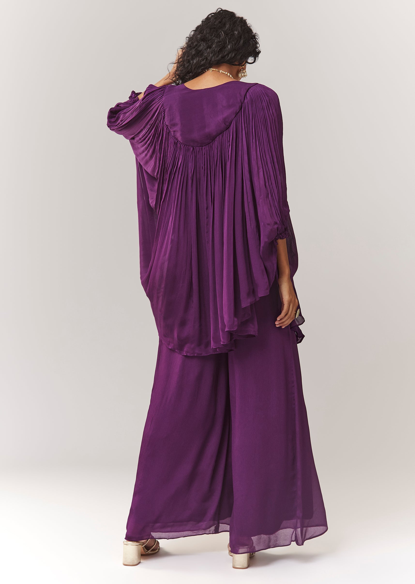 Purple Zardosi And Thread Work Cape Set With Palazzo