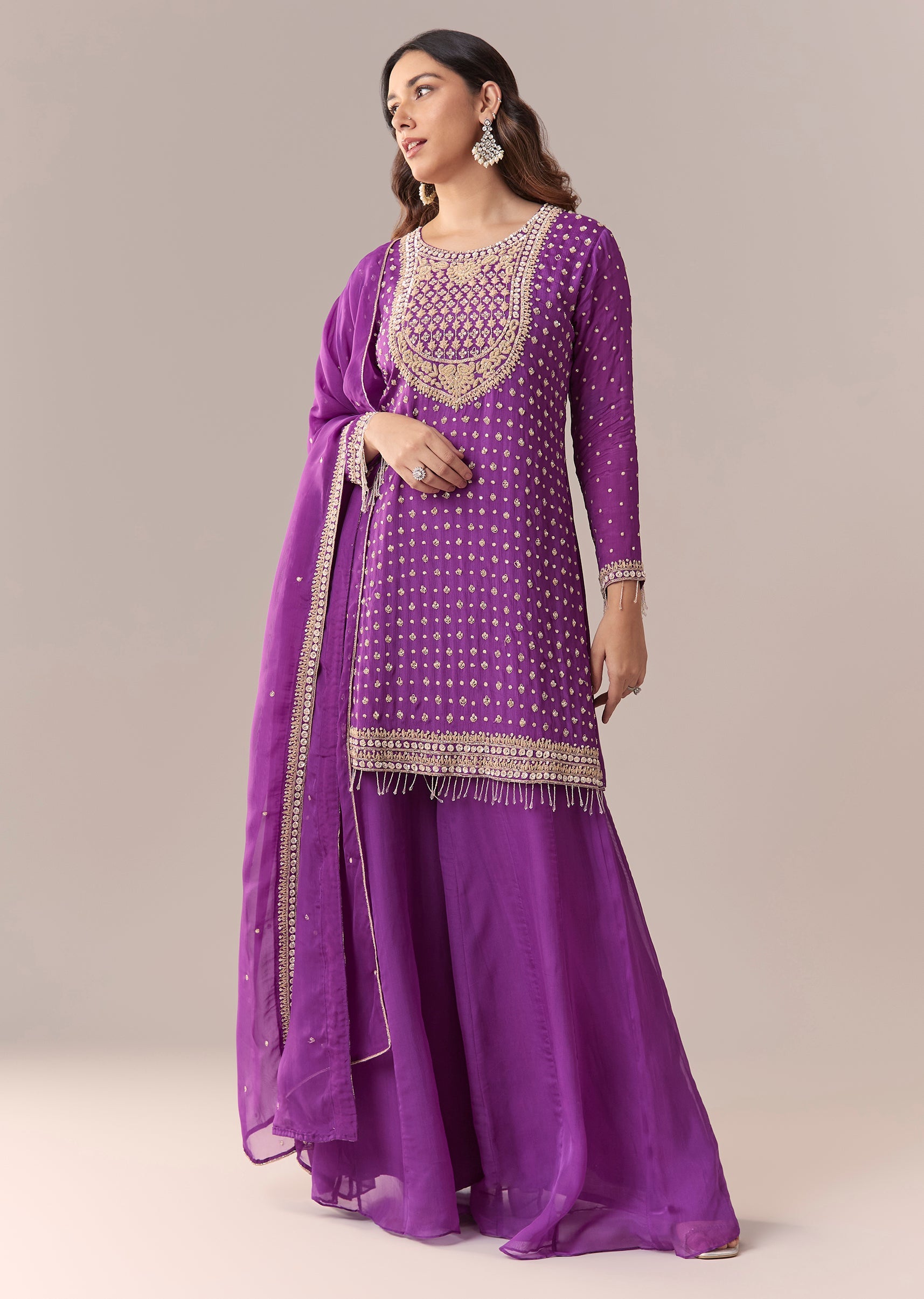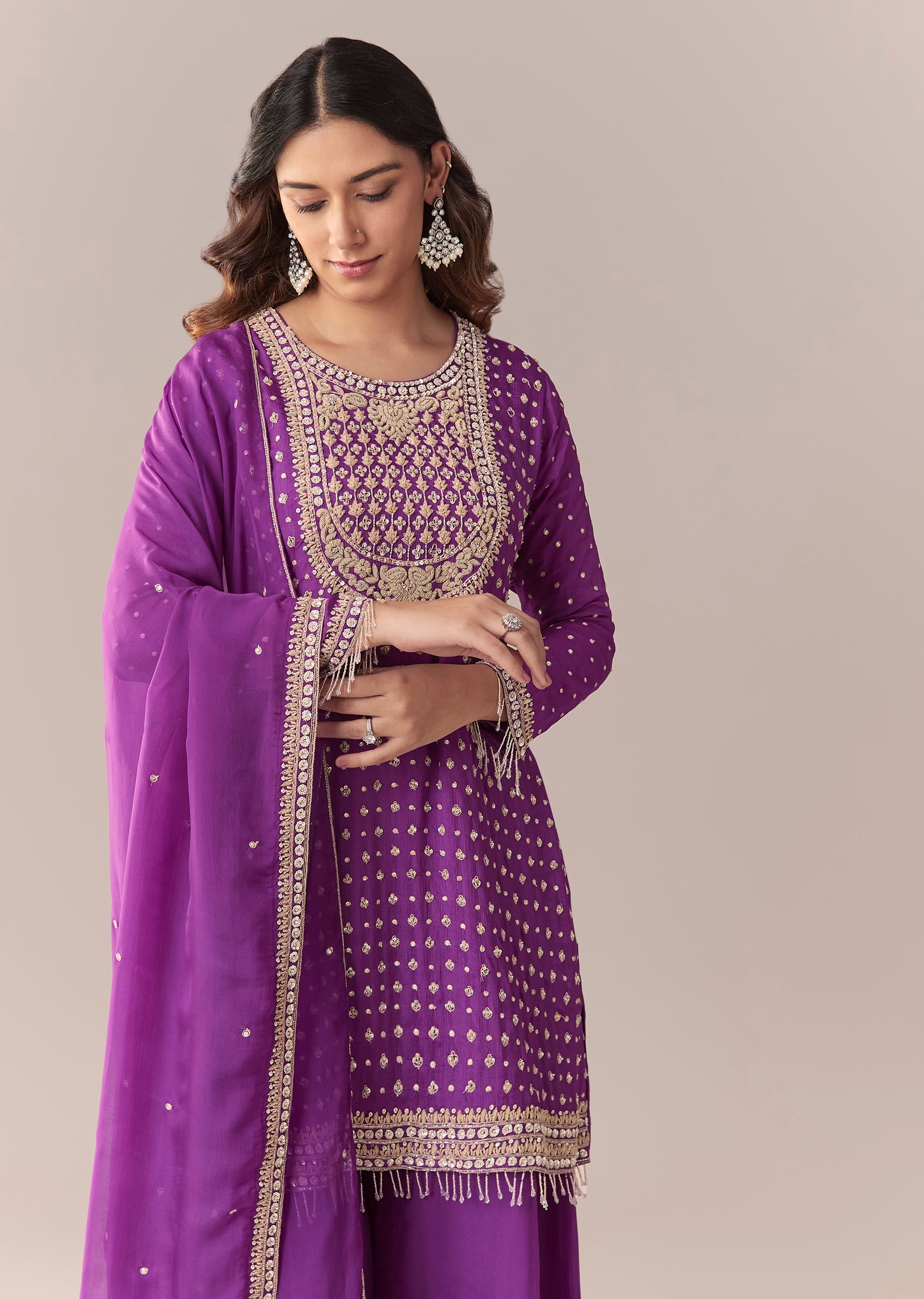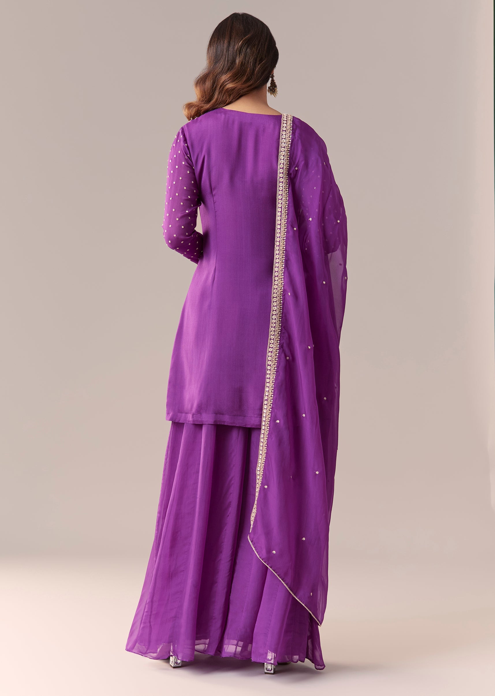 Purple Zardosi Palazzo Suit Set With Dupatta
