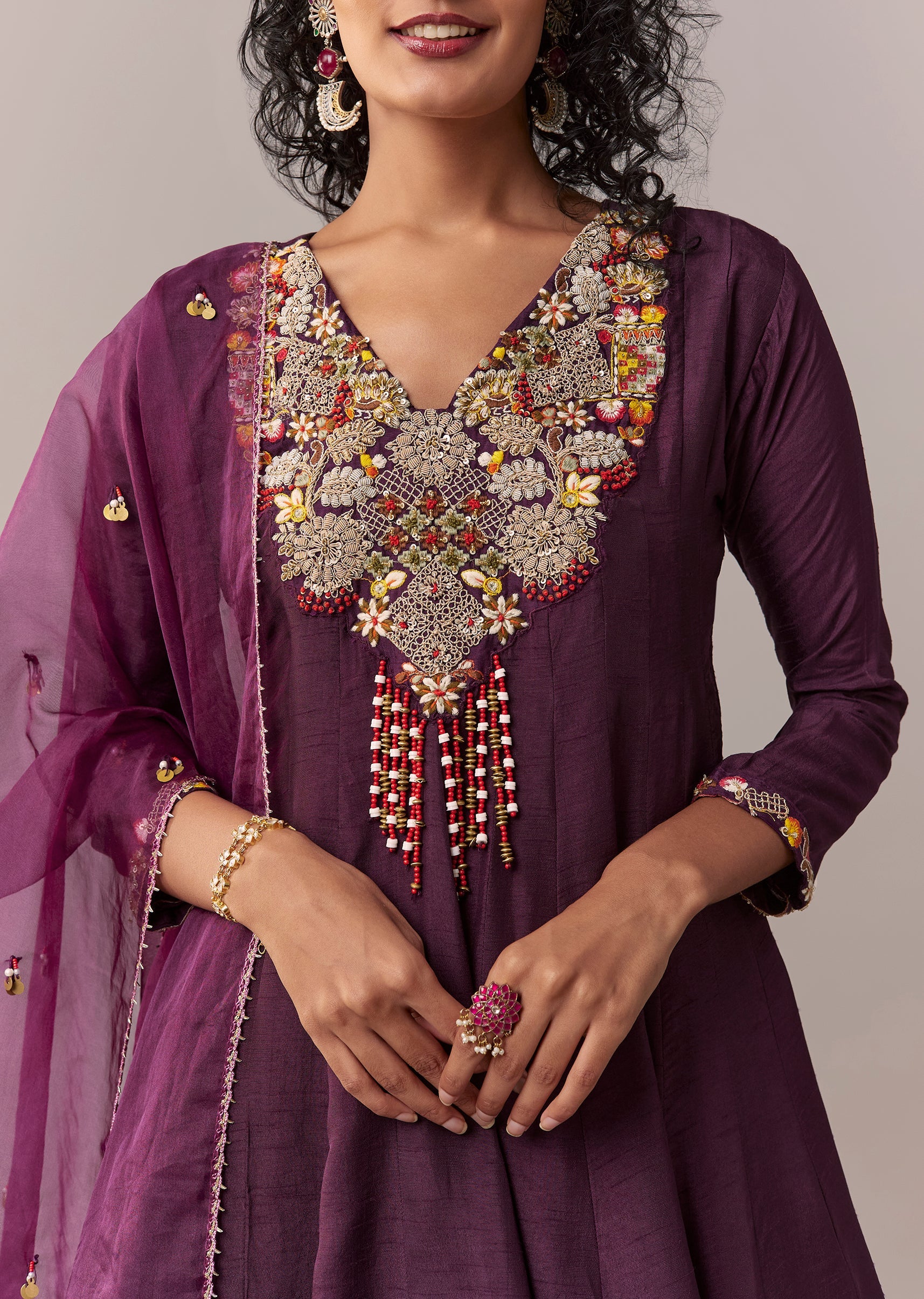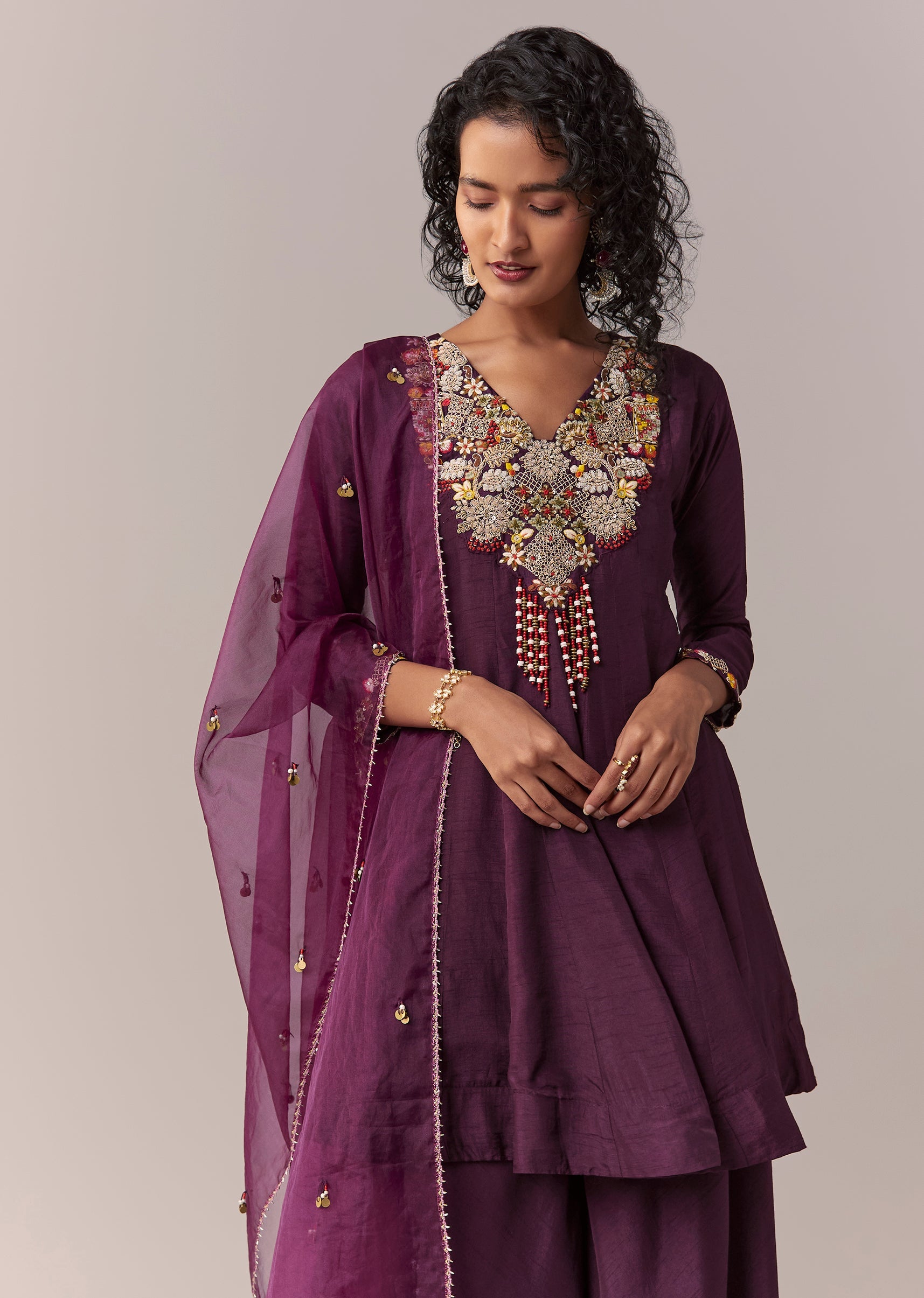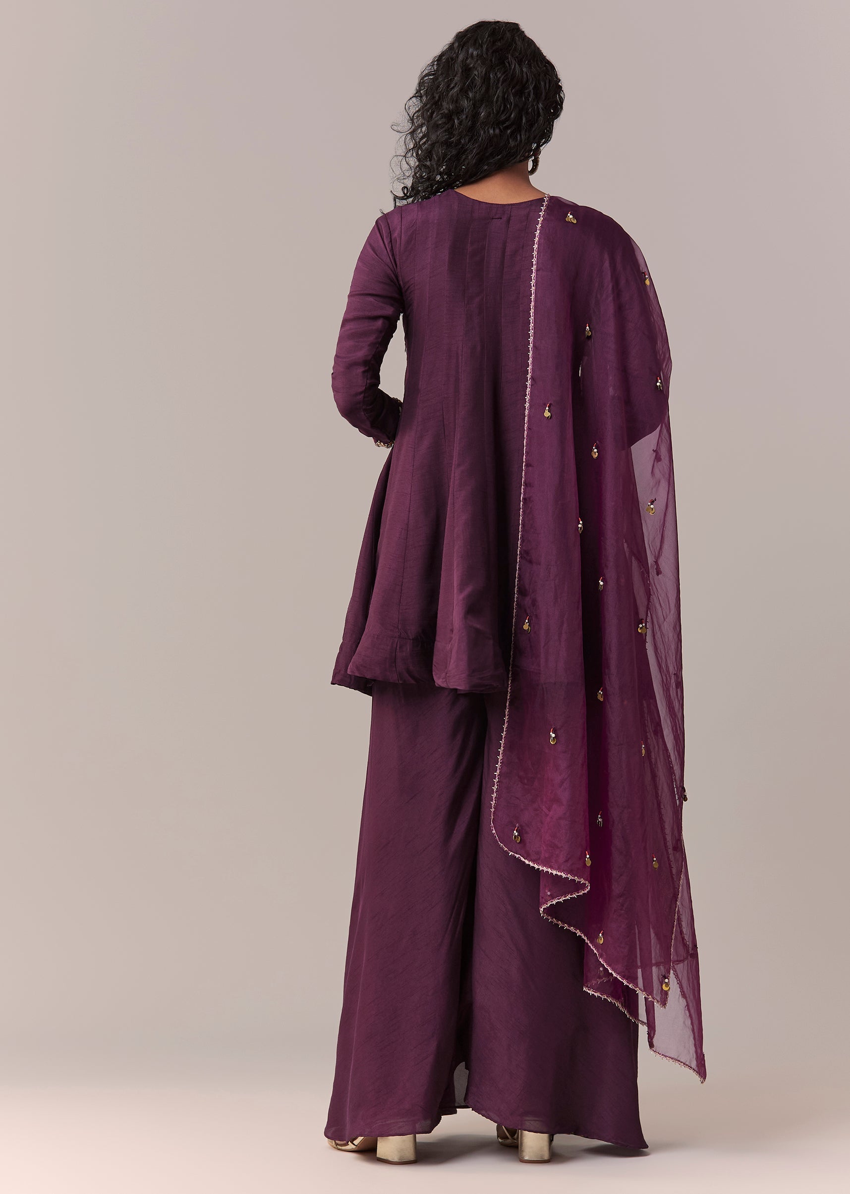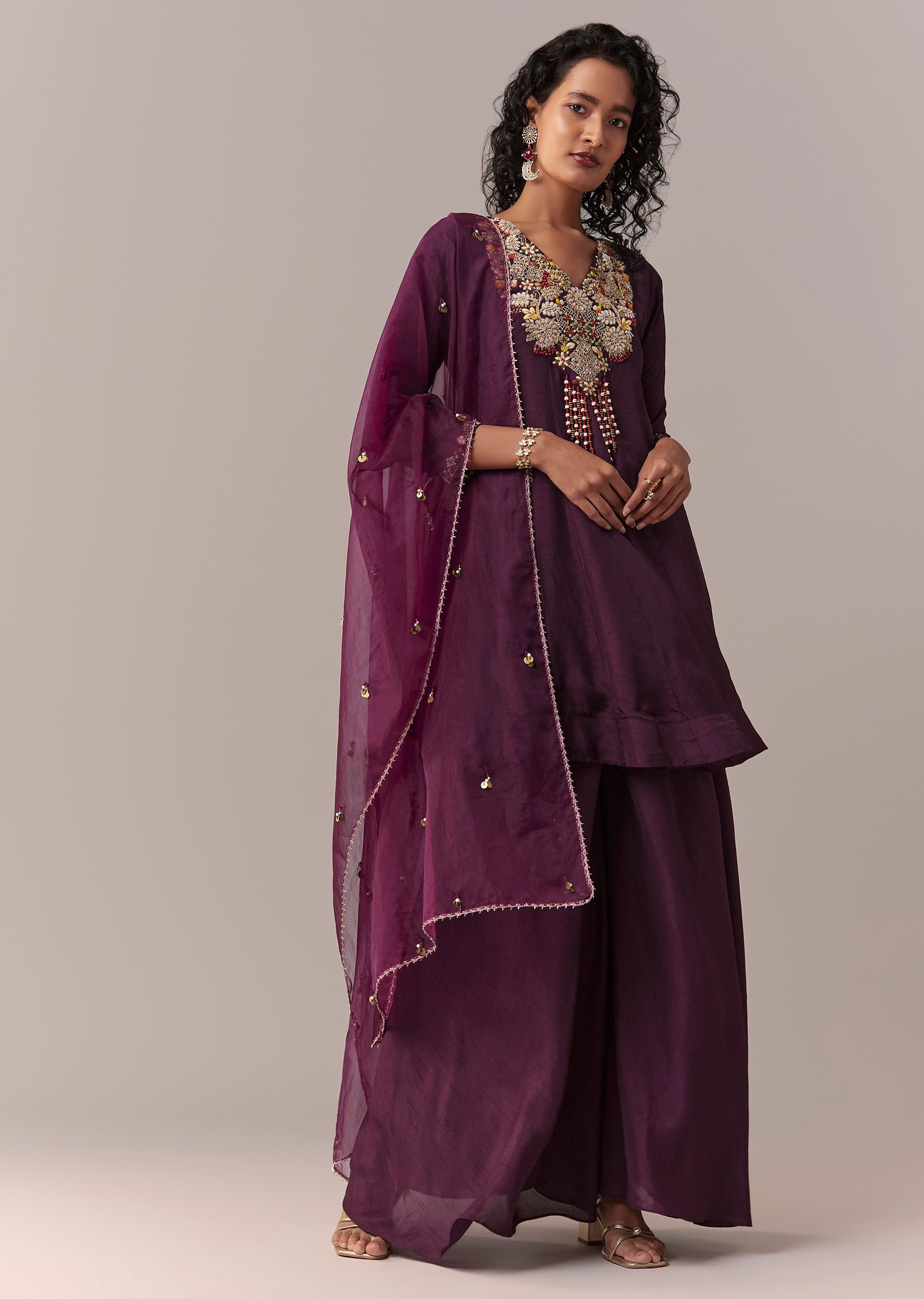 Purple Zardosi & Thread Palazzo Set With Dupatta