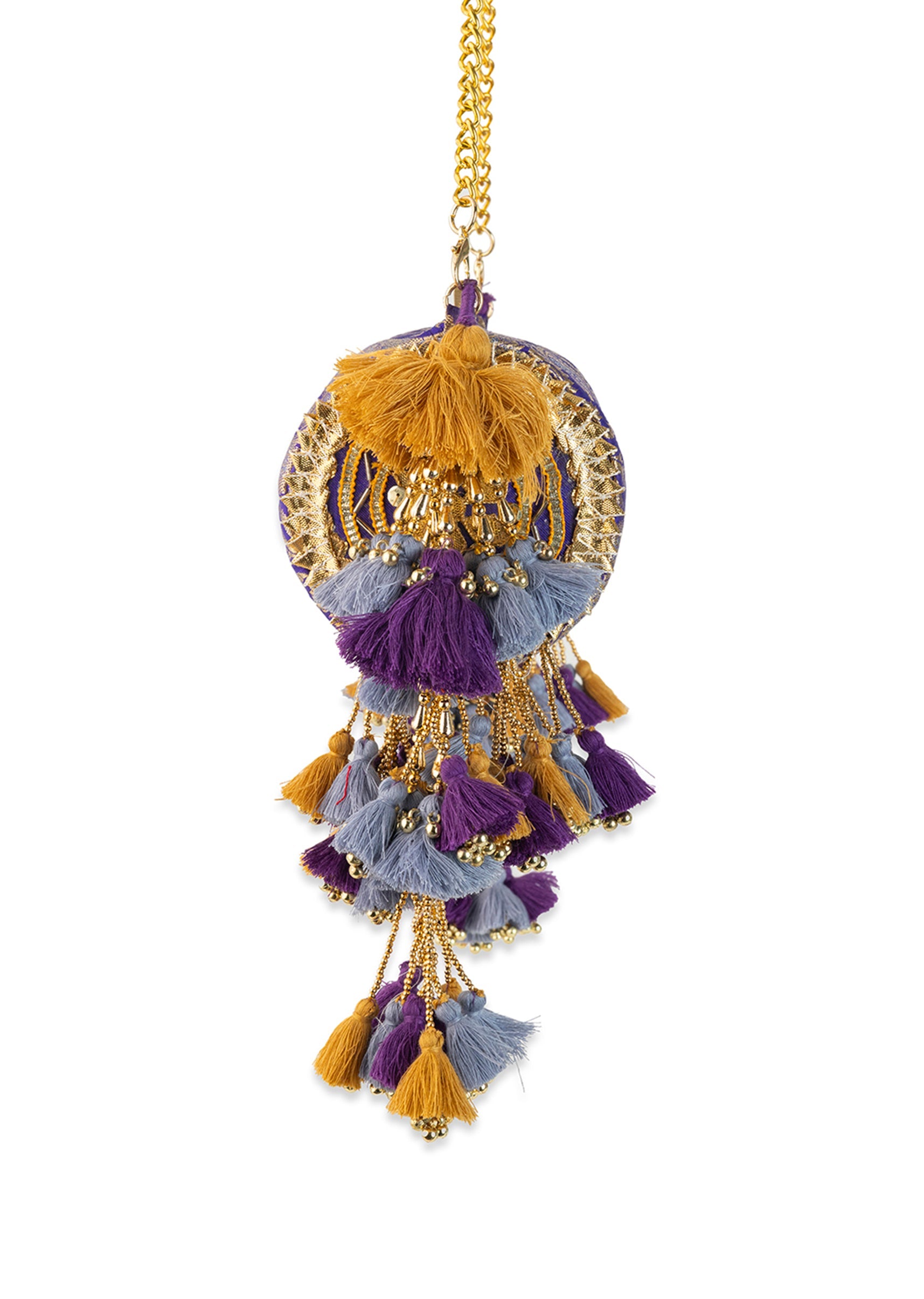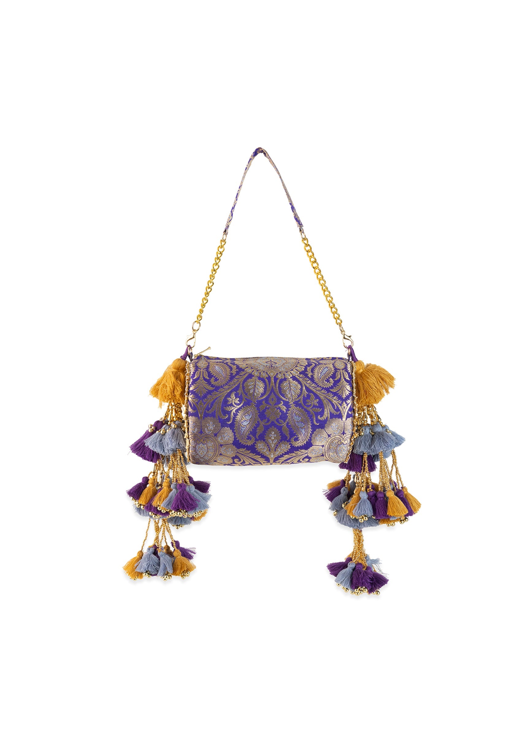 Purple Zari Embellished Brocade Kundan Bag with Tassel