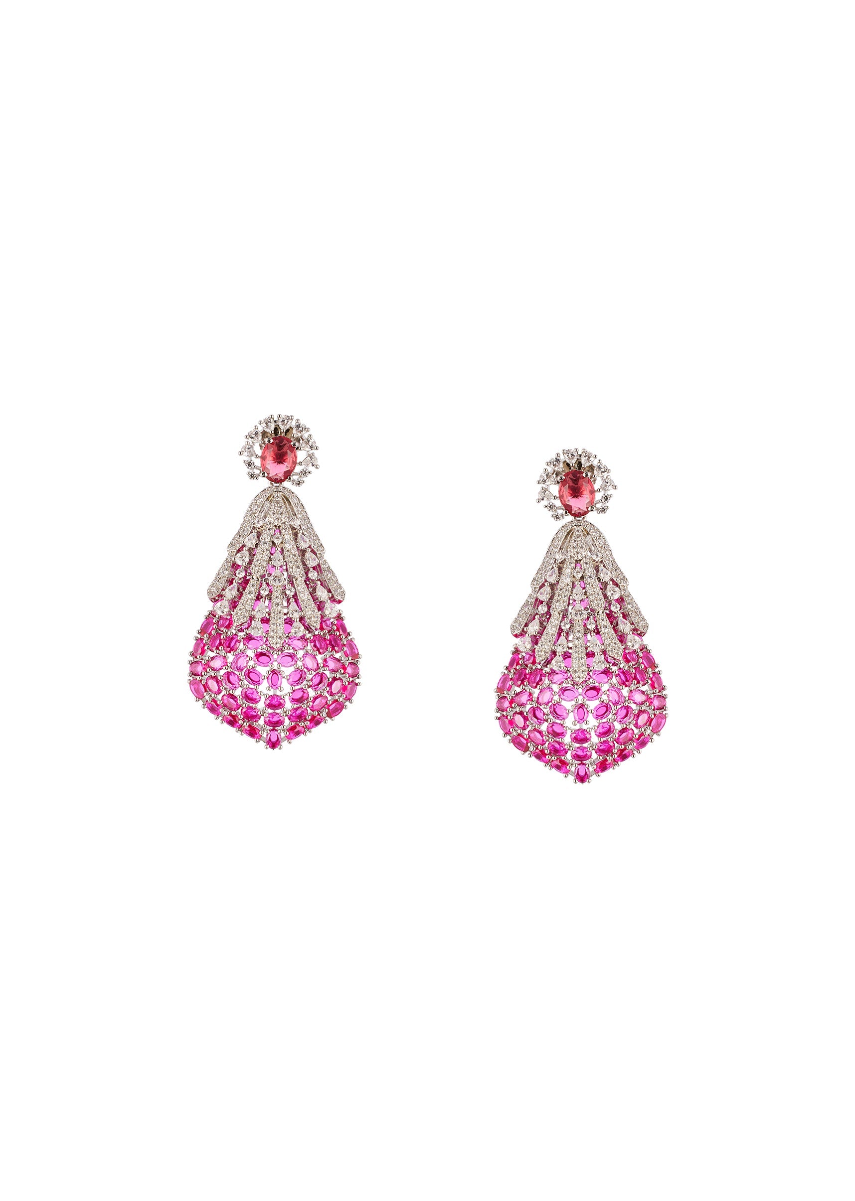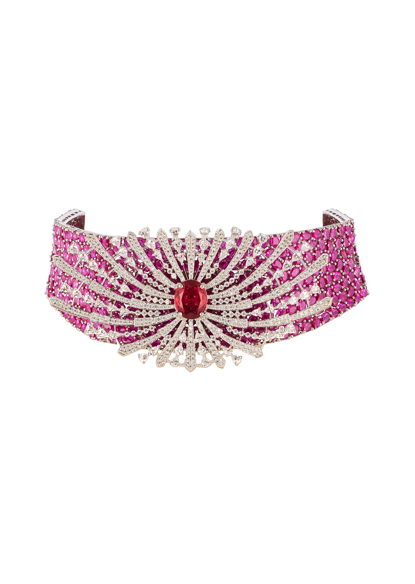 Vibrant and celebratory, this rani pink CZ diamond look necklace set adds a joyful pop of color with timeless elegance. The rhodium plated finish enhances the brilliance of the pink stones, making it a standout choice for weddings and festive occasions. Designed to glow beautifully against traditional and modern silhouettes alike. Awarded as the Most Trusted Brand, we're delivering styles you love, just as promised.