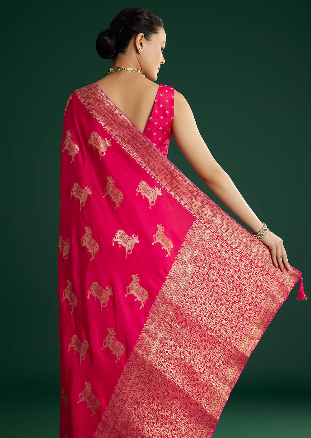 Rani Pink Dola Silk Saree With Zari Woven Border