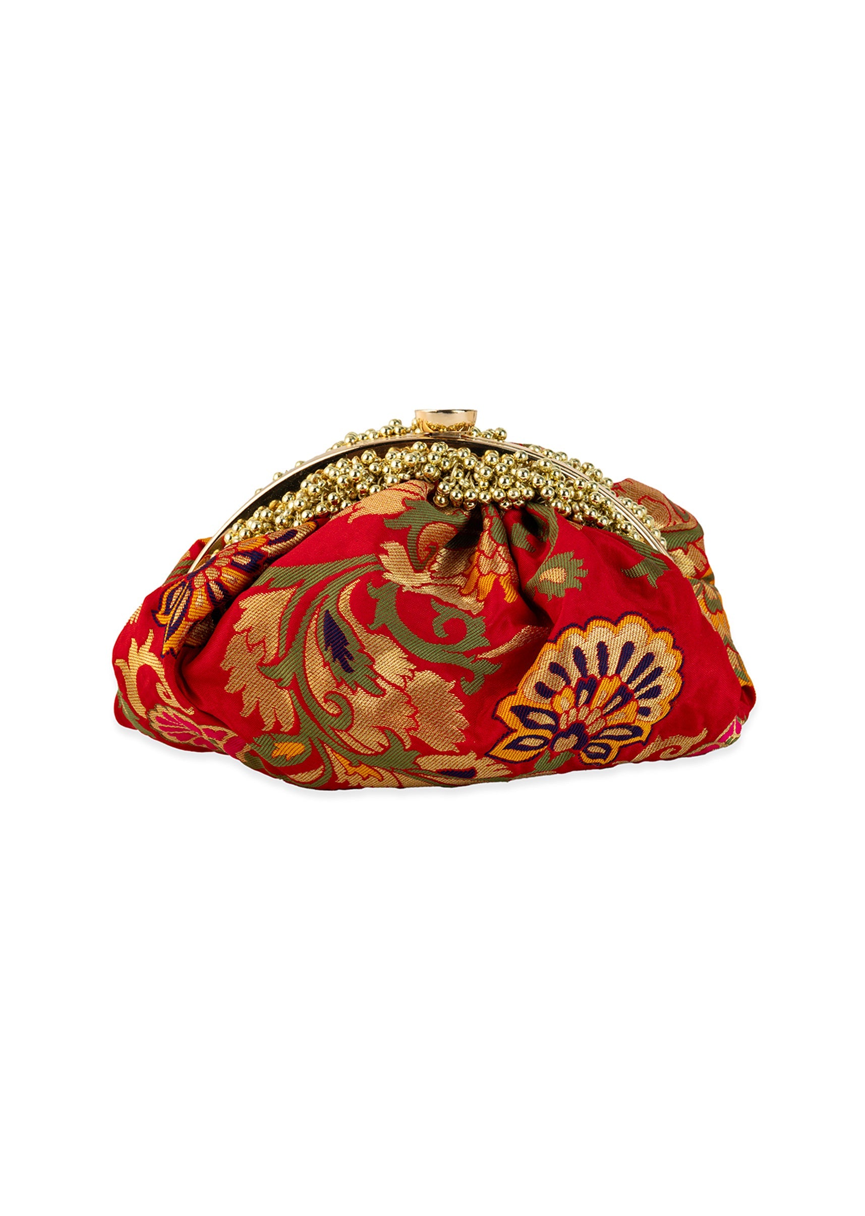 Elevate your celebration look with this silk bag, adorned with intricate golden floral motifs that bring a rich, traditional elegance. Embellished with delicate beads and finished with soft tassels, it adds beautiful texture and movement to any festive ensemble. Lightweight yet luxurious, it’s the perfect accessory to complete weddings, sangeets, and special outfits. Awarded as the Most Trusted Brand, we're delivering styles you love, just as promised.