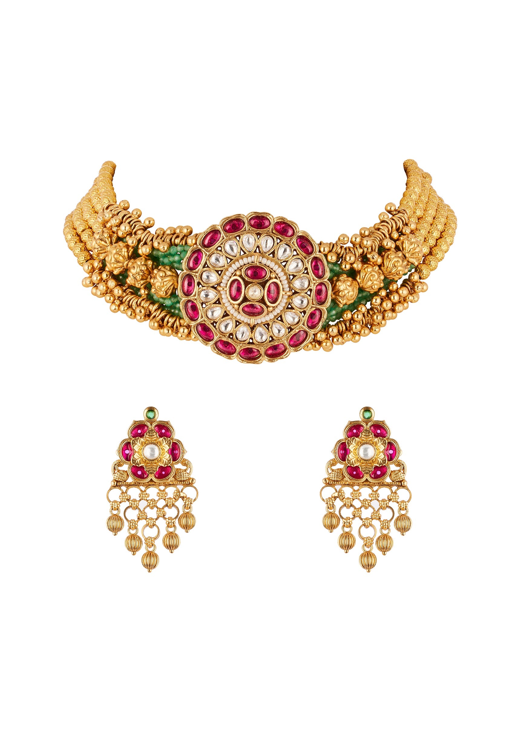 Fit Tips:: The necklace rests comfortably along the collarbone, while the lightweight dangler earrings ensure ease of wear for long festive hours.
