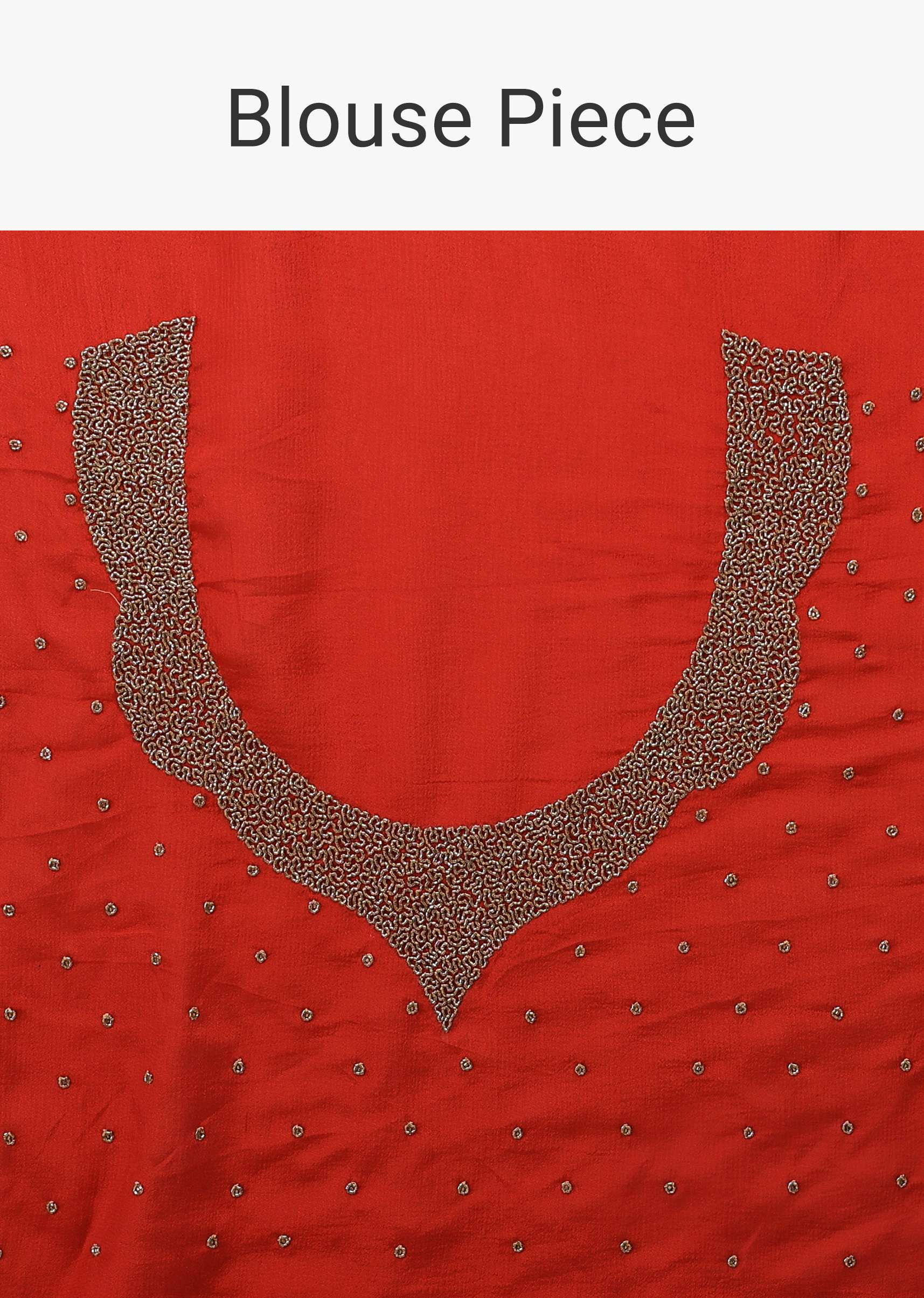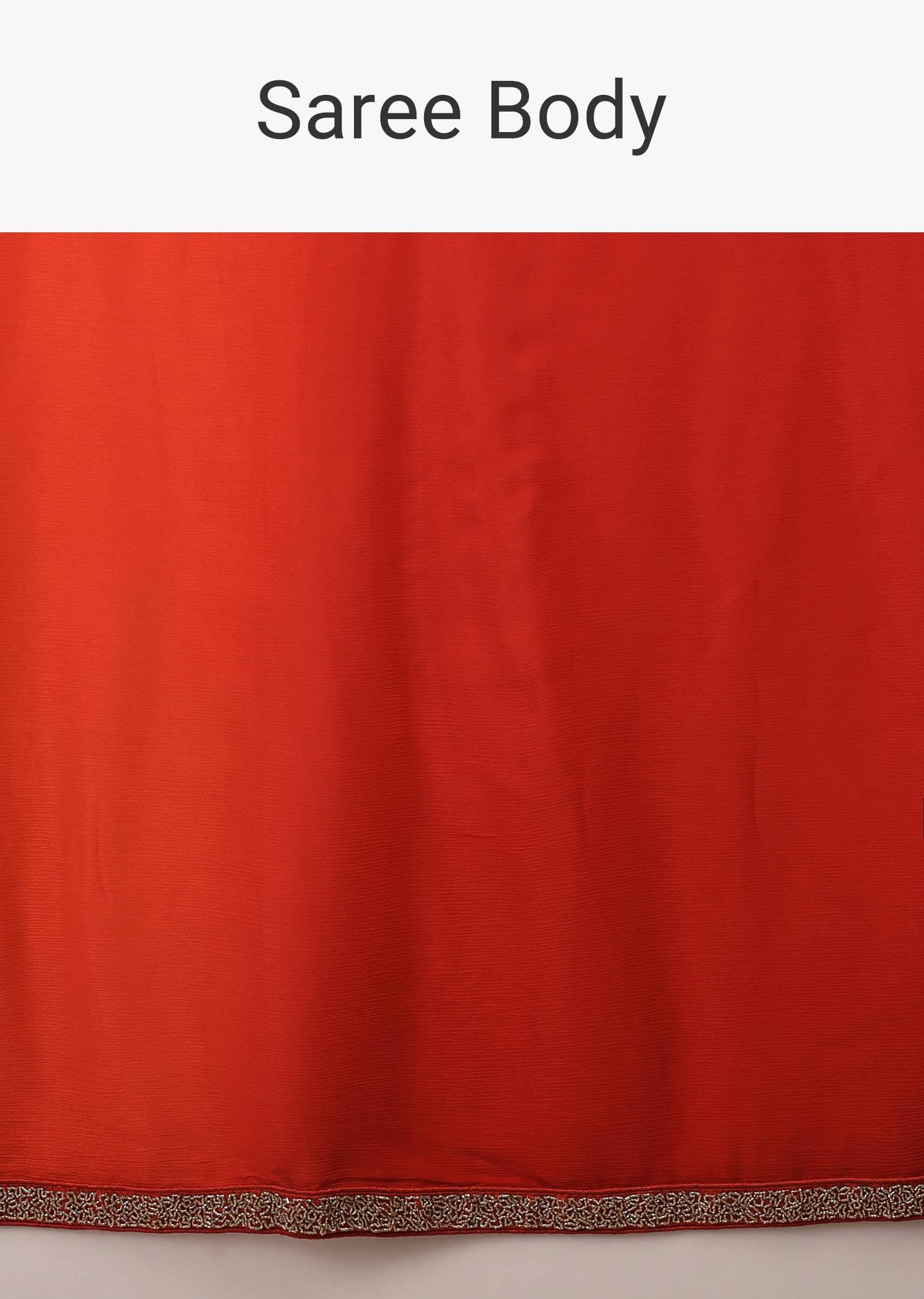 Red And Orange Chiffon Saree With Cut Dana Embroidery Buttis