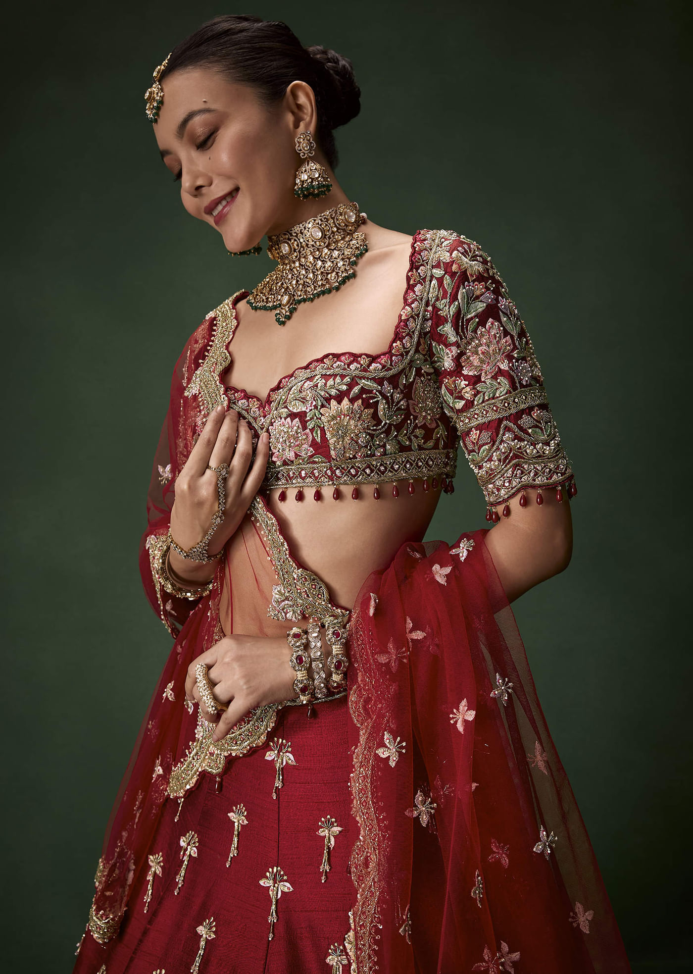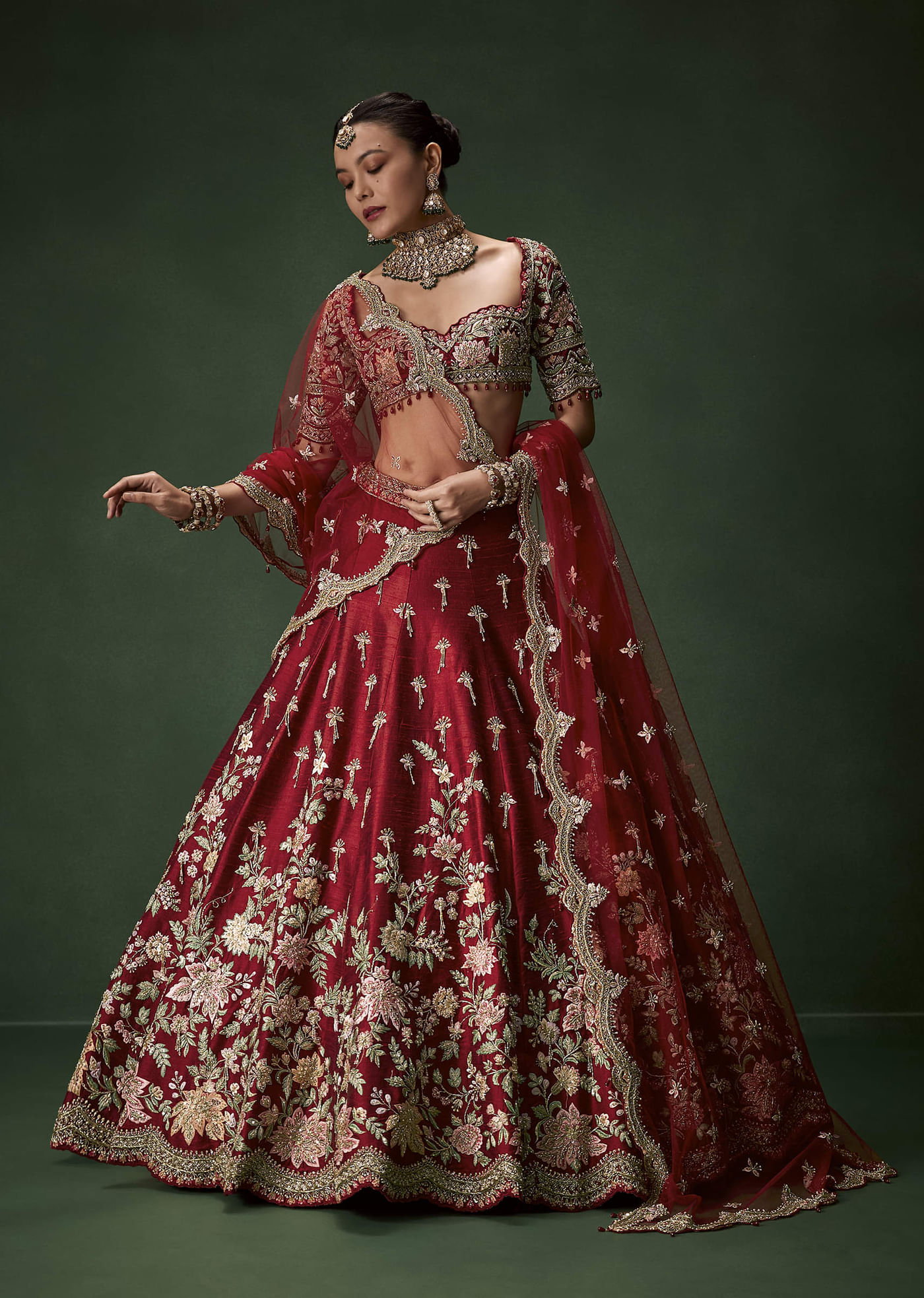 Red Bridal Silk Lehenga Set