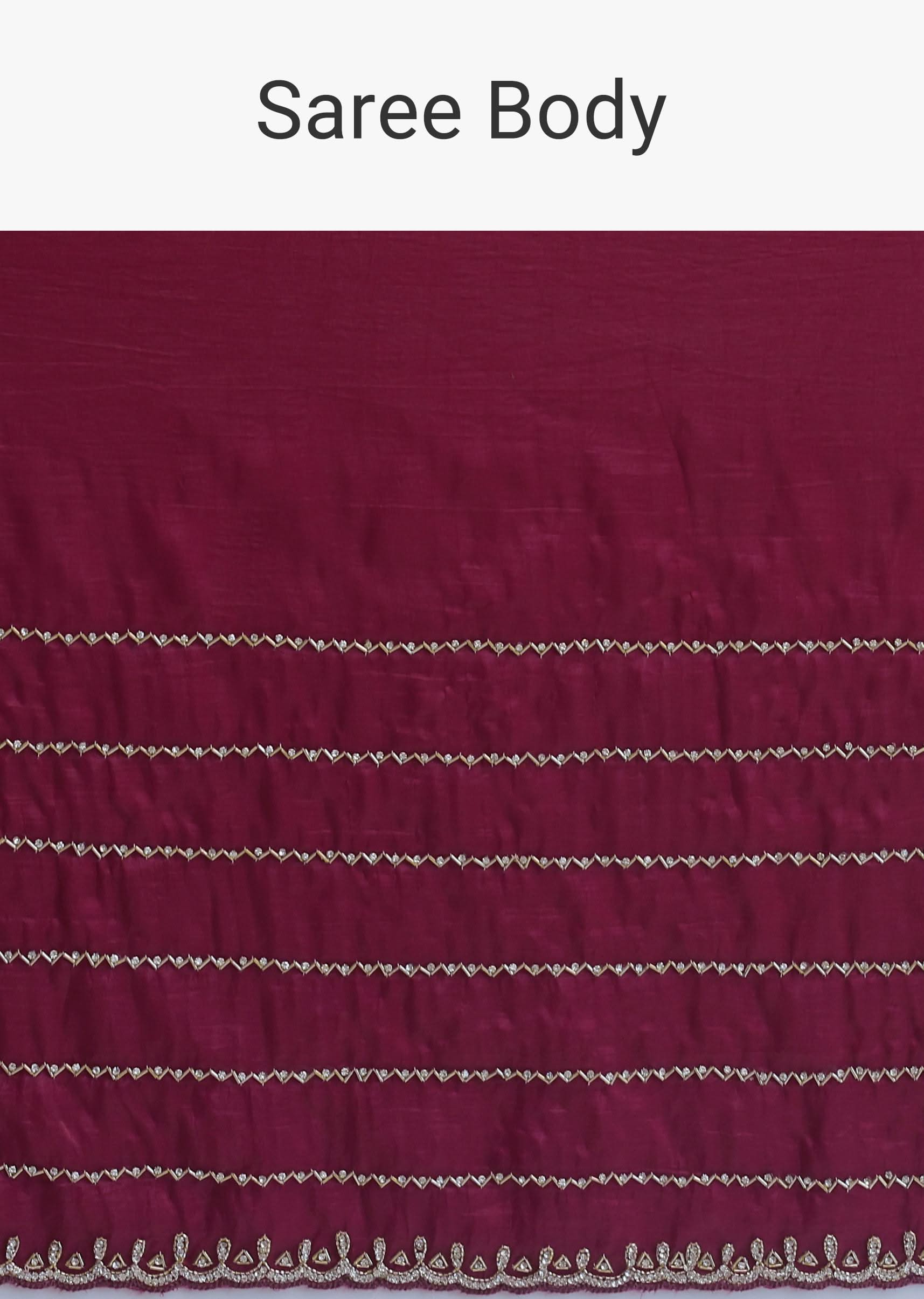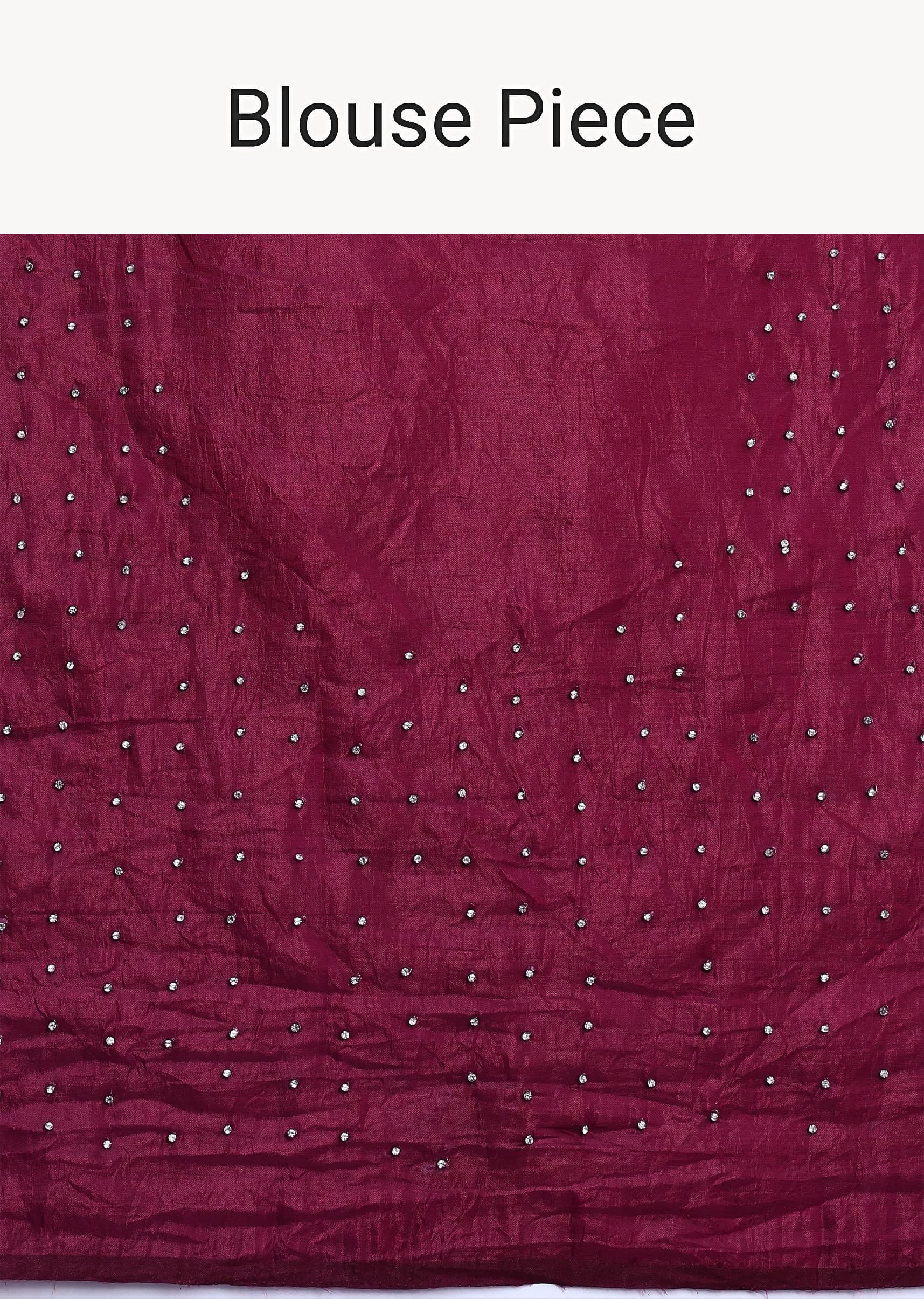 Experience elegance with a maroon red saree. This saree is crafted from chiffon silk and is accompanied by intricately cut dana embroidery. This saree is good for festive occasions and weddings. An unstitched blouse is paired with this saree. Awarded as the Most Trusted Brand, we're delivering styles you love, just as promised.