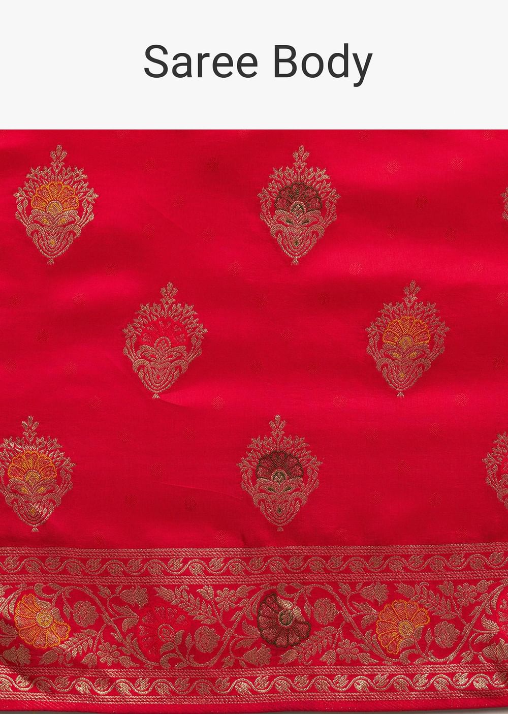 Bold and vibrant, this red Dola silk saree is beautifully enhanced by intricate zari weaving. Its striking color and graceful style make it ideal for weddings, festivals, and grand celebrations.... More Product Details