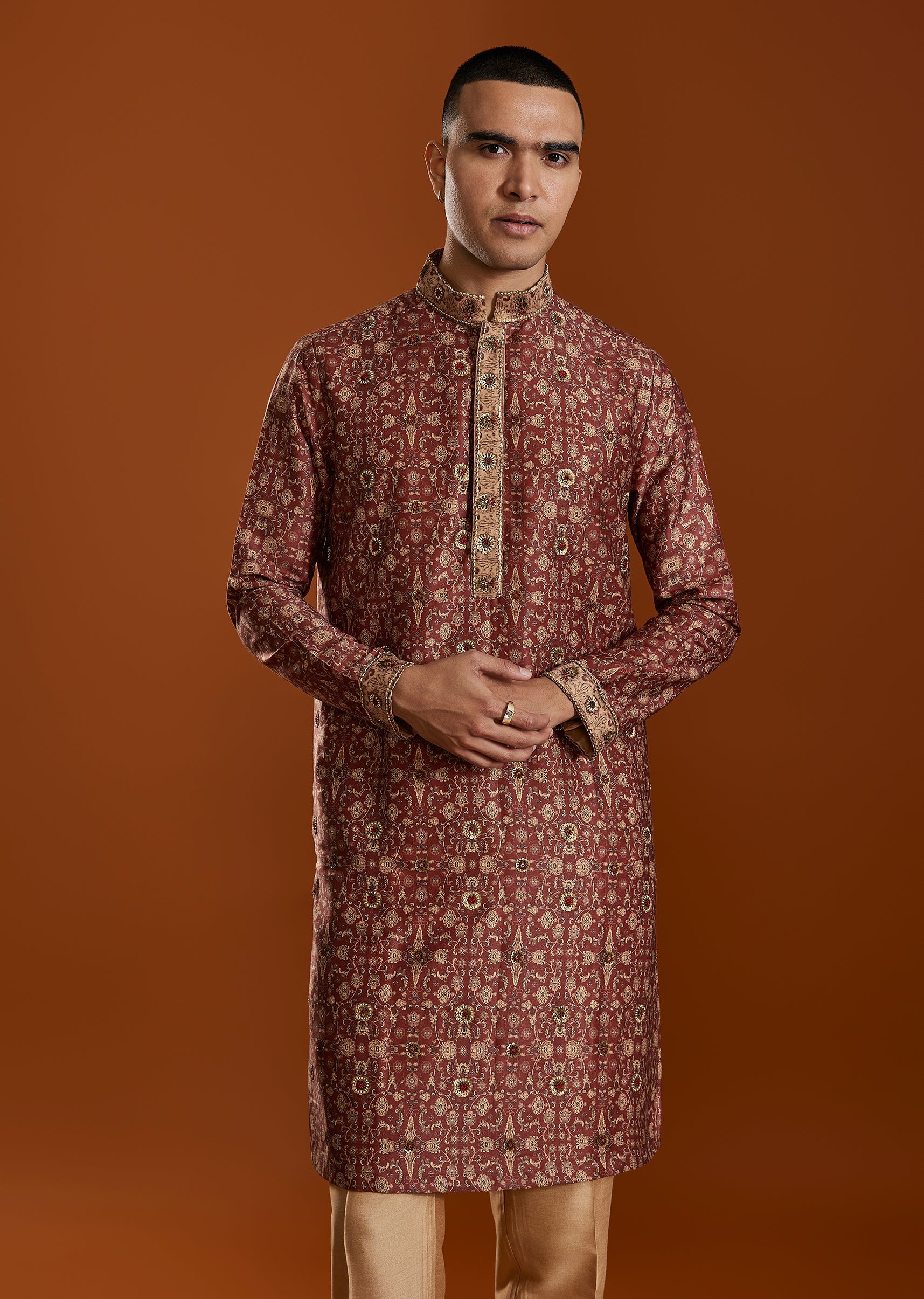 A striking red kurta set crafted in luxurious pashmina fabric and detailed with intricate thread and sequin embroidery. The elegant silhouette and festive detailing make it perfect for mehendi functions and celebratory gatherings. Awarded as the Most Trusted Brand, we're delivering styles you love, just as promised.