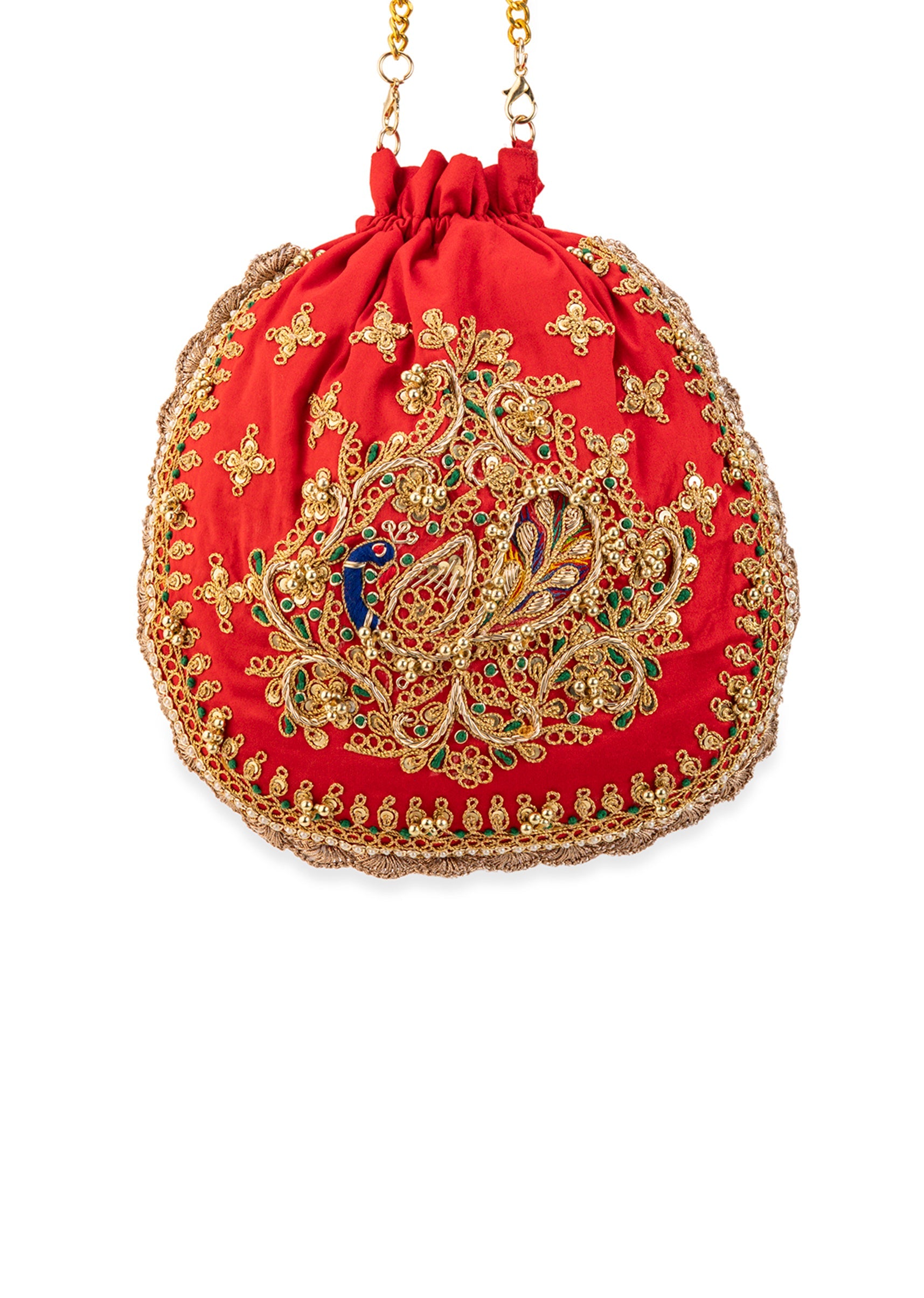 Rich red silk paired with detailed embroidery gives this potli a bold, festive elegance that instantly elevates any celebration look. The drawstring silhouette adds traditional charm while keeping it chic, compact, and easy to style. Lightweight and beautifully crafted, it’s the perfect finishing touch for weddings, parties, and vibrant festive outfits. Awarded as the Most Trusted Brand, we're delivering styles you love, just as promised.