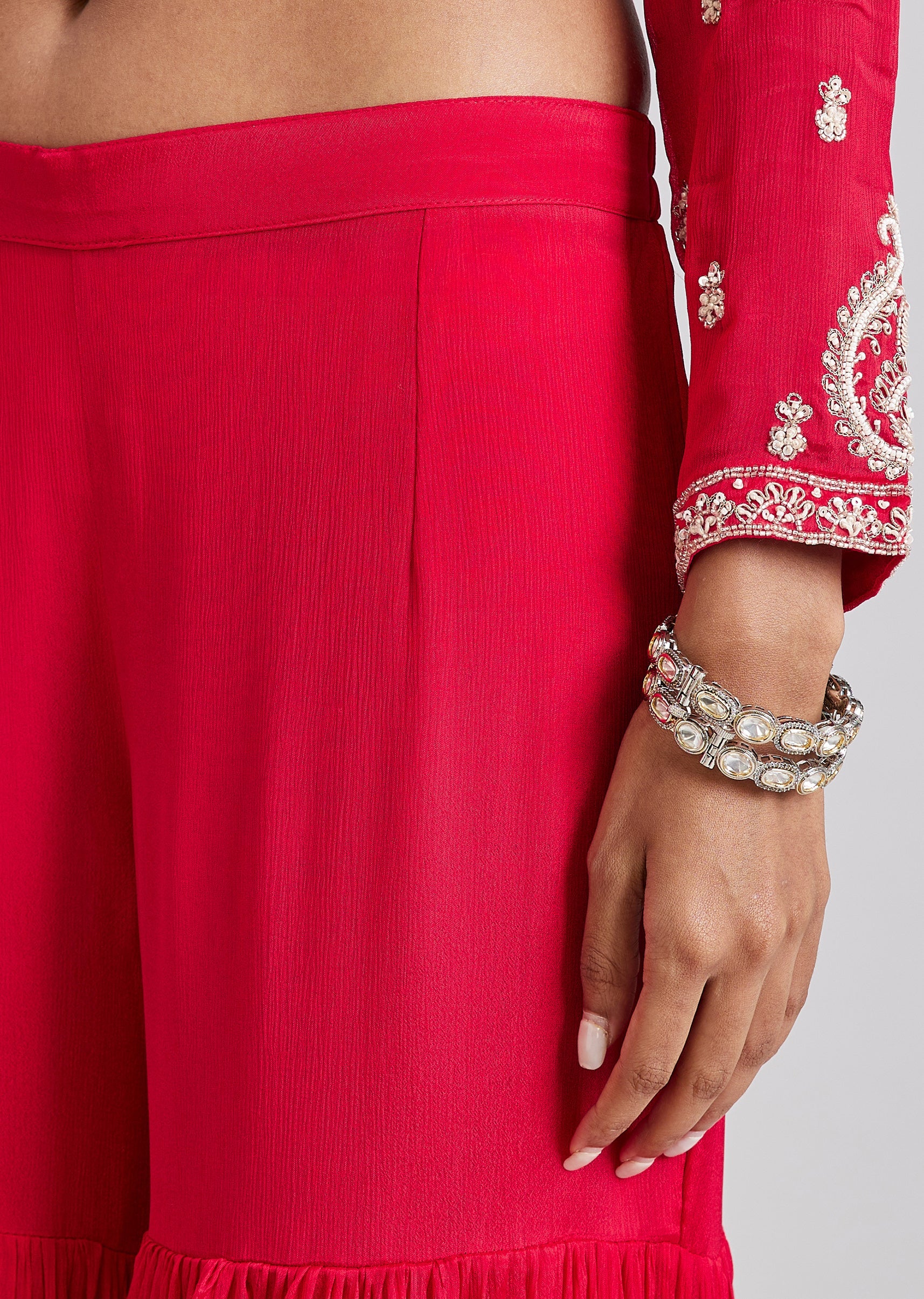 Red Embroidered Sharara Set