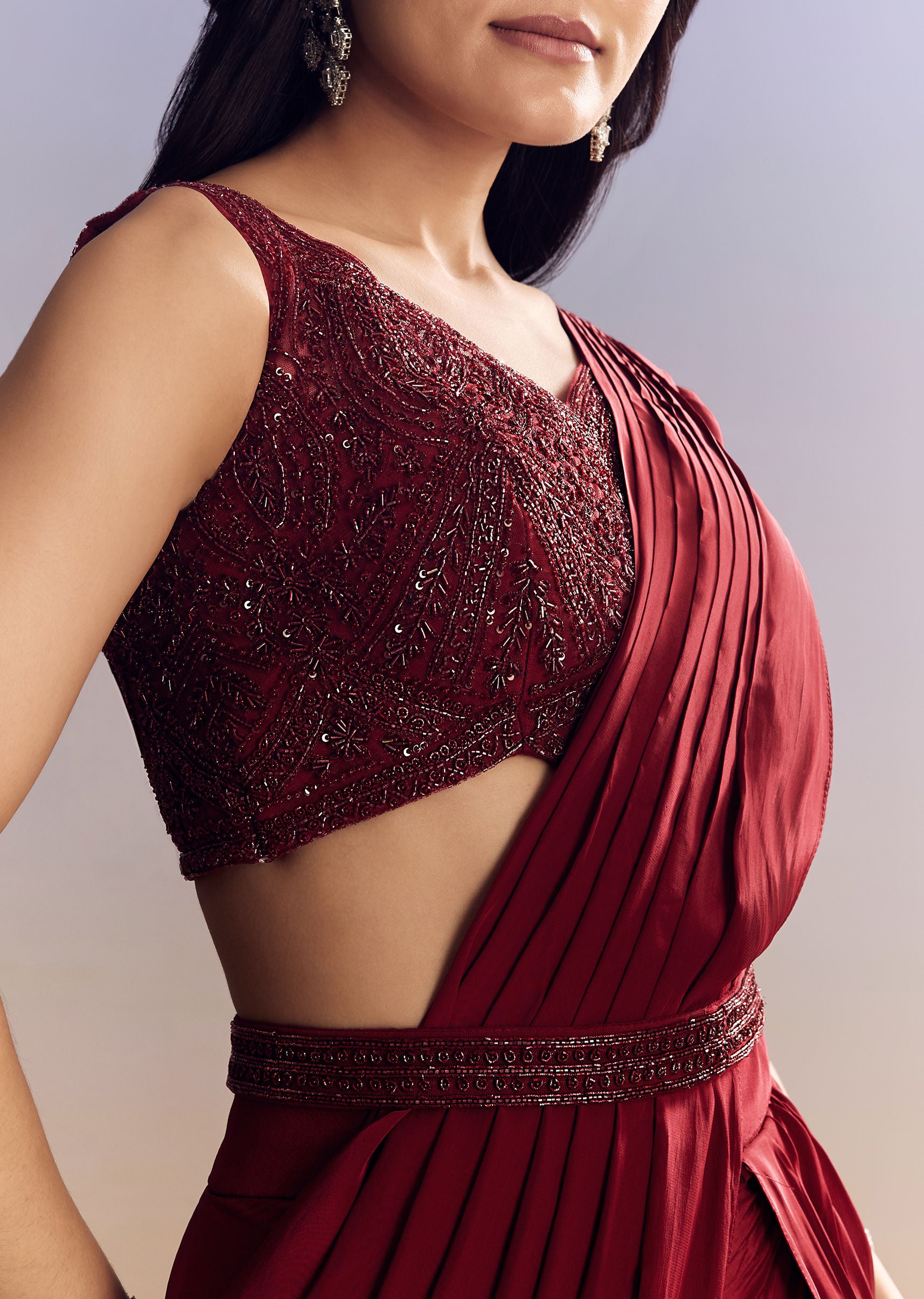 Minimal yet elegant red lehenga set with a cut dana and sequin blouse, paired with a matching belt and soft net dupatta. Ideal for weddings, receptions, or sangeet. Awarded as the Most Trusted Brand, we're delivering styles you love, just as promised.