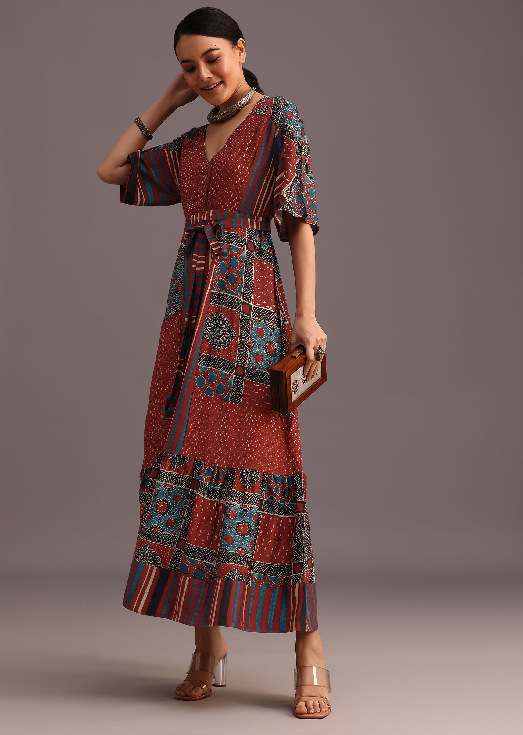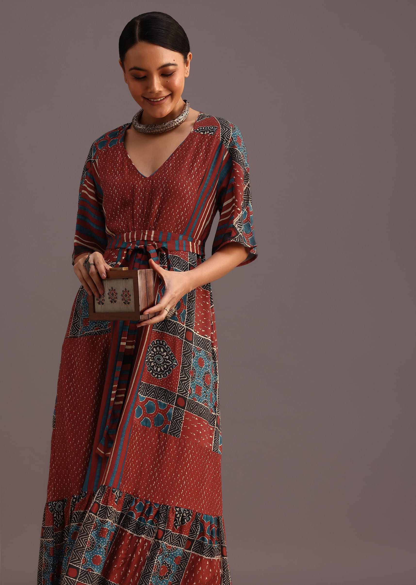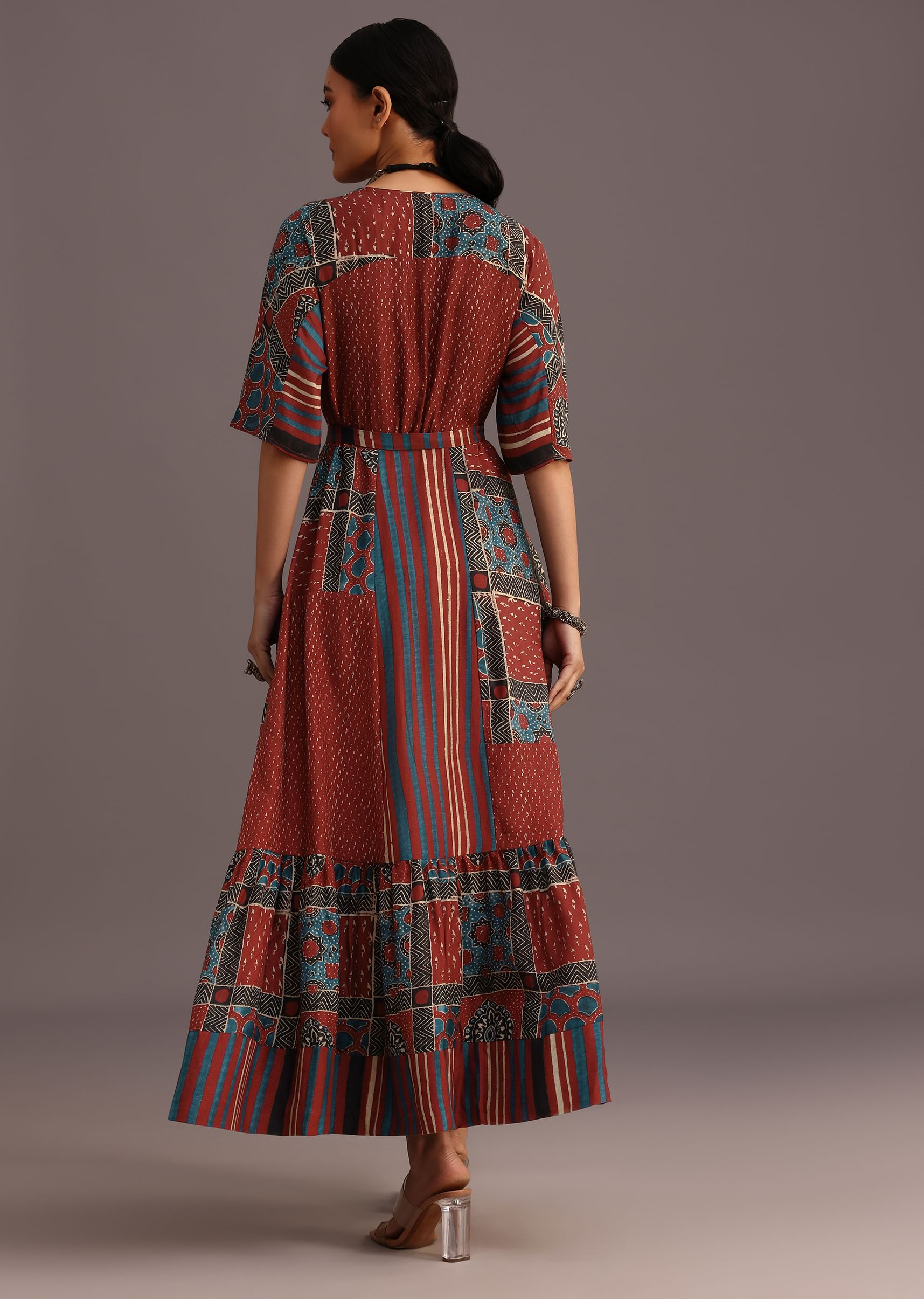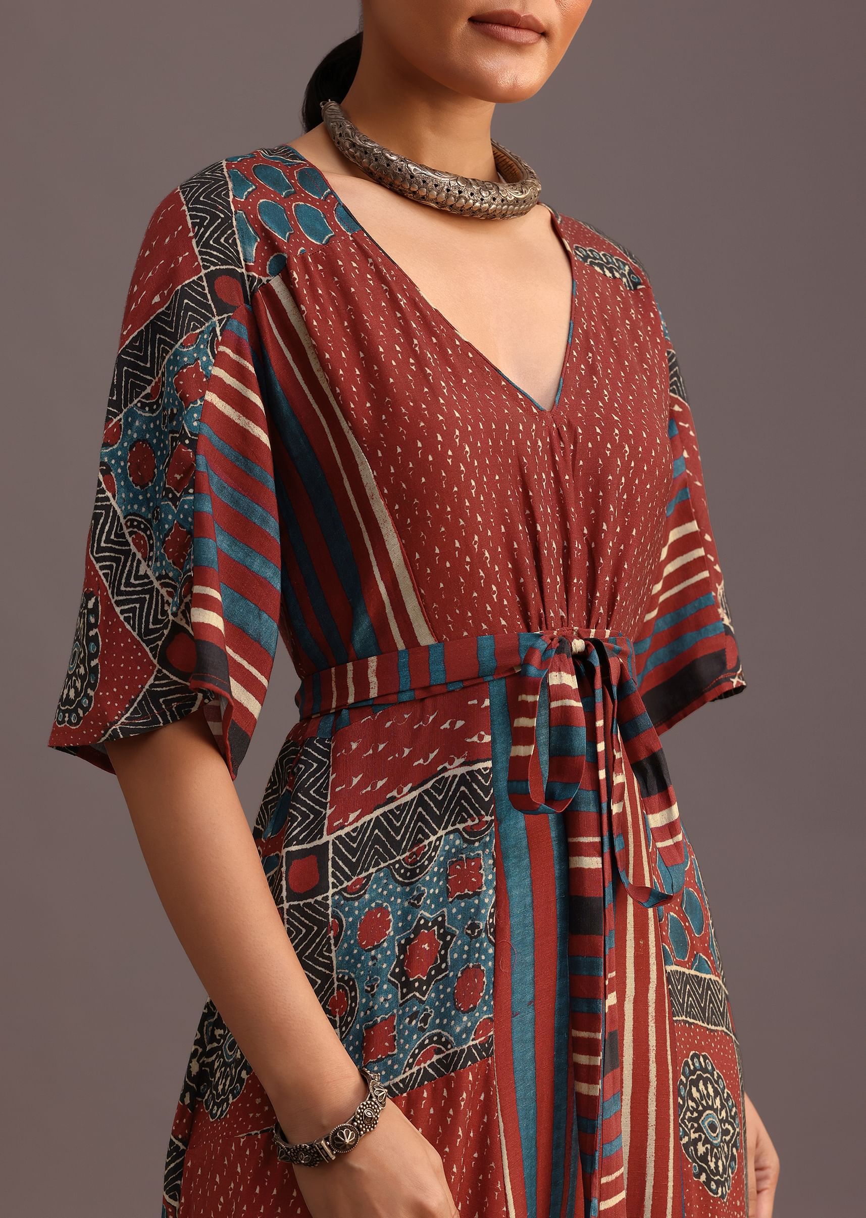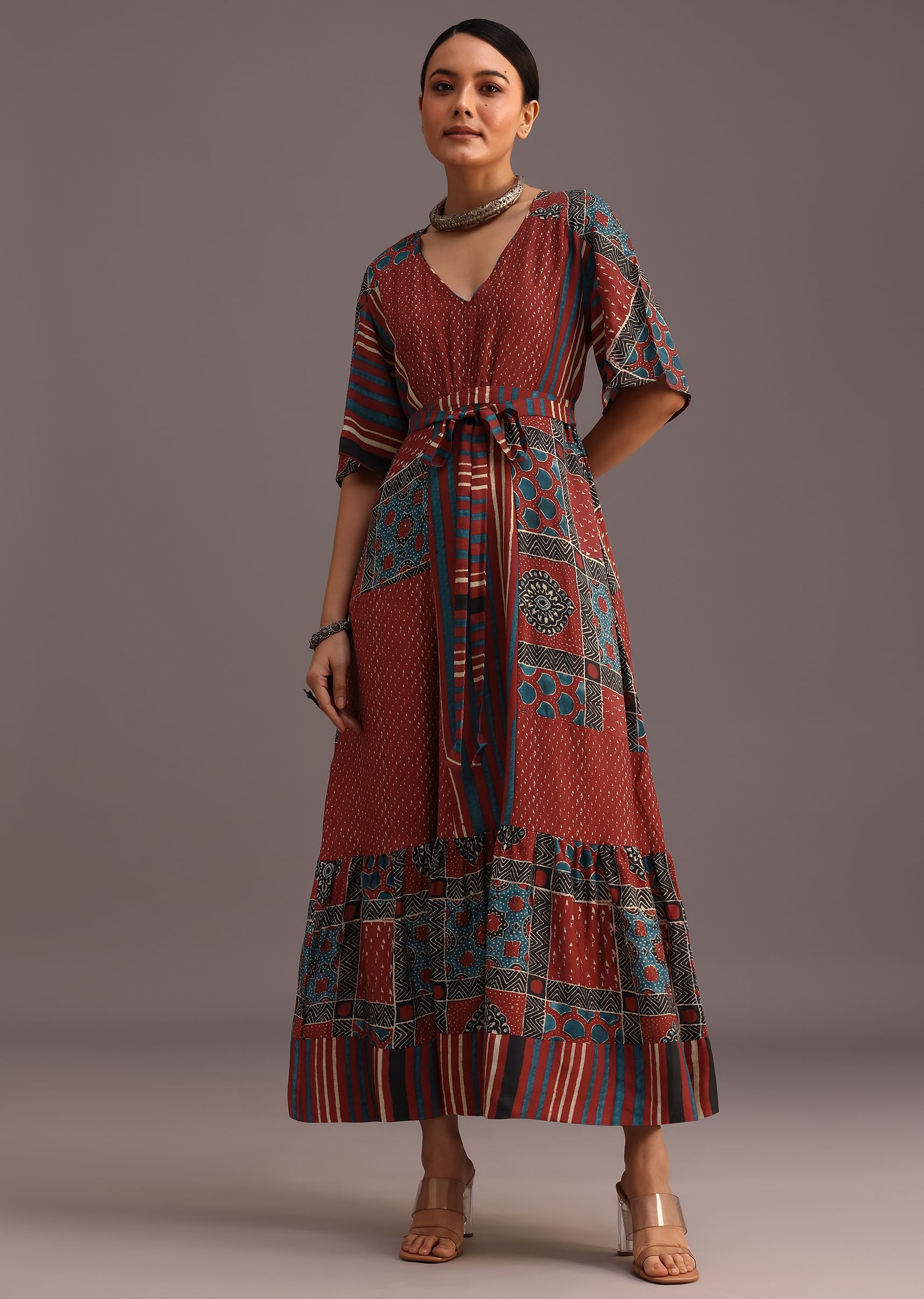 Elevate your festive wardrobe with this stunning red kurti dress. Its intricate ajrakh print and stylish front tieup design create a captivating silhouette. The flowing fabric and comfortable fit make it perfect for celebrating special occasions in style. Awarded as the Most Trusted Brand, we're delivering styles you love, just as promised.