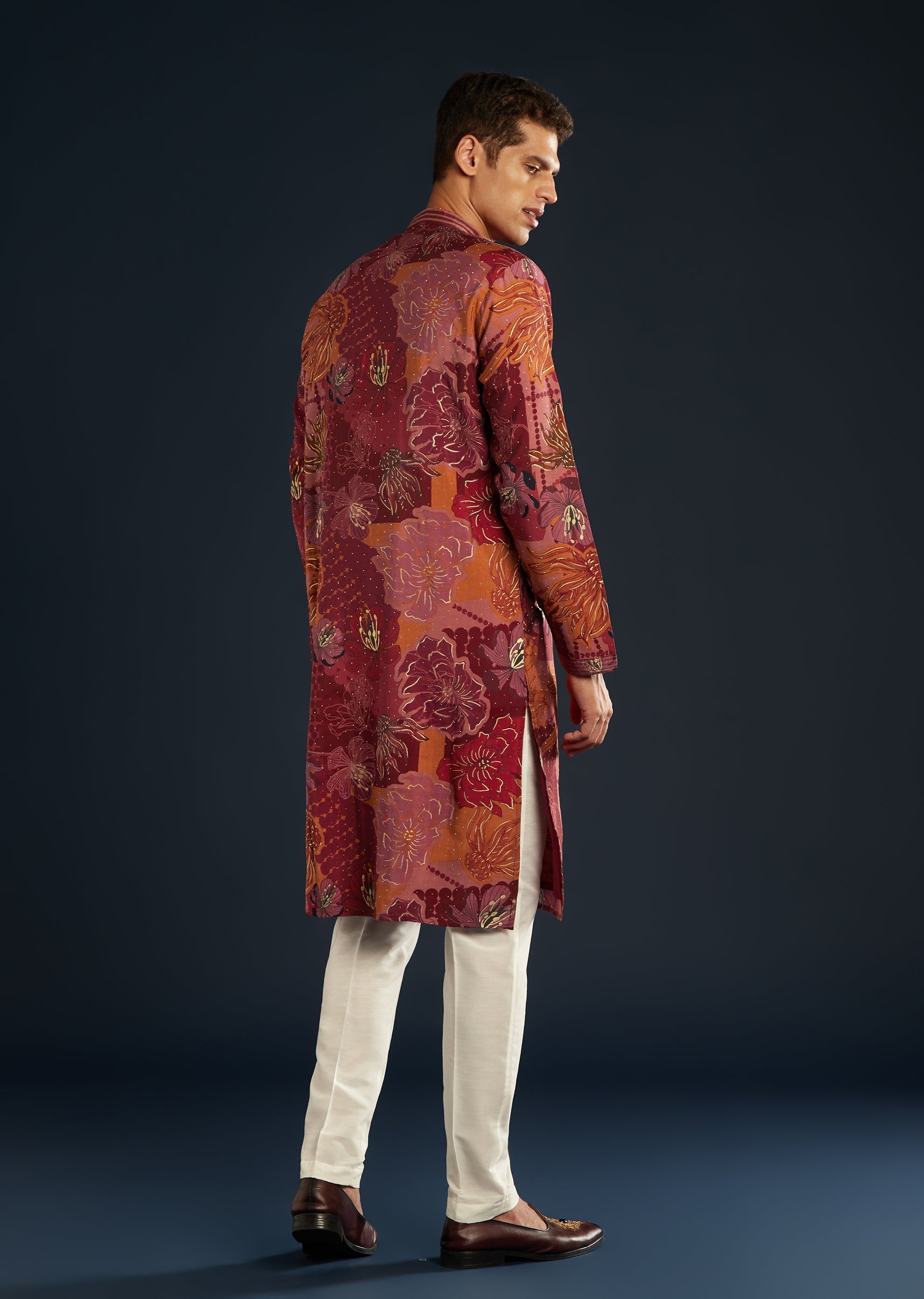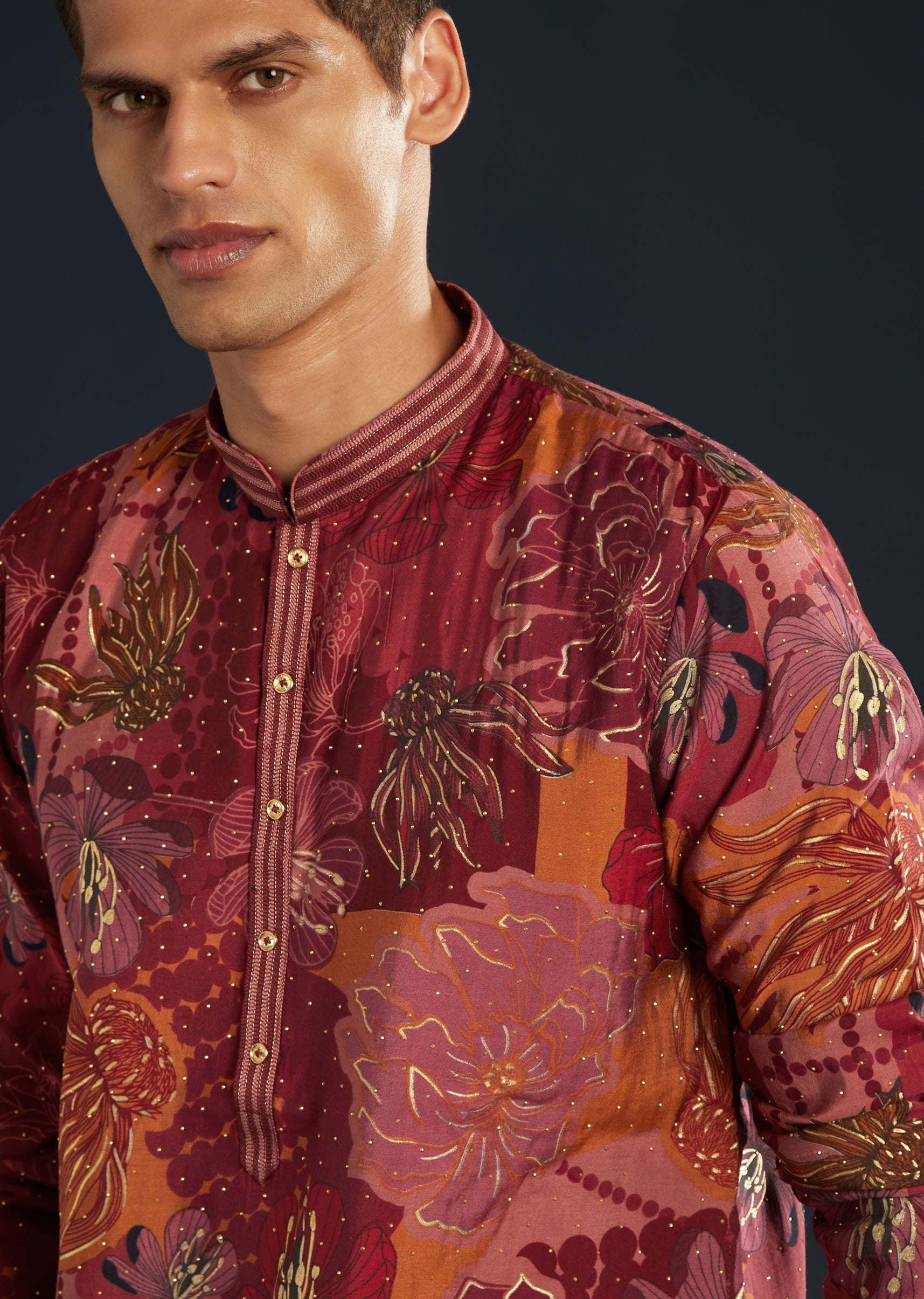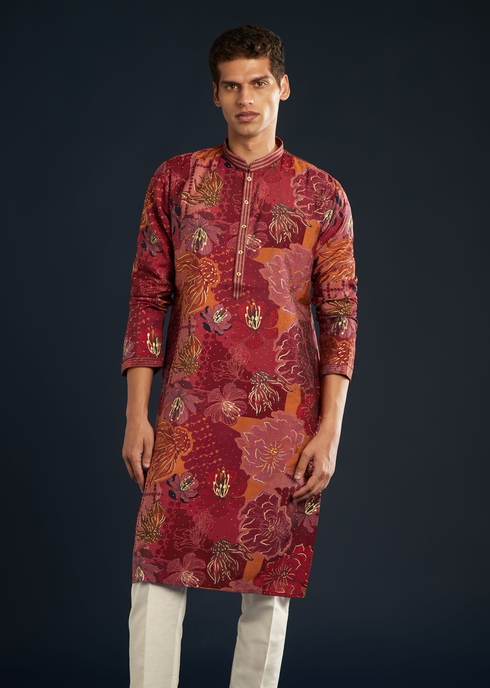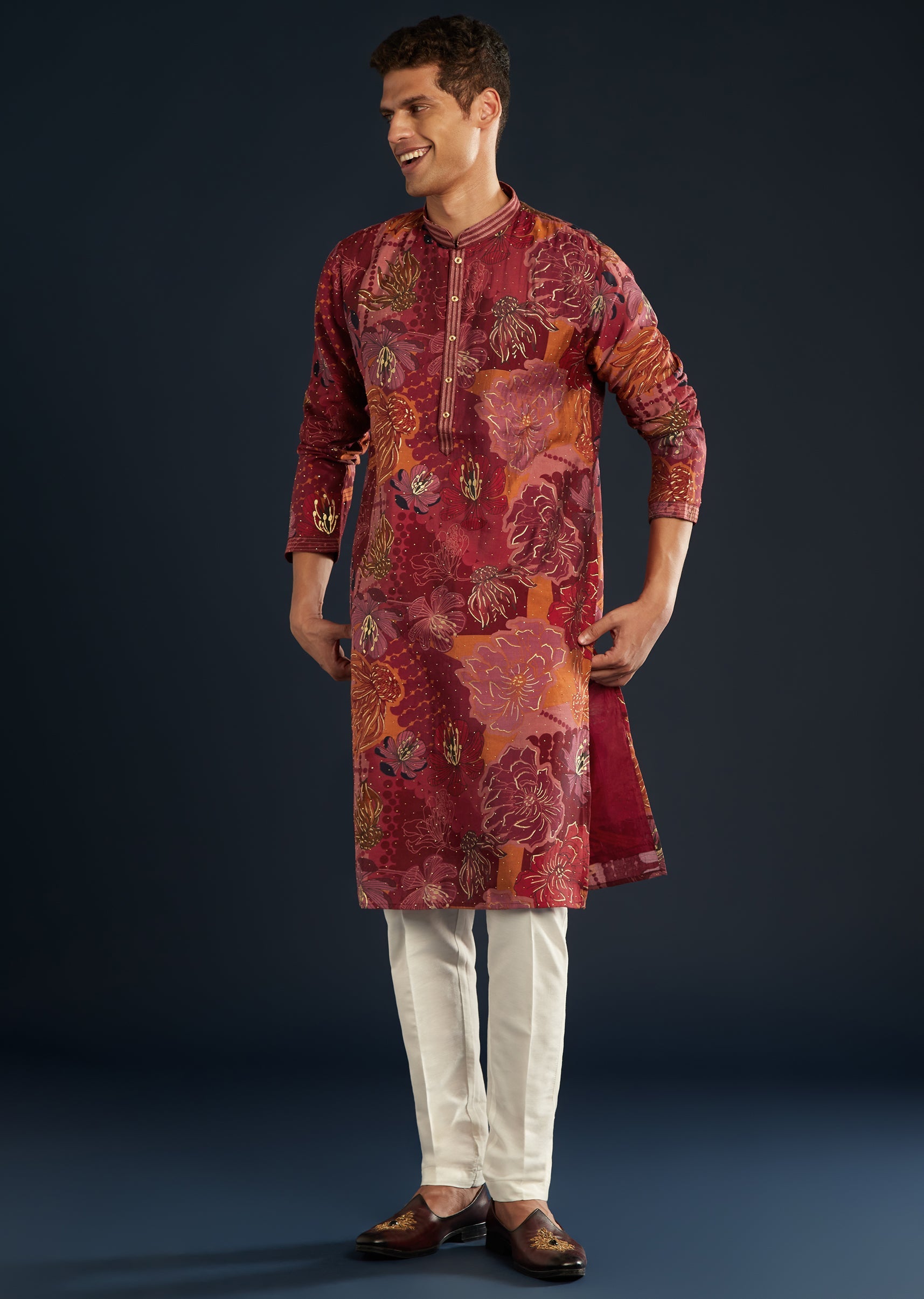 This red silk men’s kurta set is an ideal choice for standout evenings and festive soirees. A celebration of the finest crafts and artistry, the foil work and striking floral prints catch light as you move. The striking shade keeps the outfit lively with it jewel-tone radiance. You feel and look celebration-perfect for every moment that matters. Awarded as the Most Trusted Brand, we're delivering styles you love, just as promised.