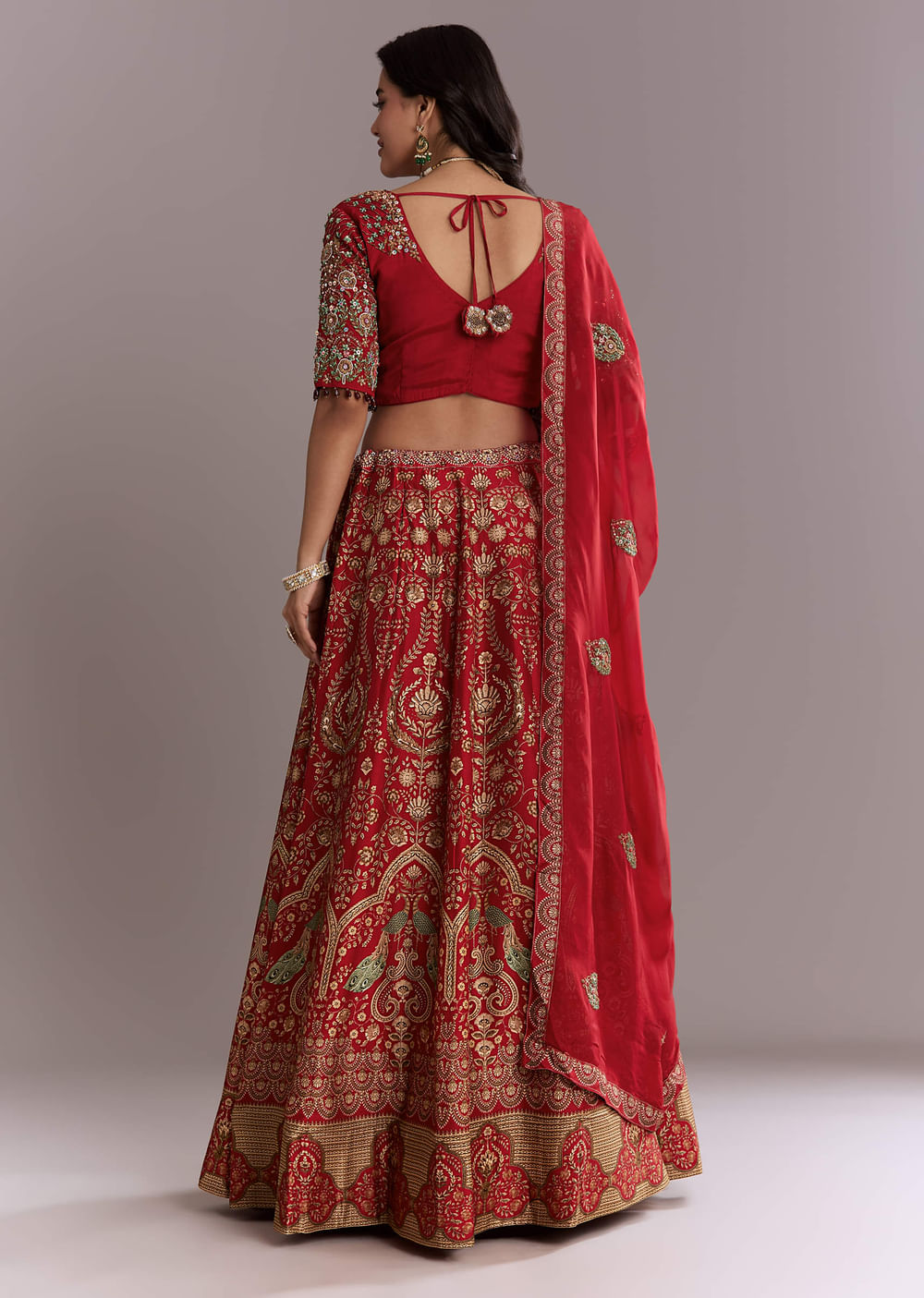 Red Silk Printed Bridesmaid Lehenga With Intricate Hand Embroidery