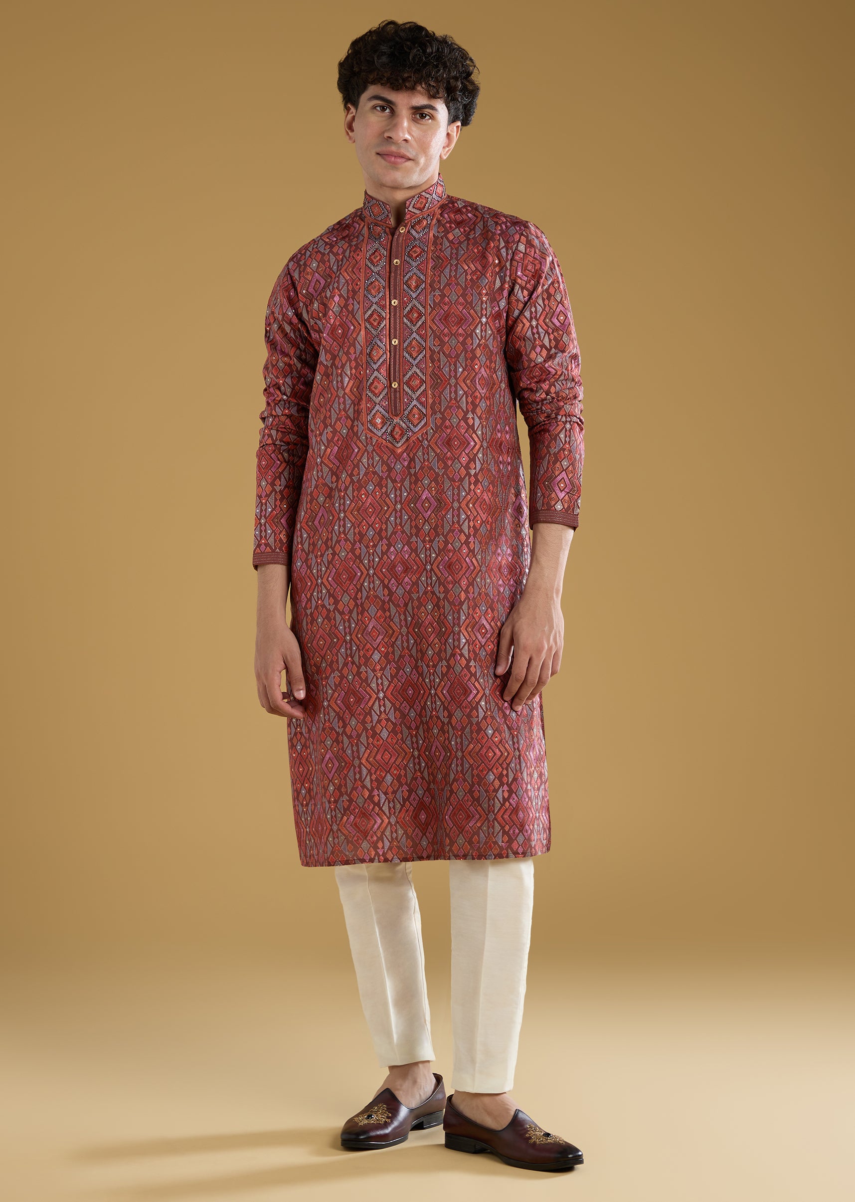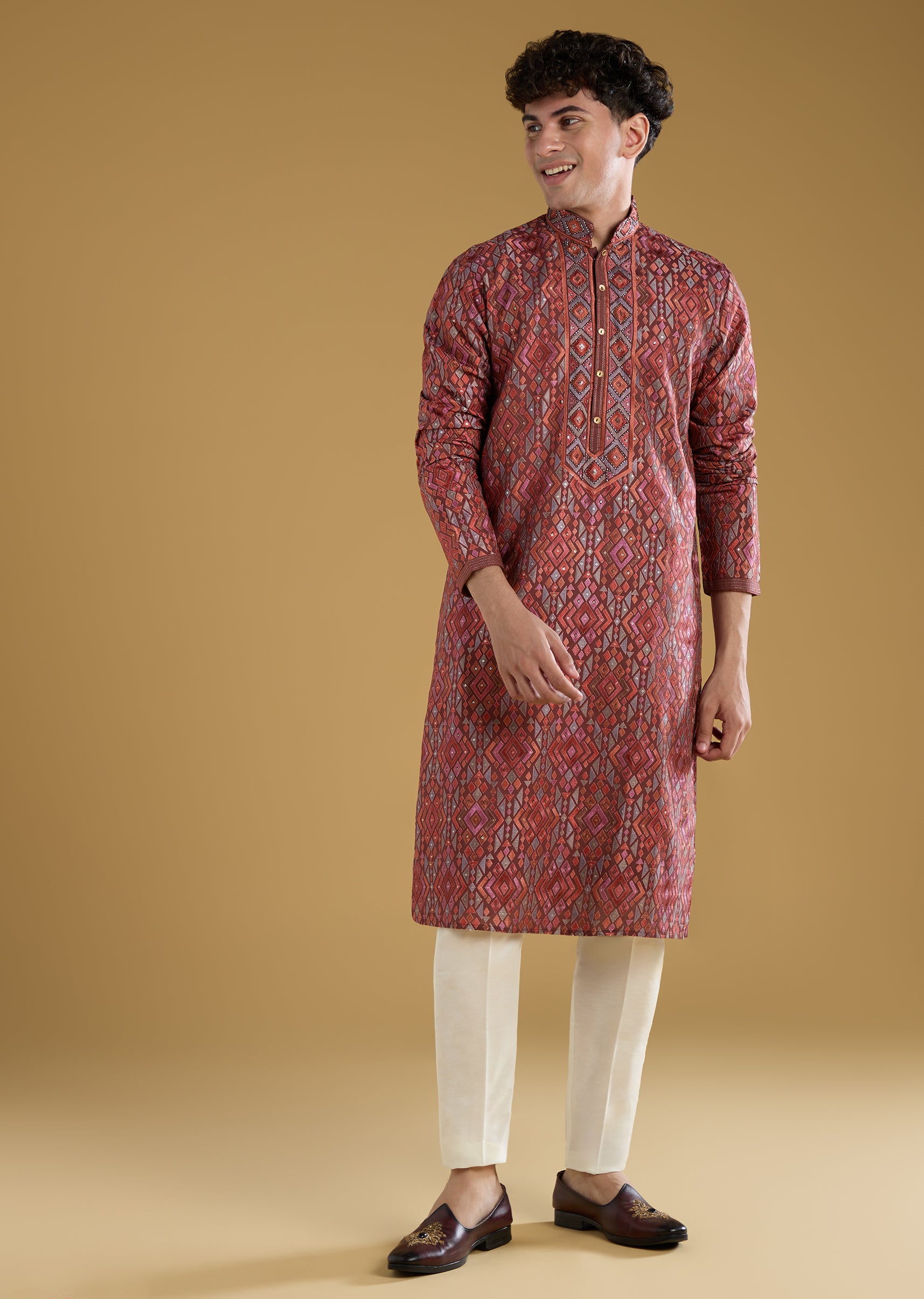 Fit Tips:Ensure the kurta fits comfortably at the shoulders and chest and check that the pants rest securely at the waist for a clean well tailored appearance.