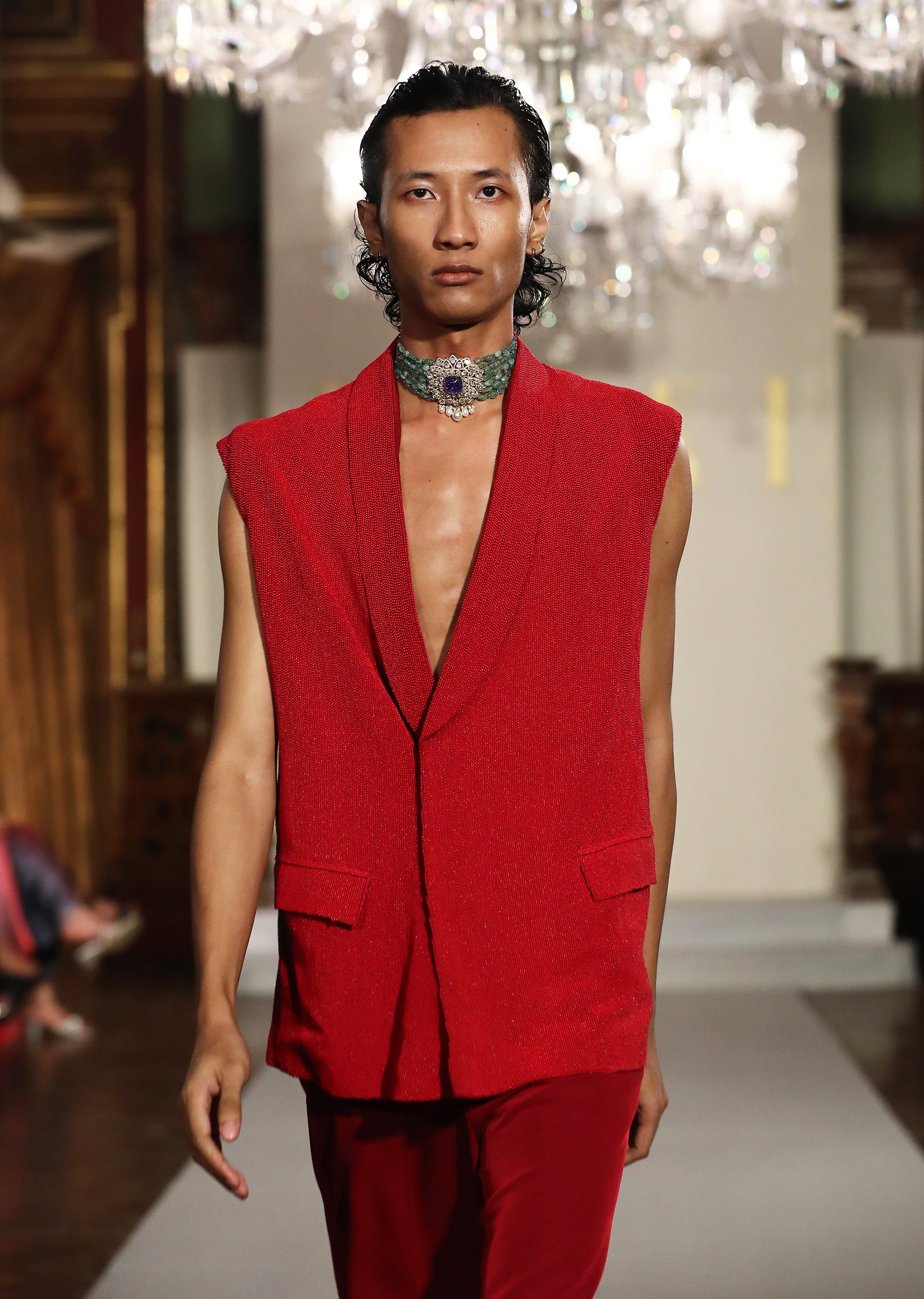 Fit Tips:The gilet-blazer should sit true at the shoulders while the trousers skim clean with room to move.