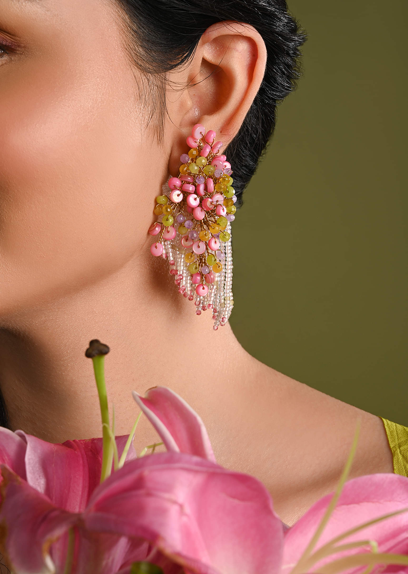 Rose Pink Green Fashion Long Earrings For Women