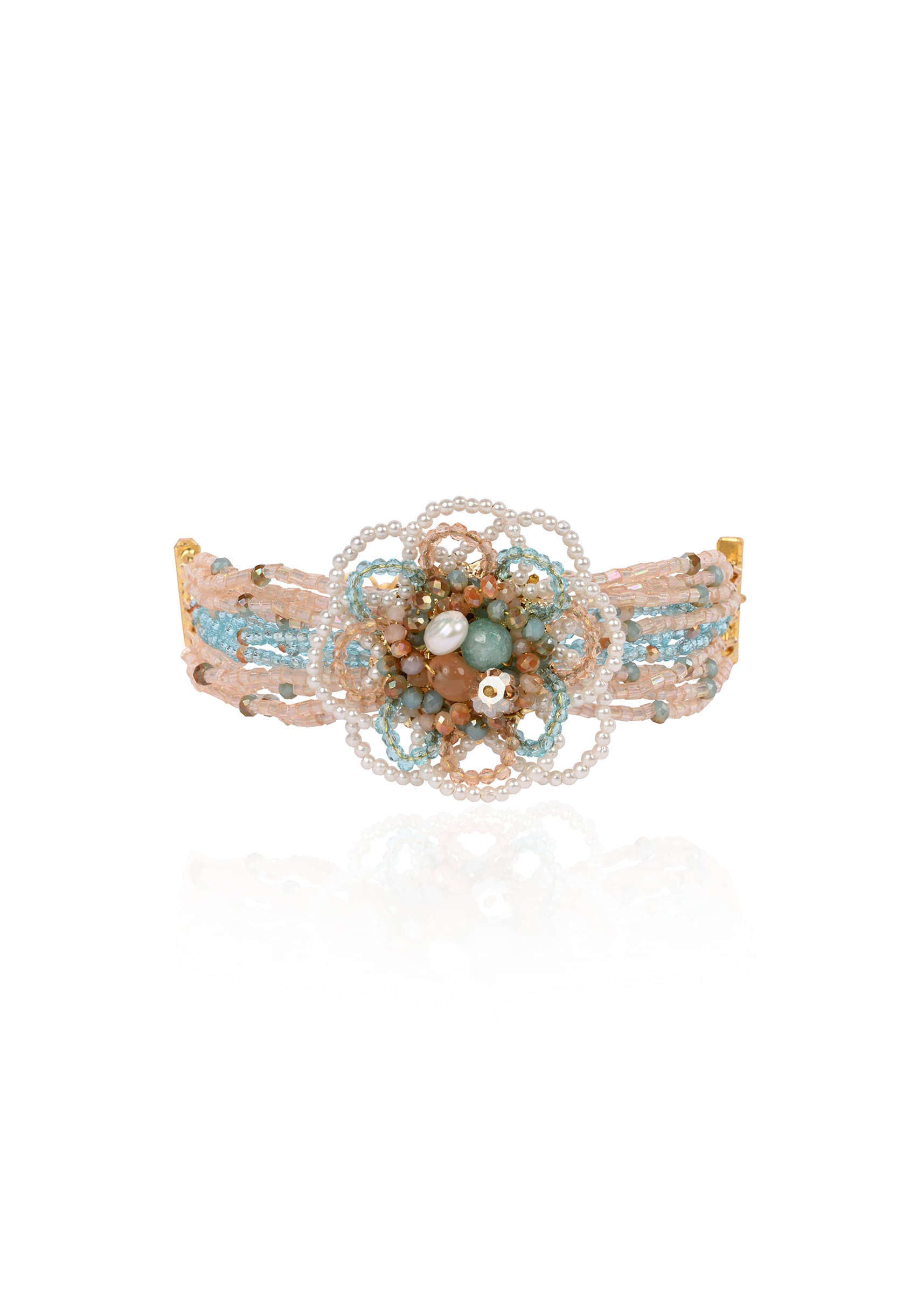 round floral pearl colourful crystal and stone bracelet